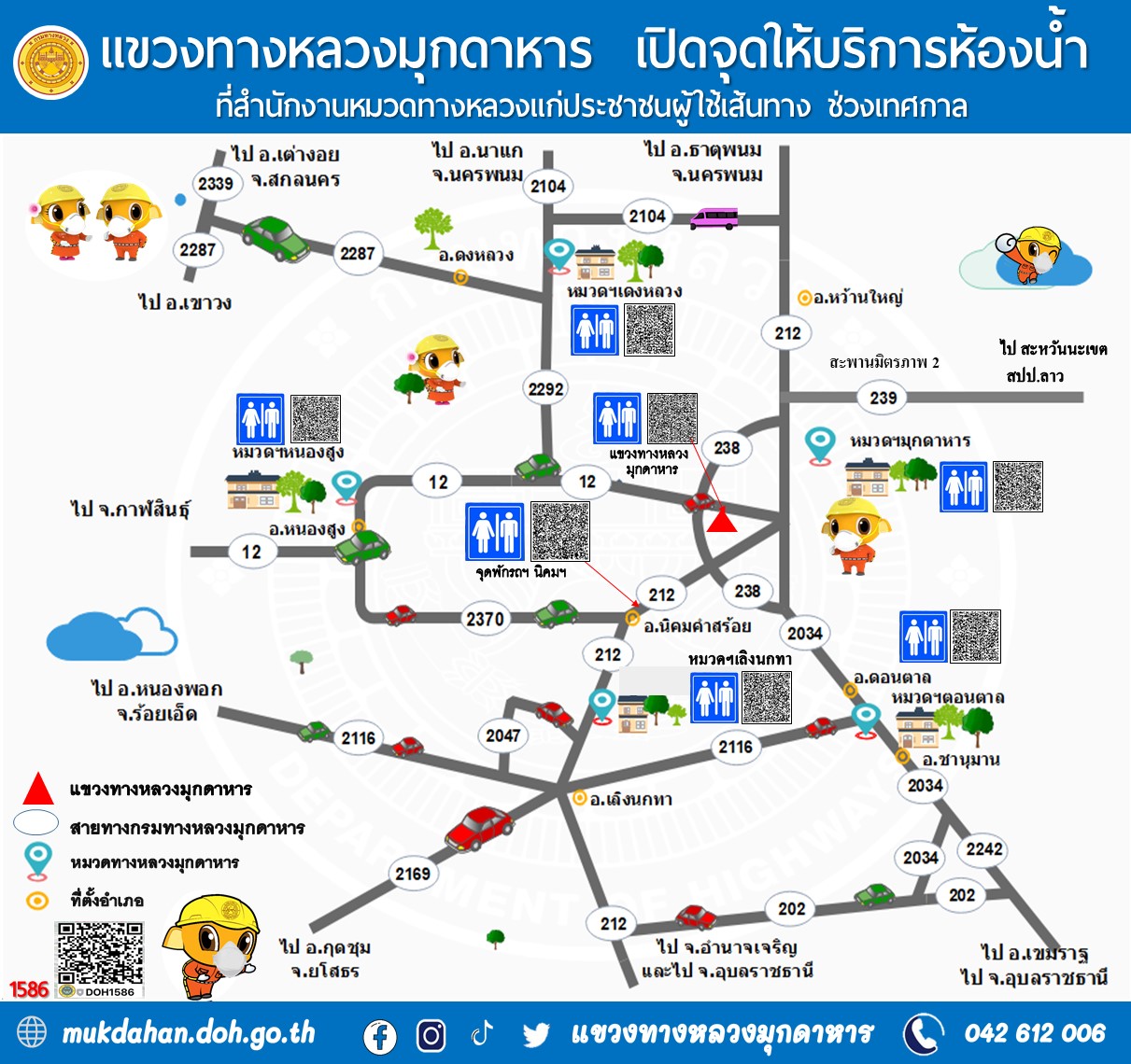 แผนที่เส้นทางจุดบริการห้องน้ำ ในความควบคุมของแขวงฯมุกดาหาร และจุดจอดรถบรรทุก นิคมฯ ช่วงเทศกาลปีใหม่ 2565