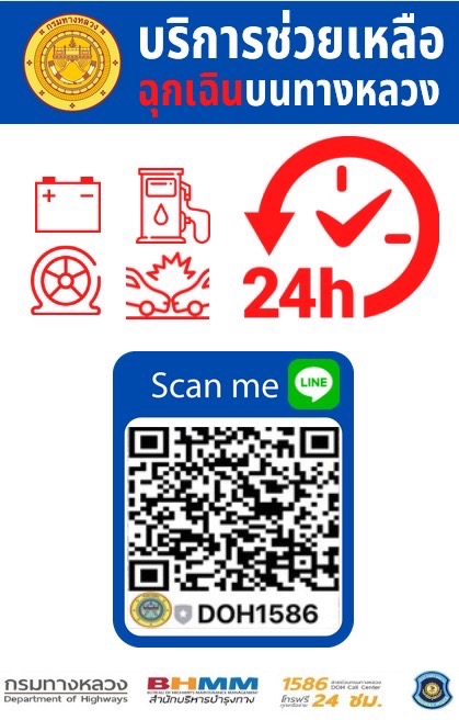 เดินทางอุ่นใจ ปลอดภัยไปกับกรมทางหลวง กรมทางหลวงพร้อมบริการช่วยเหลือฉุกเฉินบนทางหลวง 24 ชั่วโมง มา Scan กันเลยค่ะ