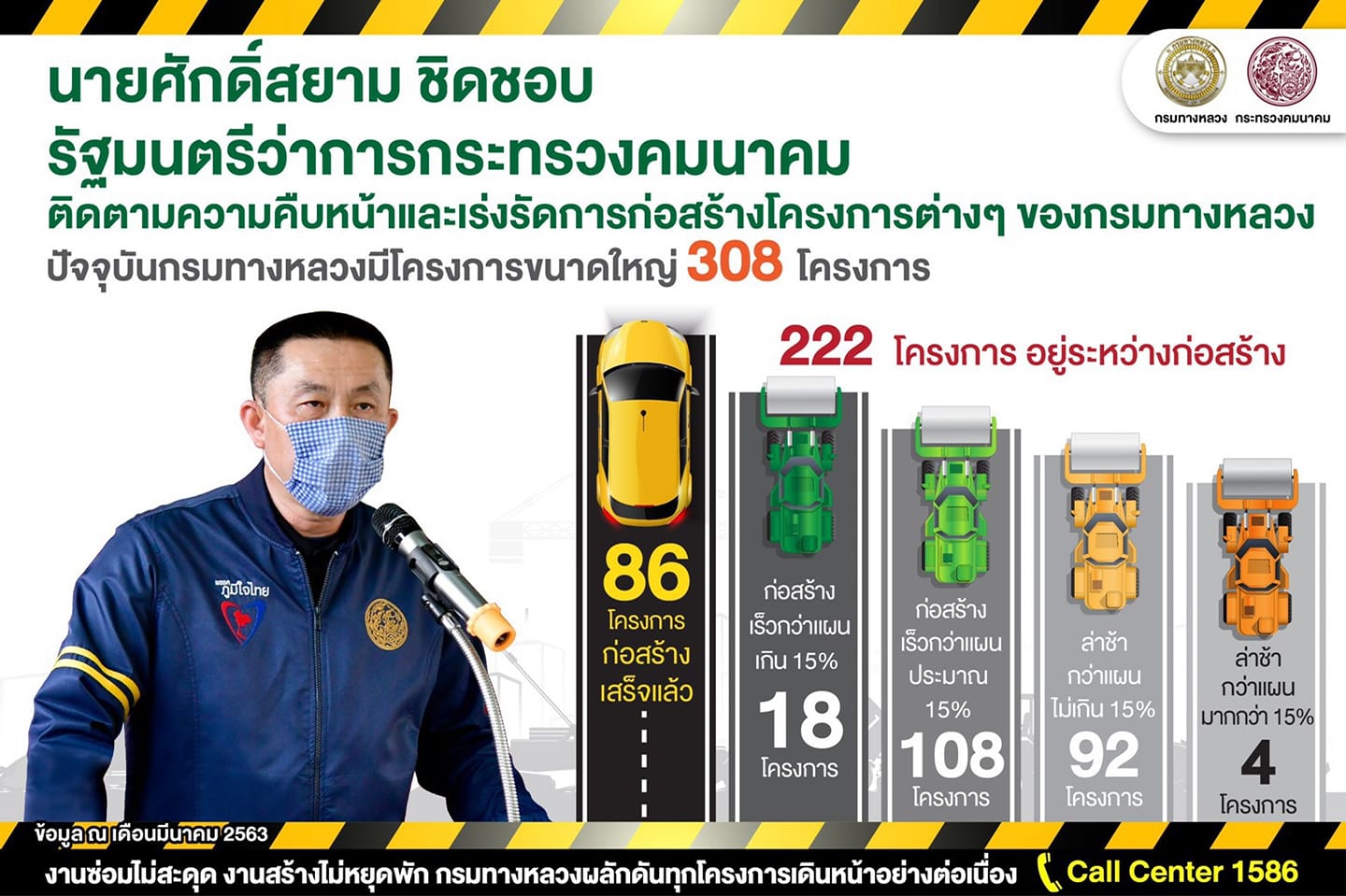 นายศักดิ์สยาม ชิดชอบ รัฐมนตรีว่าการกระทรวงคมนาคม ติดตามความคืบหน้า โครงการขนาดใหญ่ 308 โครงการ