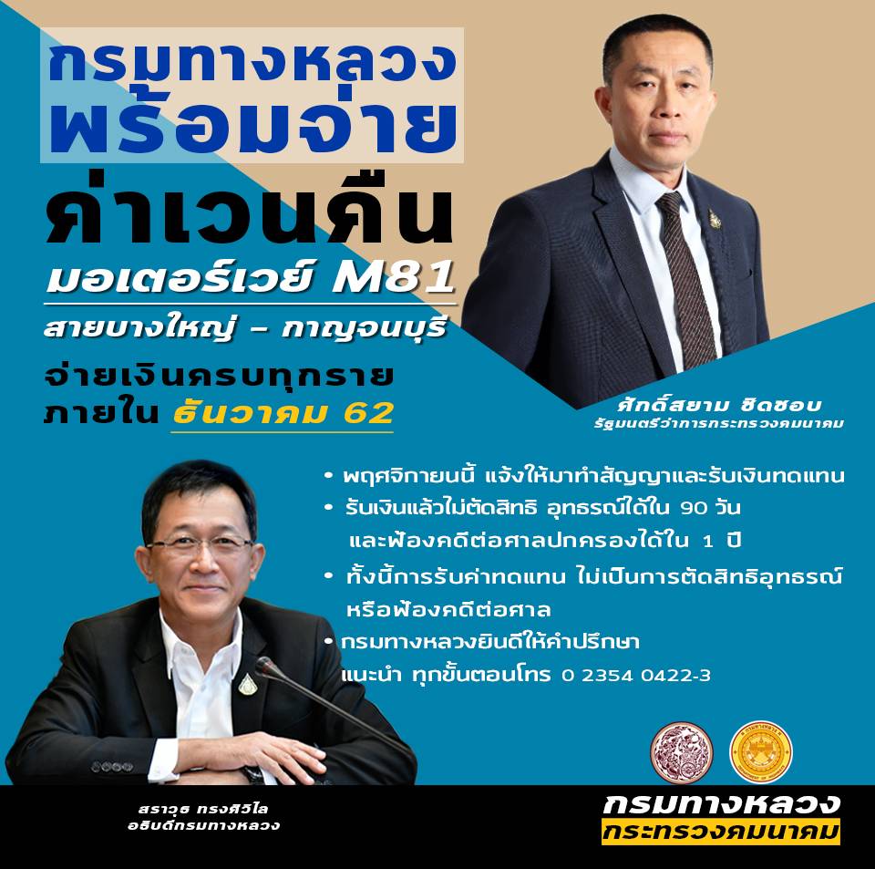 กรมทางหลวงพร้อมจ่ายค่าเวนคืน มอเตอร์เวย์ M81