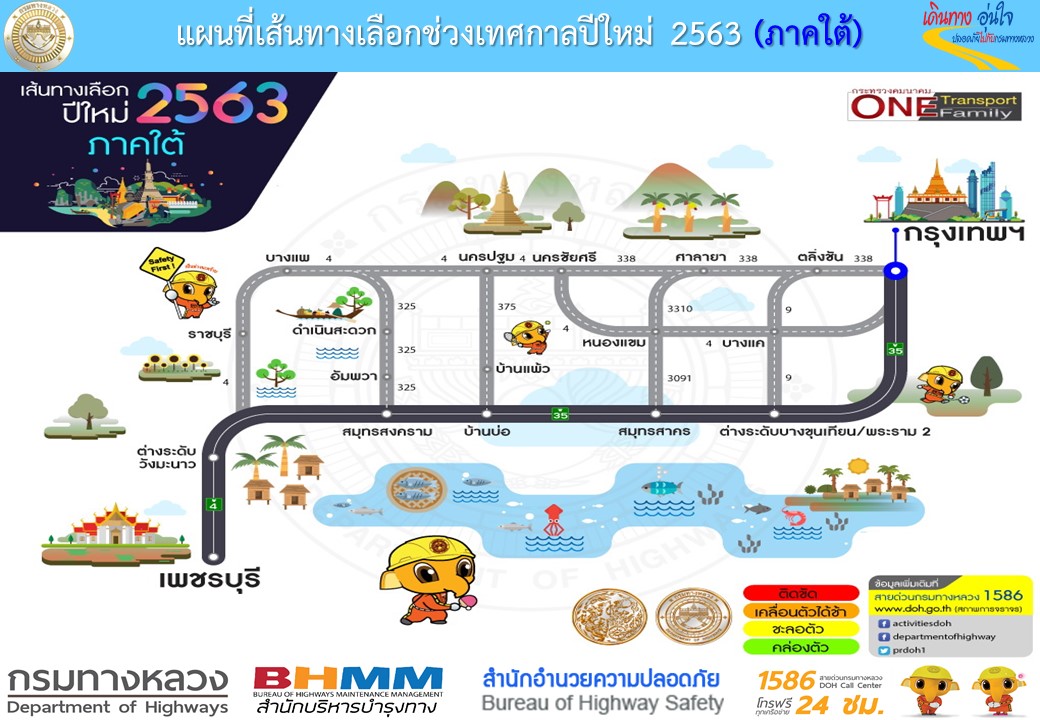 แผนที่เส้นทางรวมทุกภาคช่วงเทศกาลปีใหม่ 2563