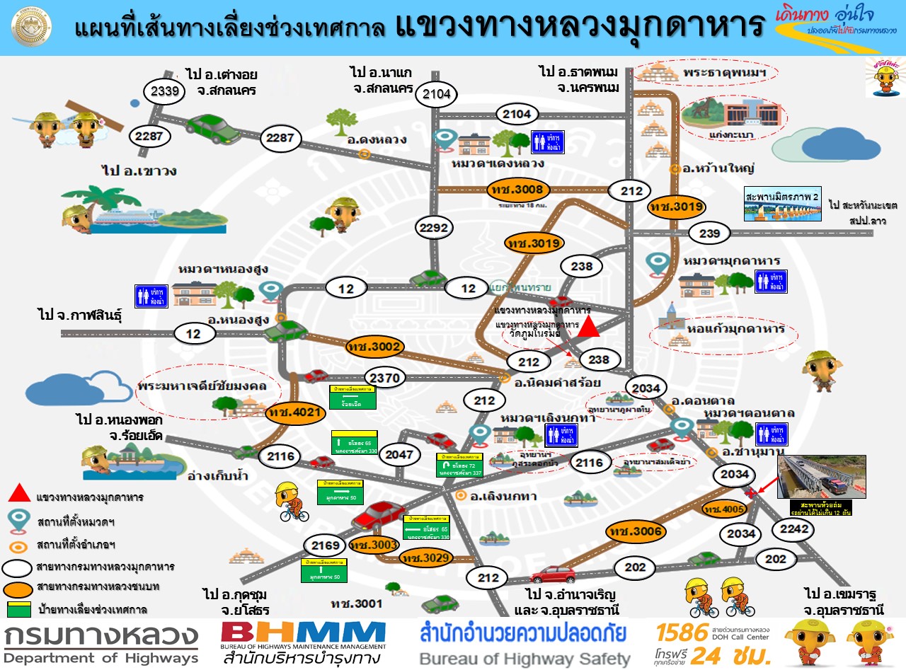 แผนที่เส้นทางในความควบคุมของแขวงฯมุกดาหาร ช่วงเทศกาลปีใหม่ 2563