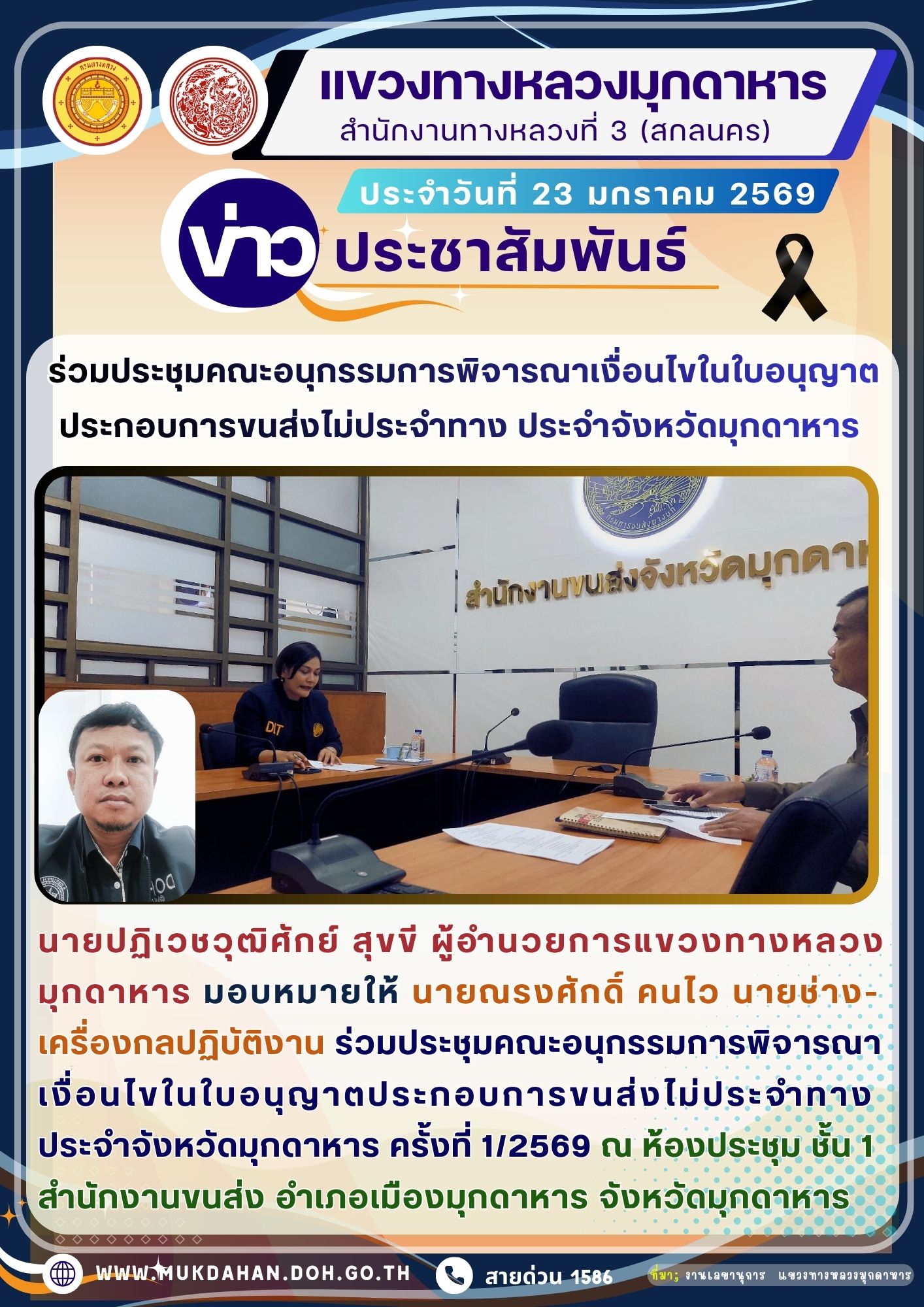 ประชุมคณะอนุกรรมการพิจารณาเงื่อนไขในใบอนุญาตประกอบการขนส่งไม่ประจำทางประจำจังหวัดมุกดาหาร ครั้งที่ 1/2569