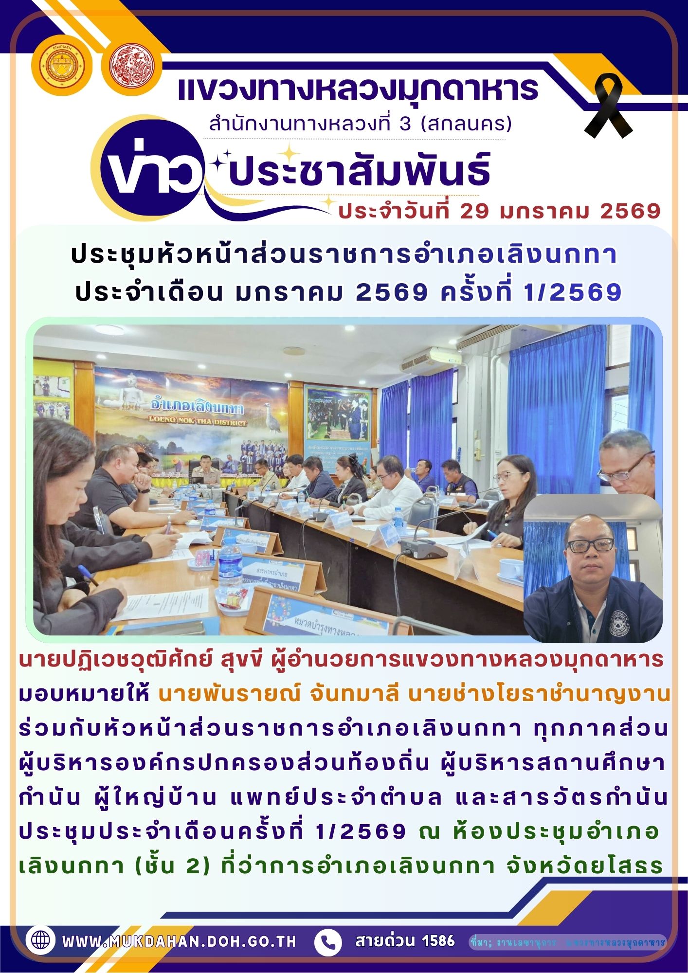 ประชุมหัวหน้าส่วนราชการอำเภอเลิงนกทา ประจำเดือนมกราคม 2569 ครั้งที่ 1/2569