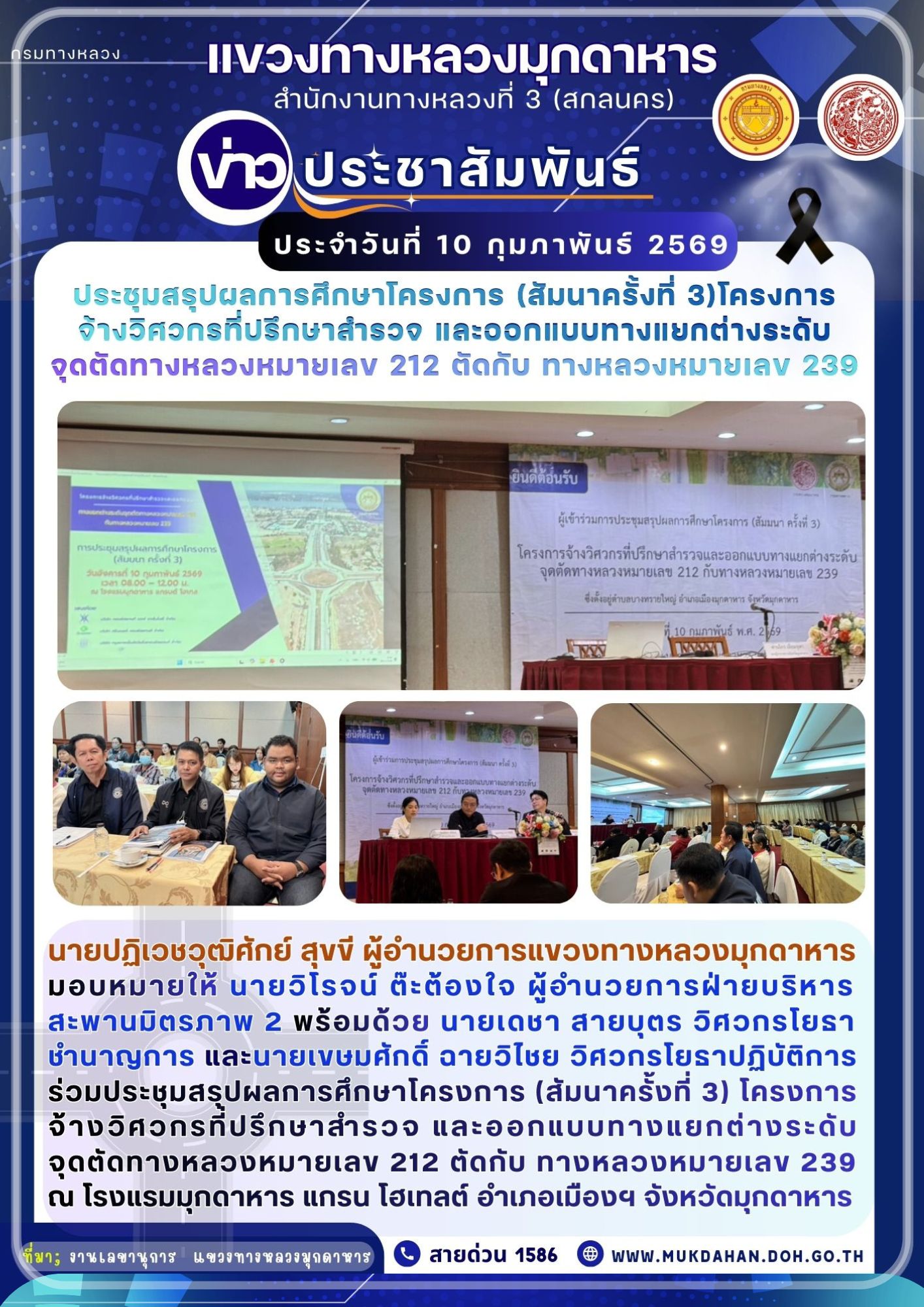 ประชุมสรุปผลการศึกษาโครงการ (สัมนาครั้งที่ 3) โครงการจ้างวิศวกรที่ปรึกษาสำรวจและออกแบบทางแยกต่างระดับ จุดตัดทางหลวงหมายเลข 212 ตัดกับ ทางหลวงหมายเลข 239