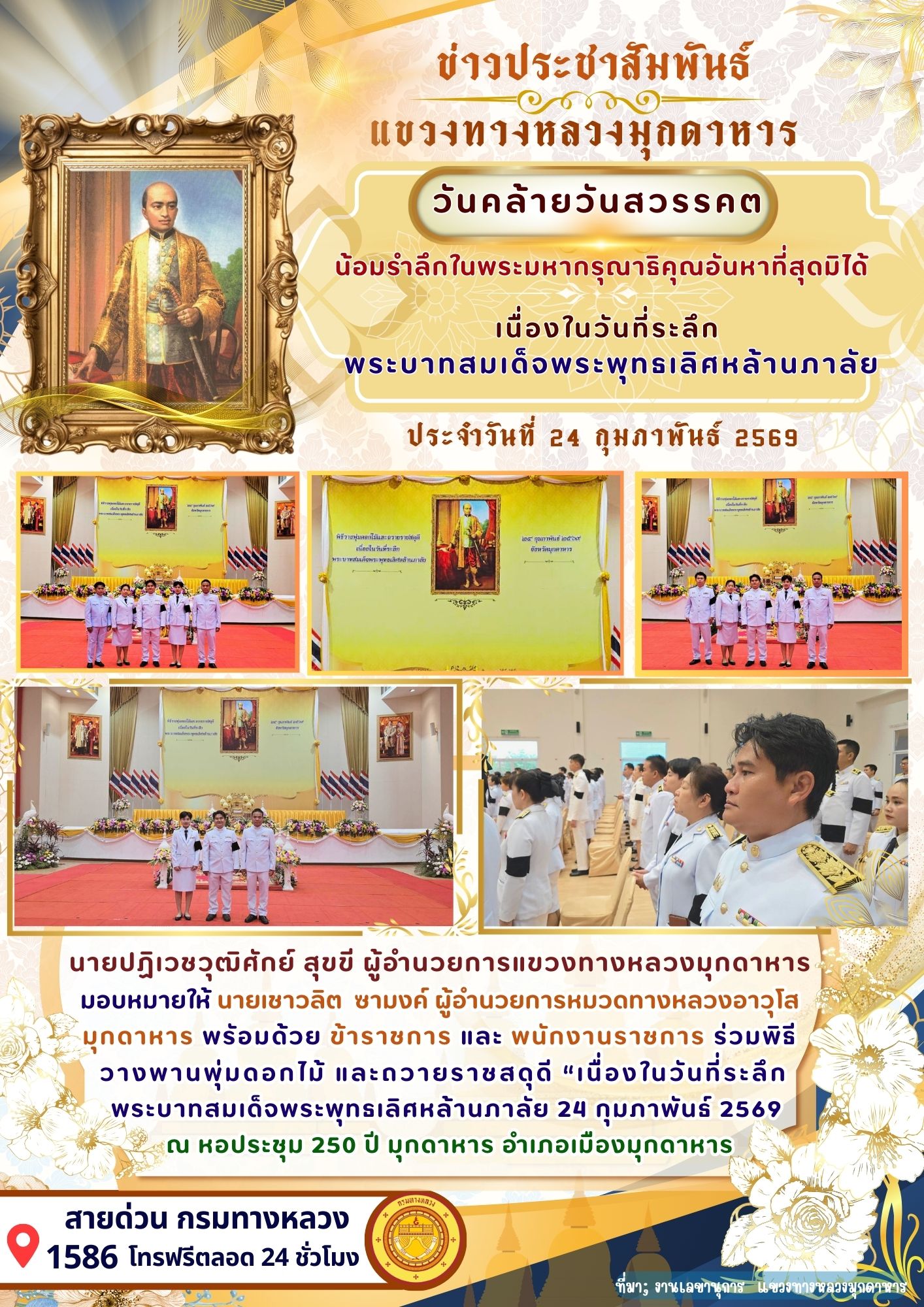 ร่วมพิธีวางพานพุ่มดอกไม้ และถวายราชสดุดี “เนื่องในวันที่ระลึกพระบาทสมเด็จพระพุทธเลิศหล้านภาลัย