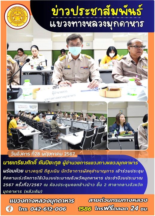 ร่วมประชุมติดตามเร่งรัดการใช้เงินงบประมาณจังหวัดมุกดาหาร ประจำปีงบประมาณ 2567 ครั้งที่2/2567