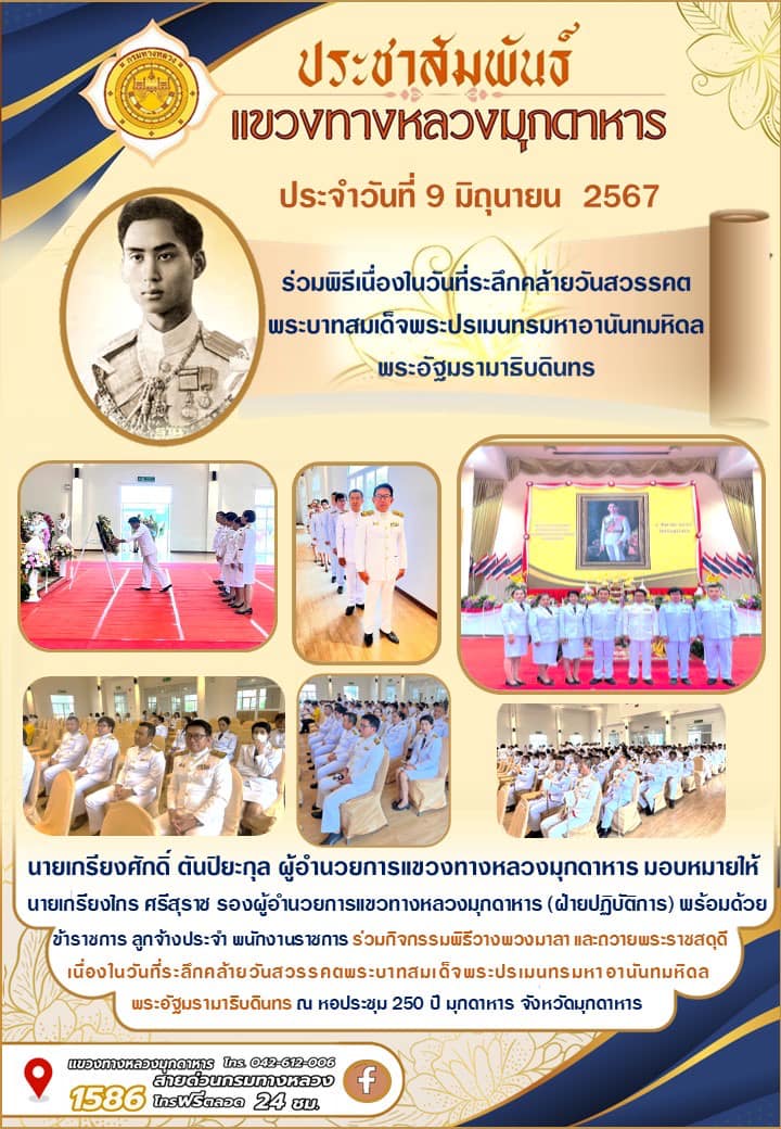 กิจกรรมพิธีวางพวงมาลาและถวายพระราชสดุดี เนื่องในวันที่ระลึกคล้ายวันสวรรคตพระบาทสมเด็จพระปรเมนทรมหาอานันทมหิดลพระอัฐมรามาธิบดินทร