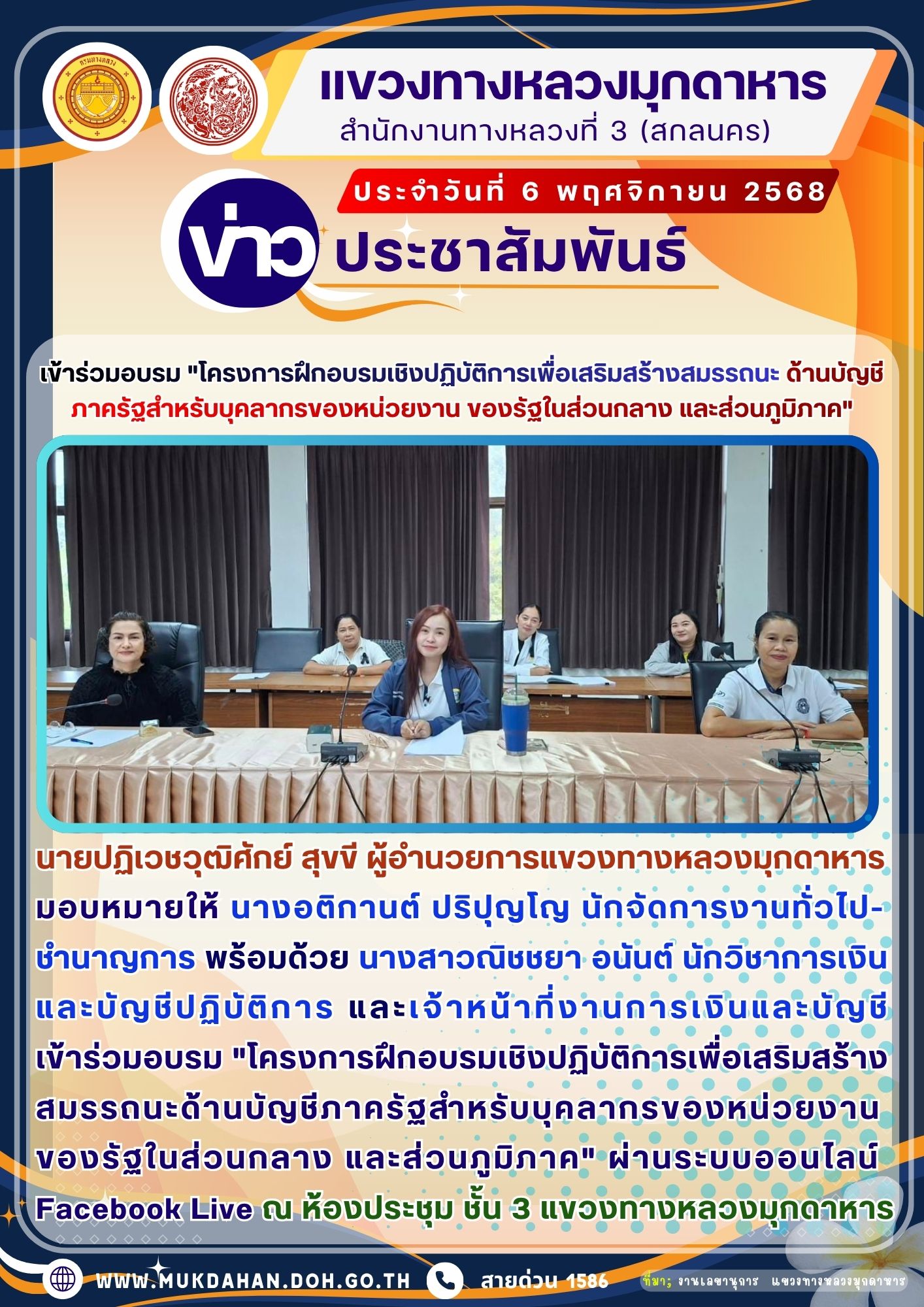 เข้าร่วมอบรม "โครงการฝึกอบรมเชิงปฏิบัติการเพื่อเสริมสร้างสมรรถนะด้านบัญชีภาครัฐสำหรับบุคลากรของหน่วยงานของรัฐในส่วนกลาง และส่วนภูมิภาค"