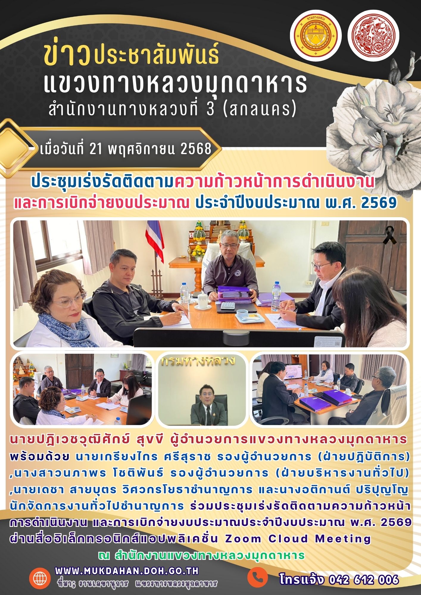 ร่วมประชุมเร่งรัดติดตามความก้าวหน้าการดำเนินงาน และการเบิกจ่ายงบประมาณประจำปีงบประมาณ พ.ศ. 2569