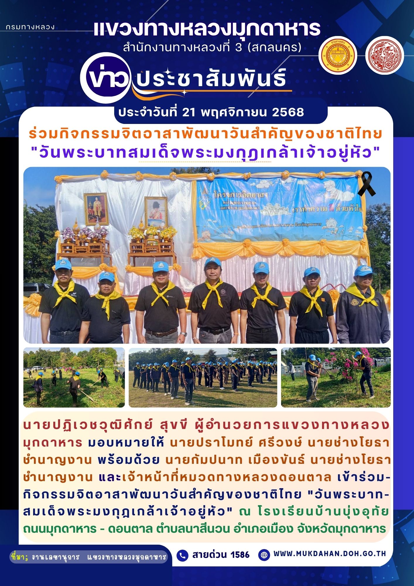 เข้าร่วมกิจกรรมจิตอาสาพัฒนาวันสำคัญของชาติไทย "วันพระบาทสมเด็จพระมงกุฎเกล้าเจ้าอยู่หัว"