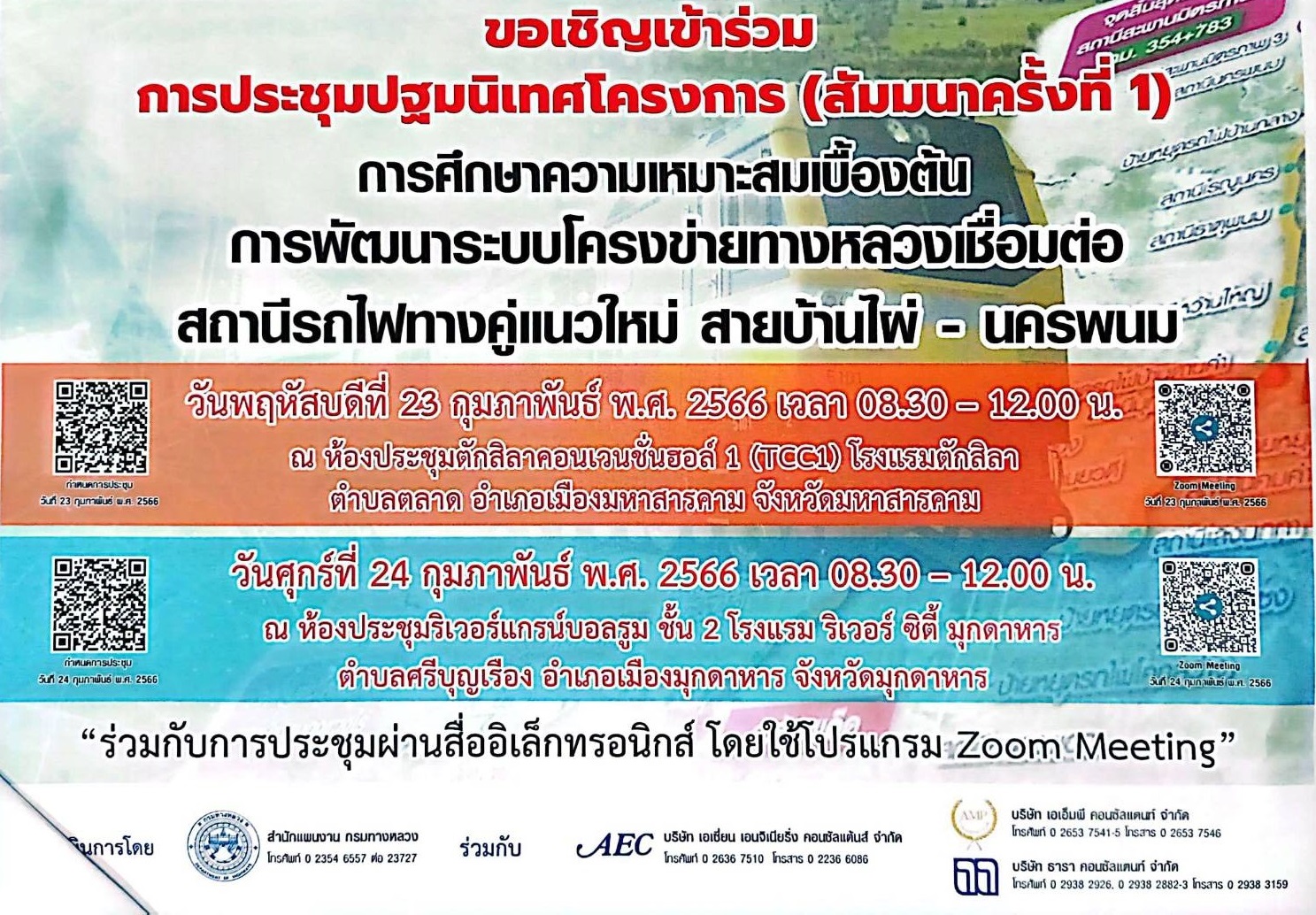 เชิญร่วมประชุมโครงข่ายทางหลวงเชื่อมต่อสถานีรถไฟทางคู่แนวใหม่ สายบ้านไผ่ - นครพนม