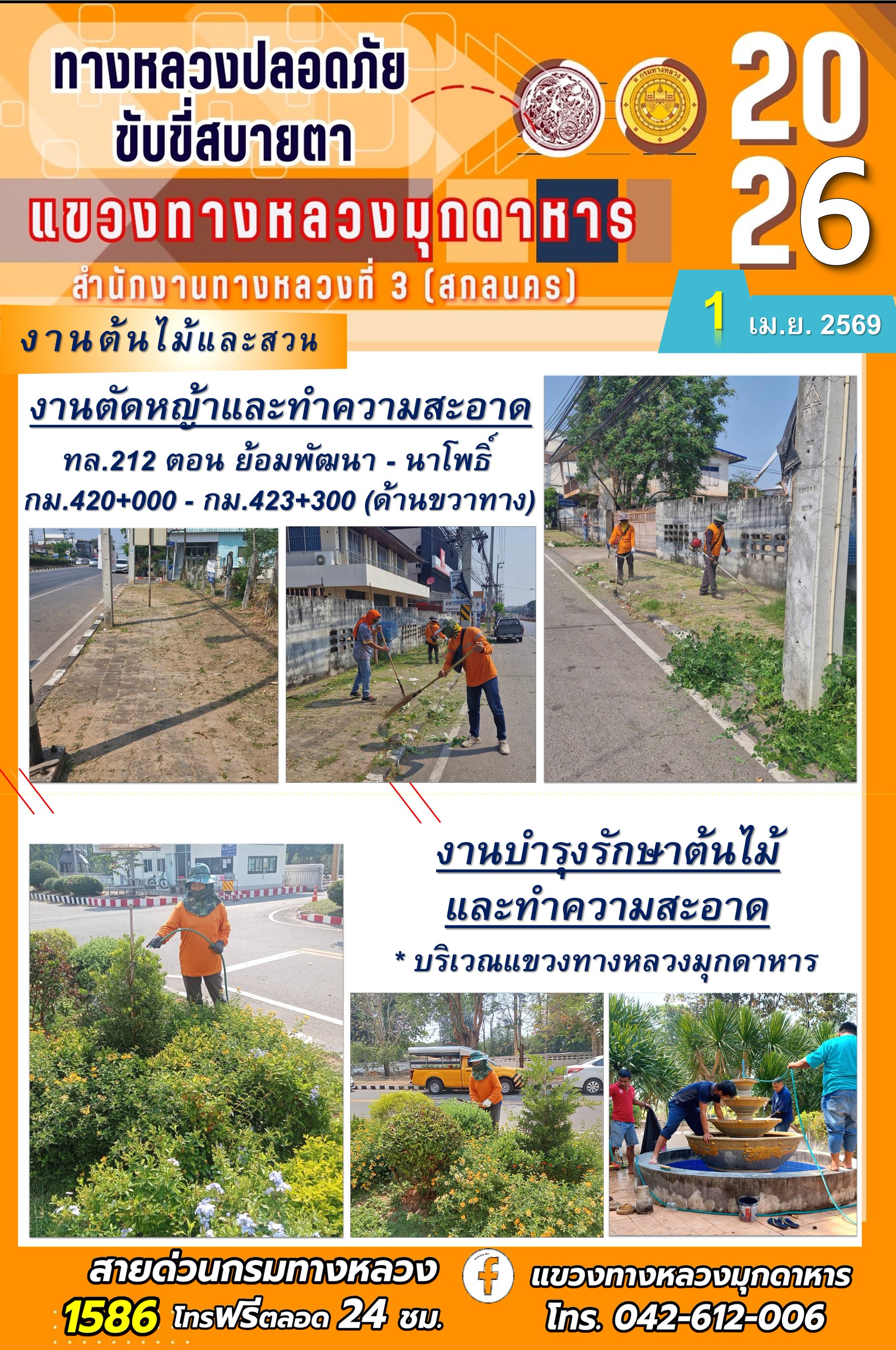 ประจำวันที่ 1 เมษายน 2569 โครงการทางหลวงปลอดภัย ขับขี่สบายตา หน่วยงานในสังกัดแขวงทางหลวง