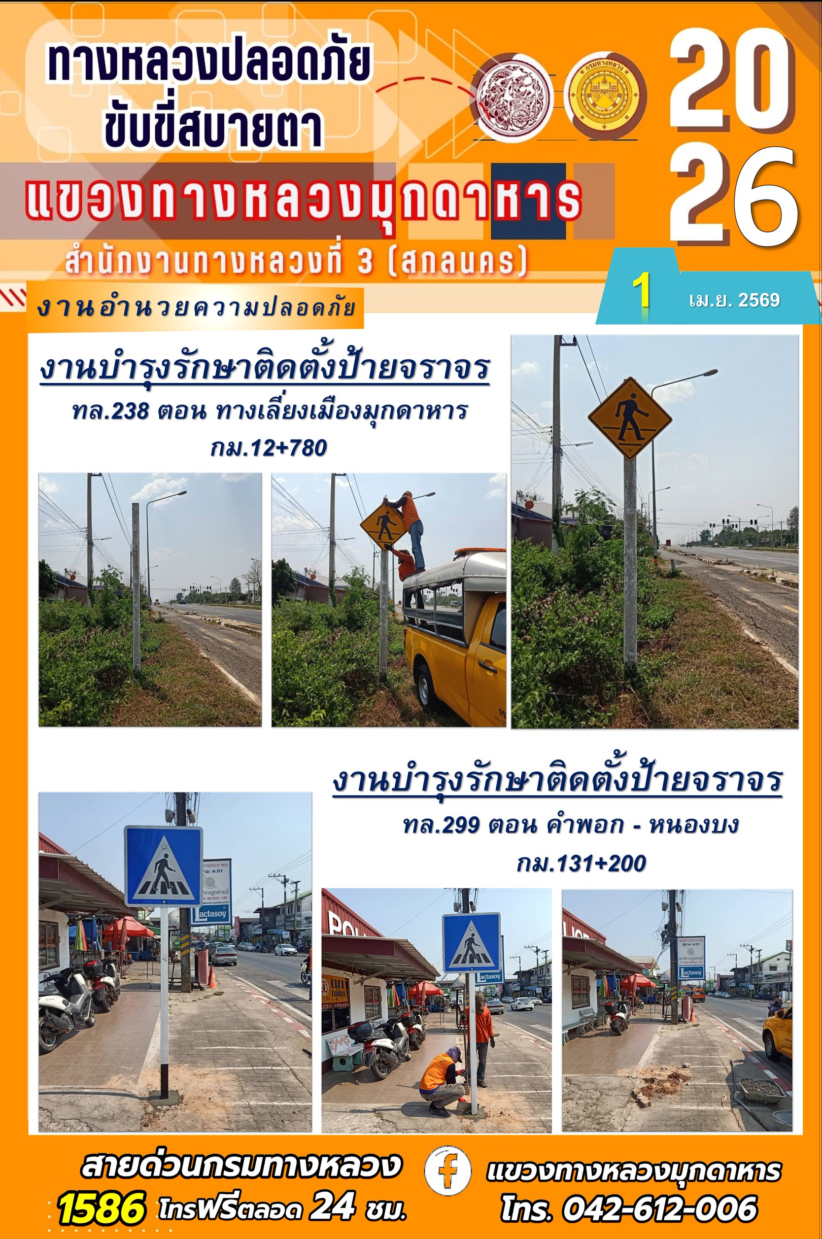 ข้อมูลภาพกิจกรรม : ประจำวันที่ 1 เมษายน 2569 โครงการทางหลวงปลอดภัย ขับขี่สบายตา หน่วยงานในสังกัดแขวงทางหลวง