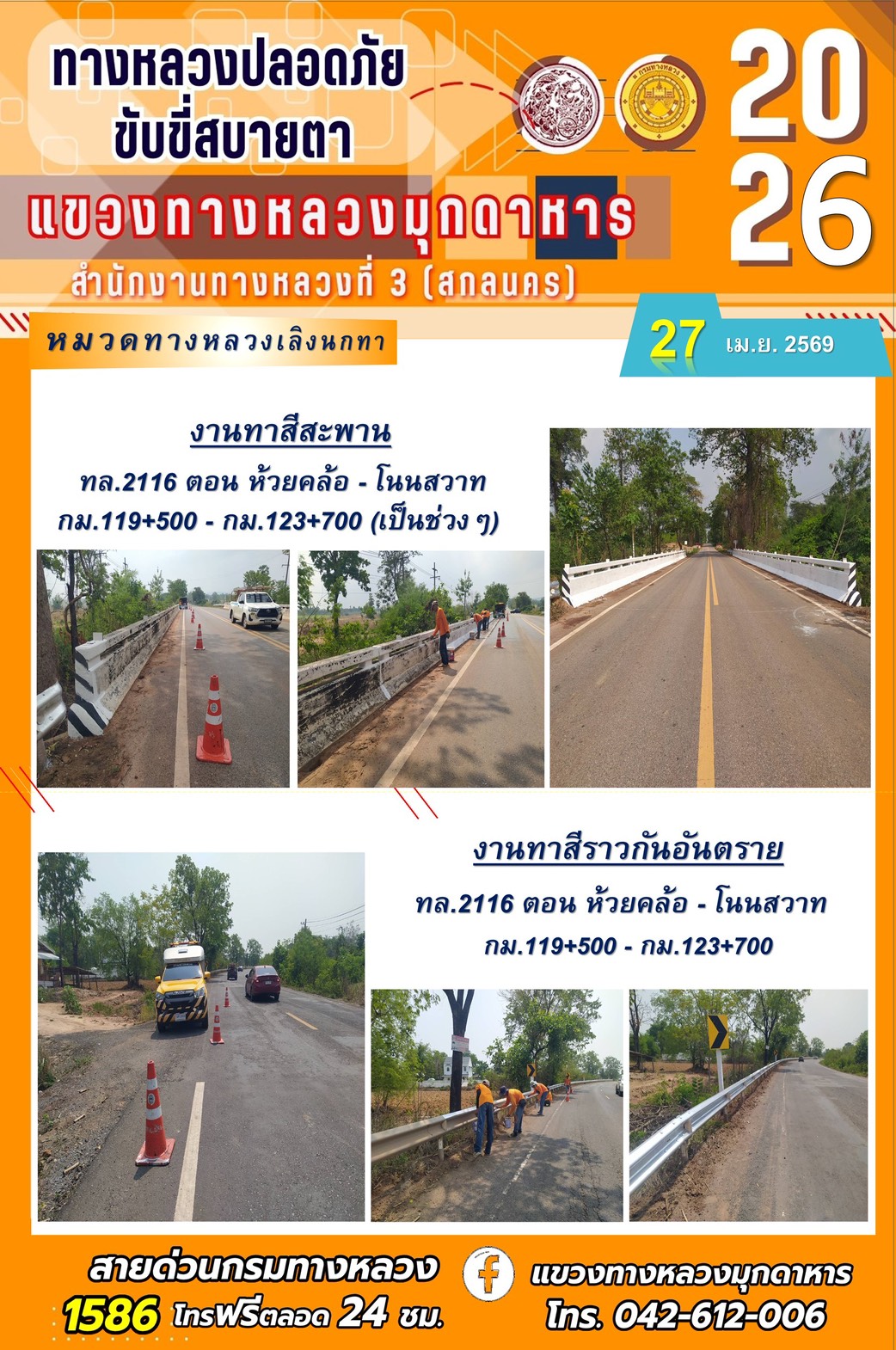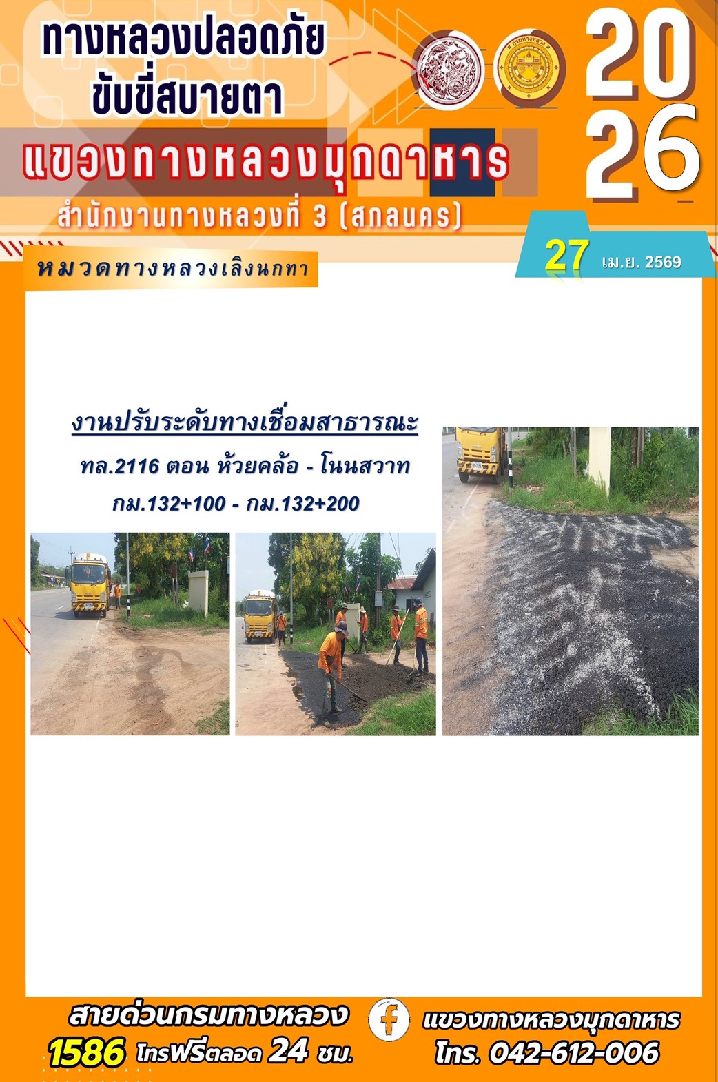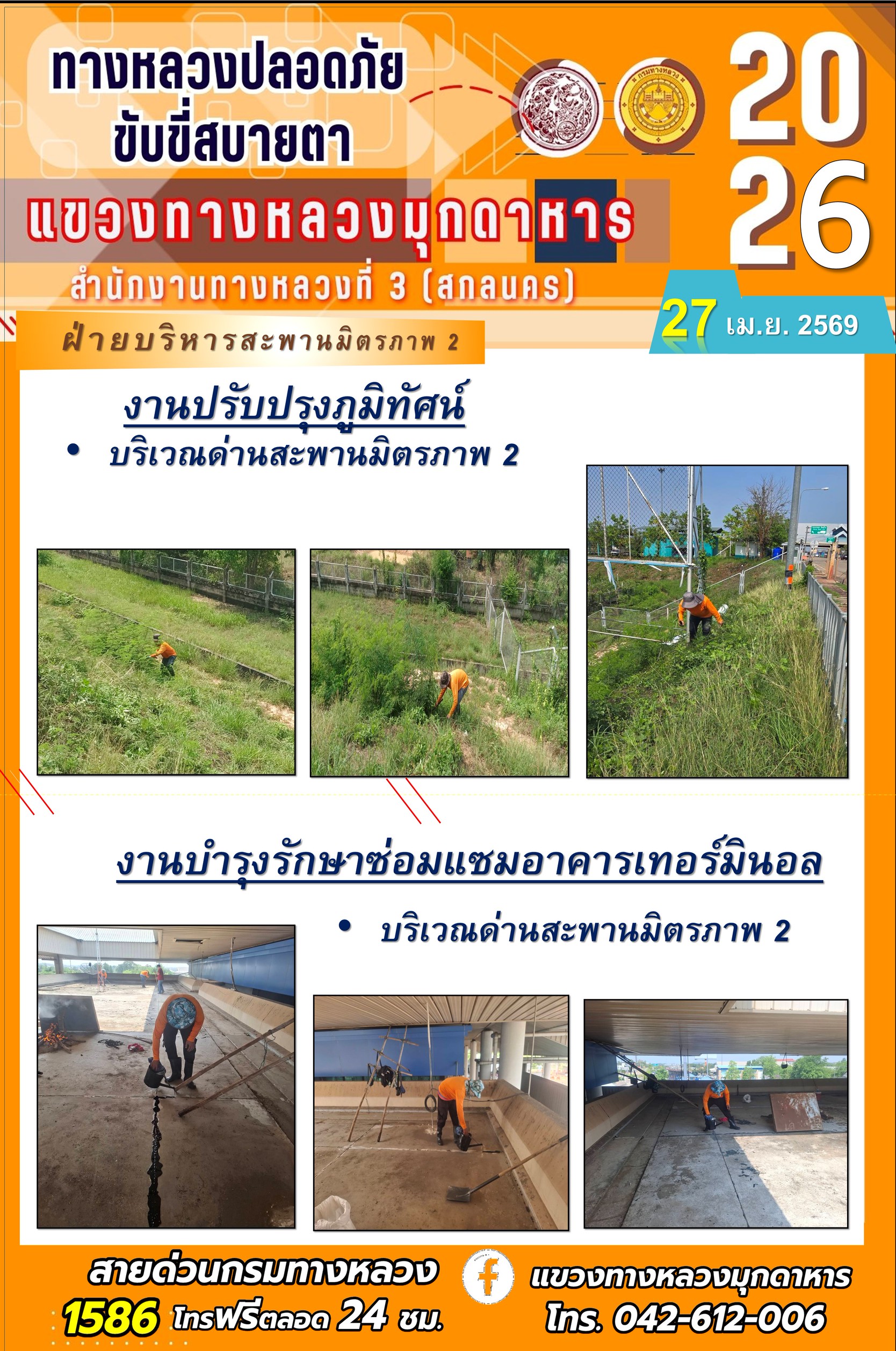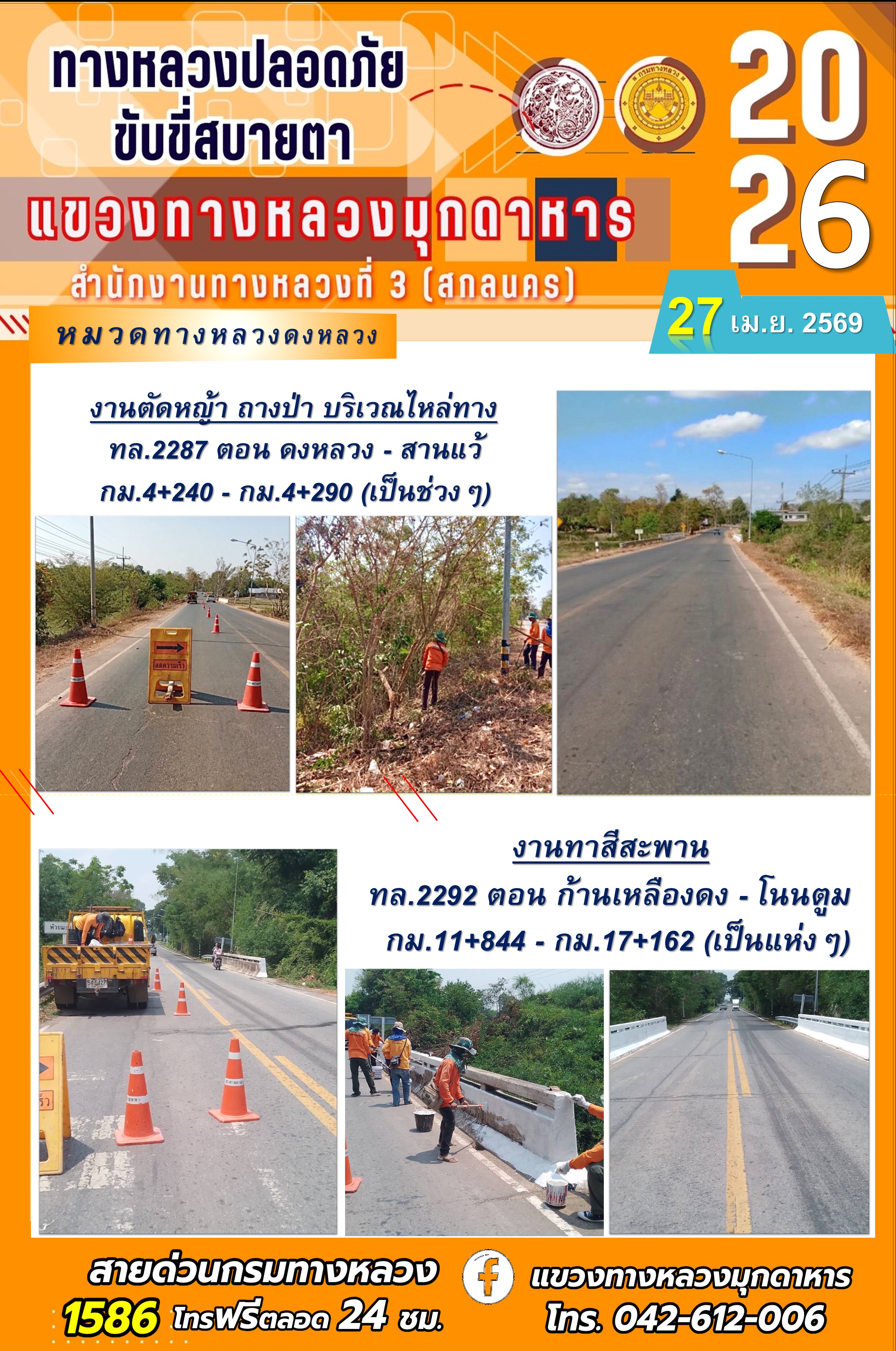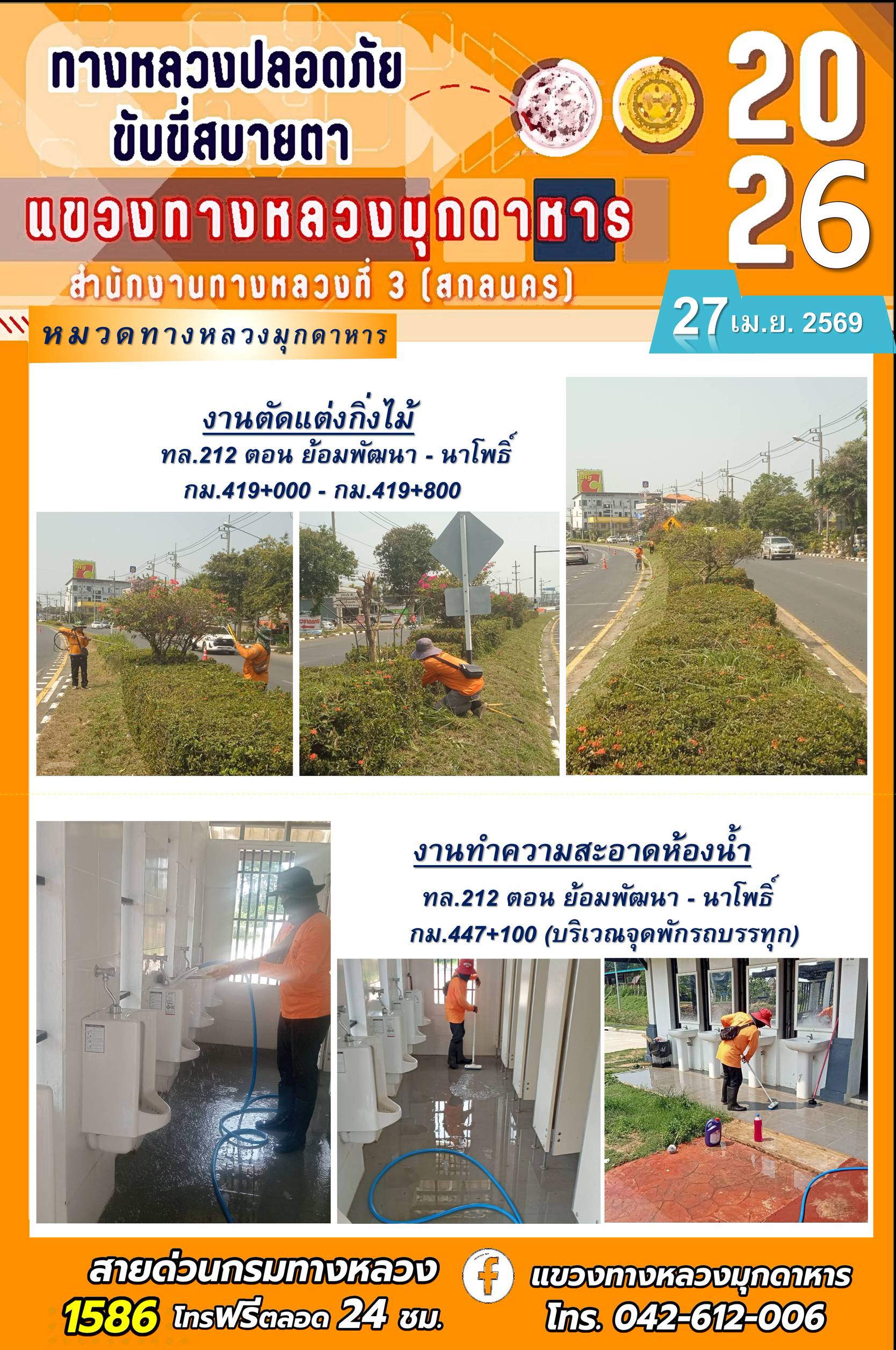 ประจำวันที่ 27 เมษายน 2569 โครงการทางหลวงปลอดภัย ขับขี่สบายตา หน่วยงานในสังกัดแขวงทางหลวง