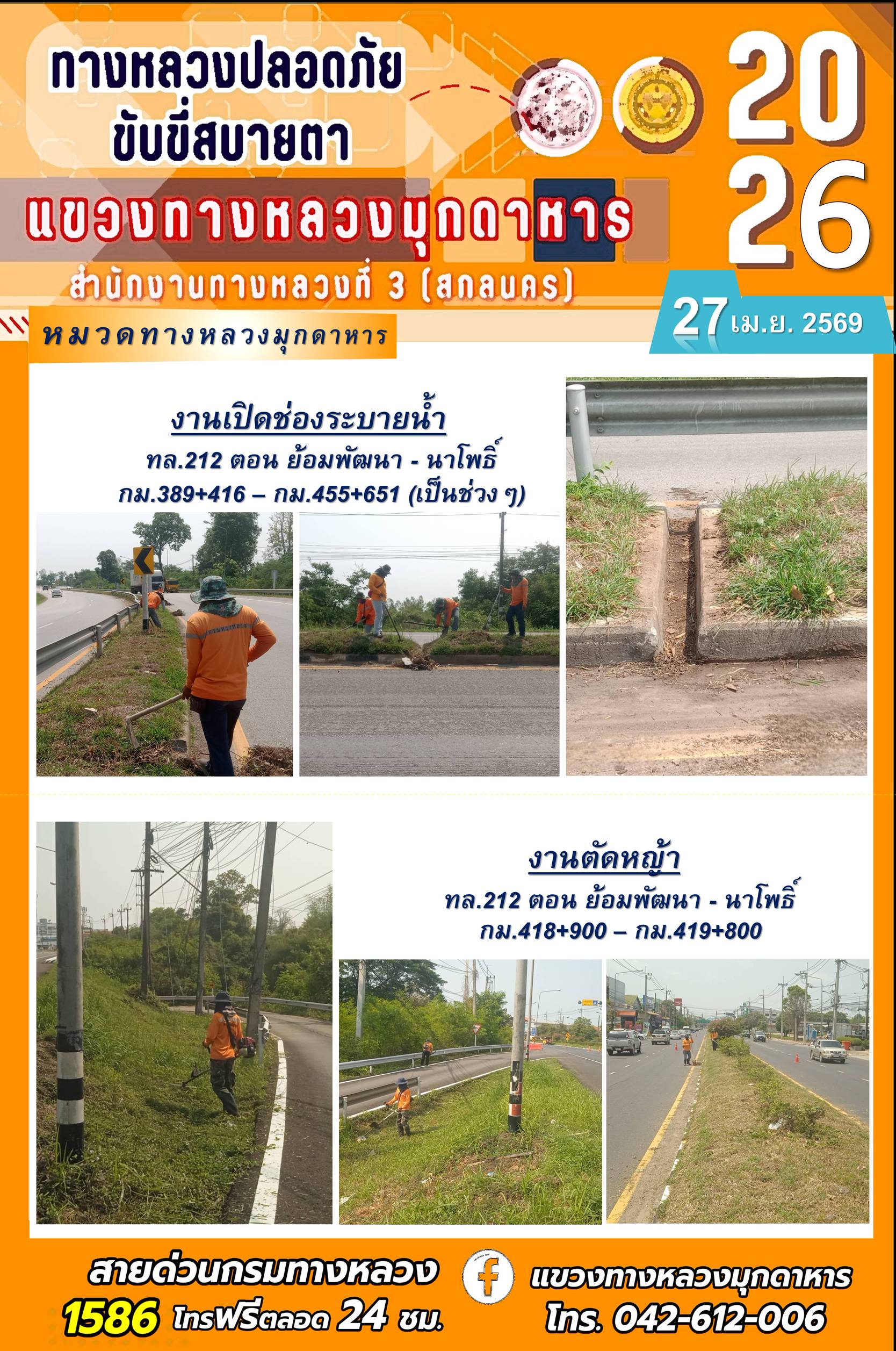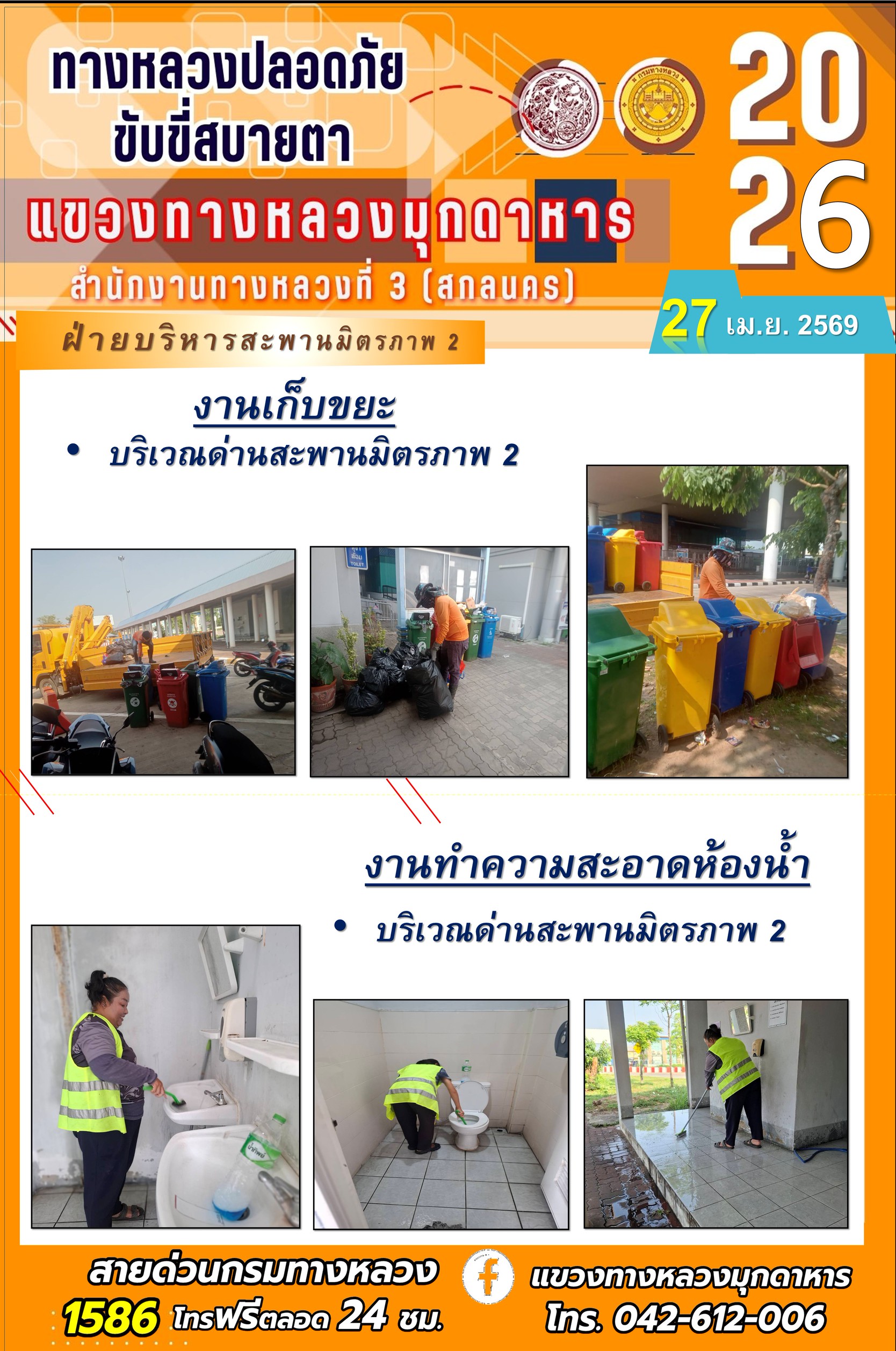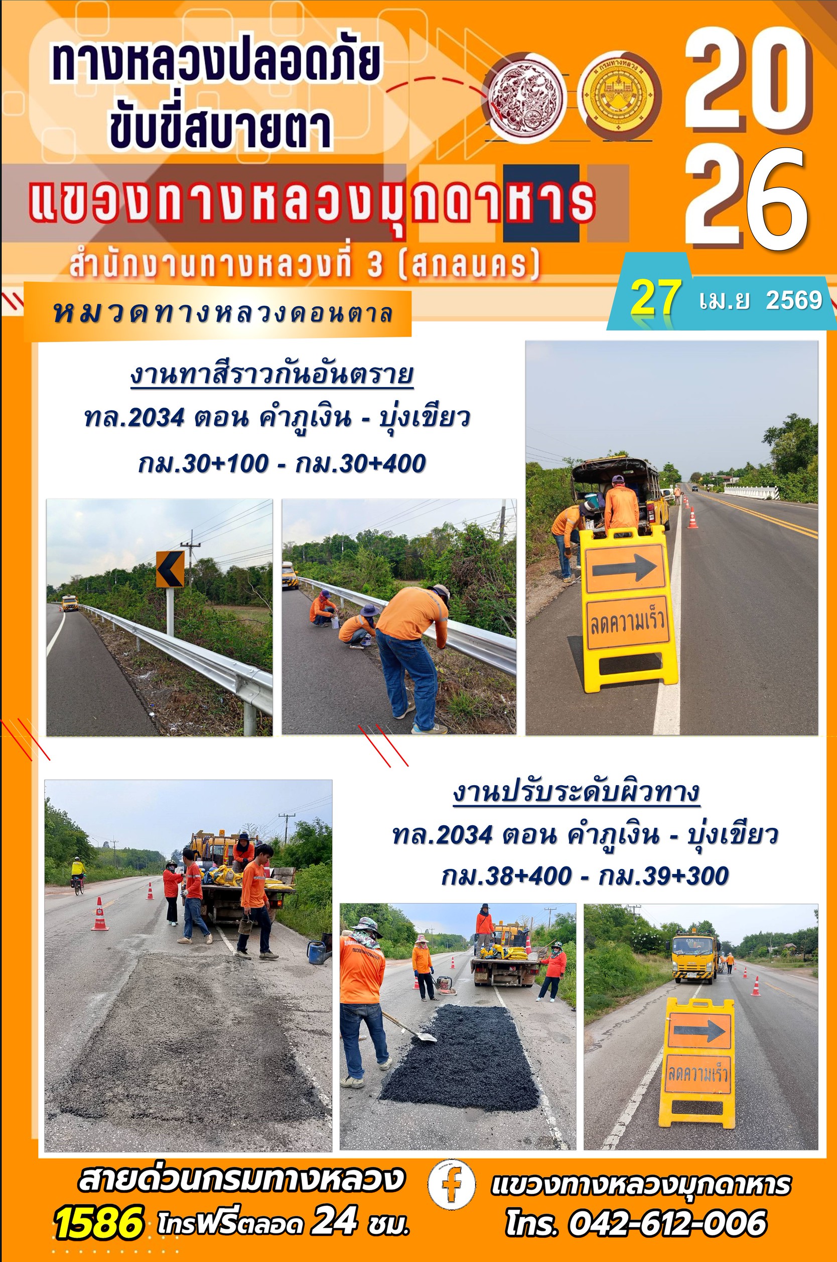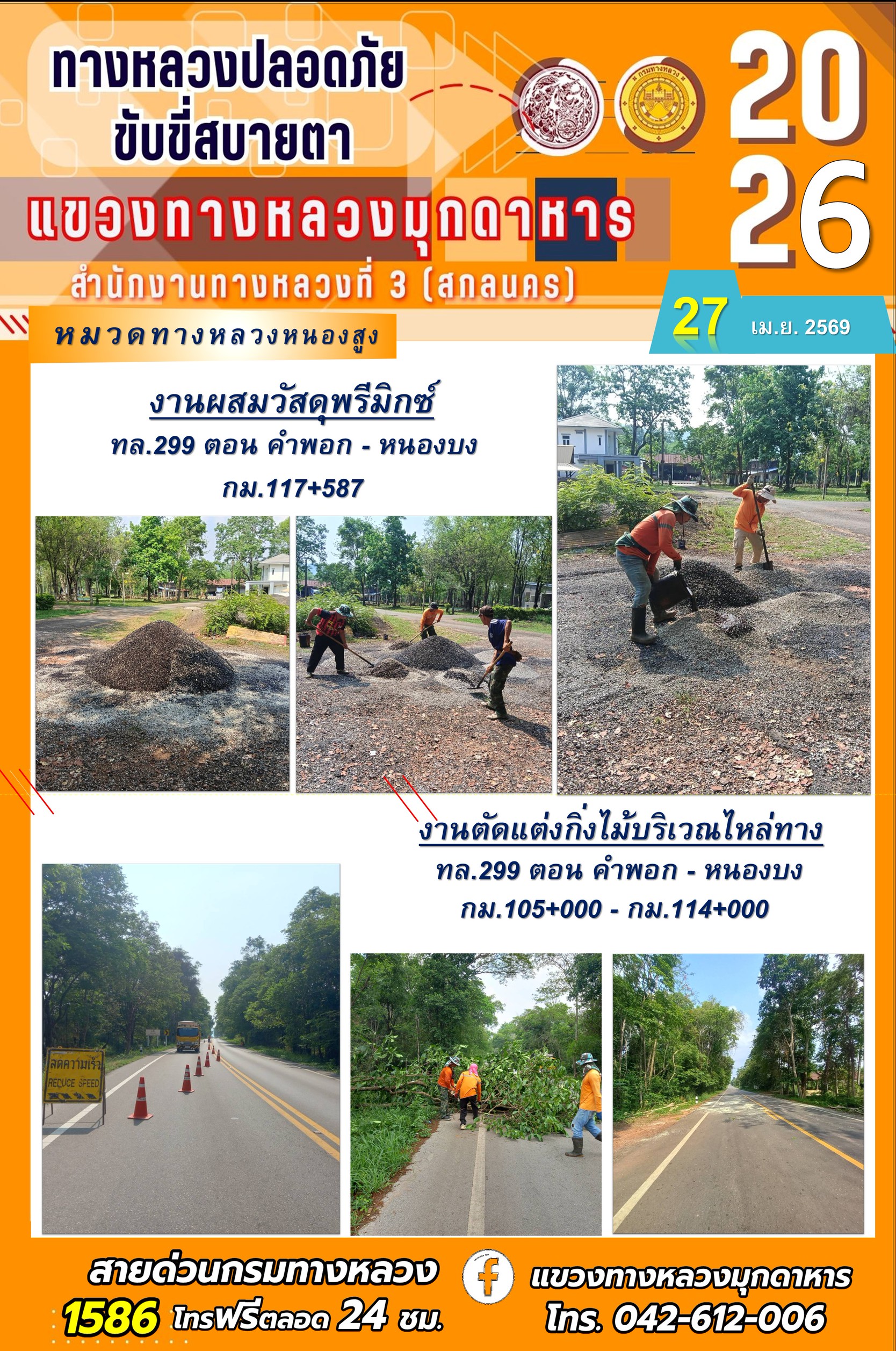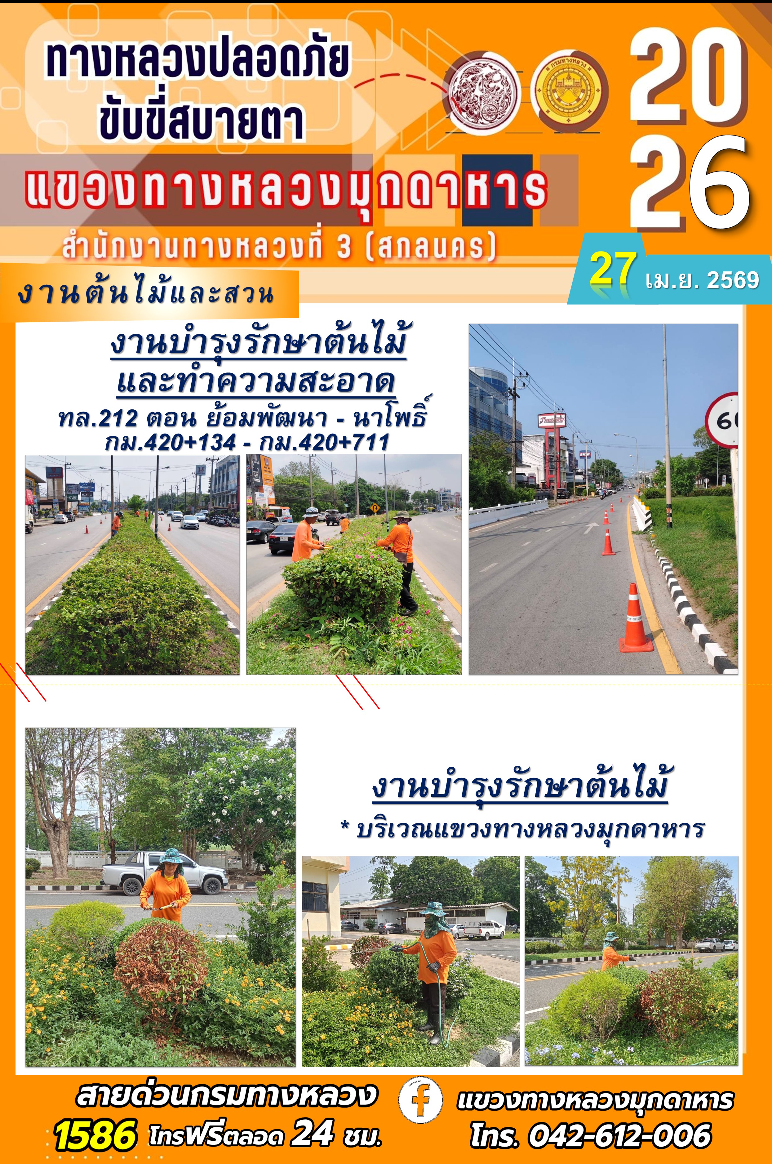 ประจำวันที่ 27 เมษายน 2569 โครงการทางหลวงปลอดภัย ขับขี่สบายตา หน่วยงานในสังกัดแขวงทางหลวง