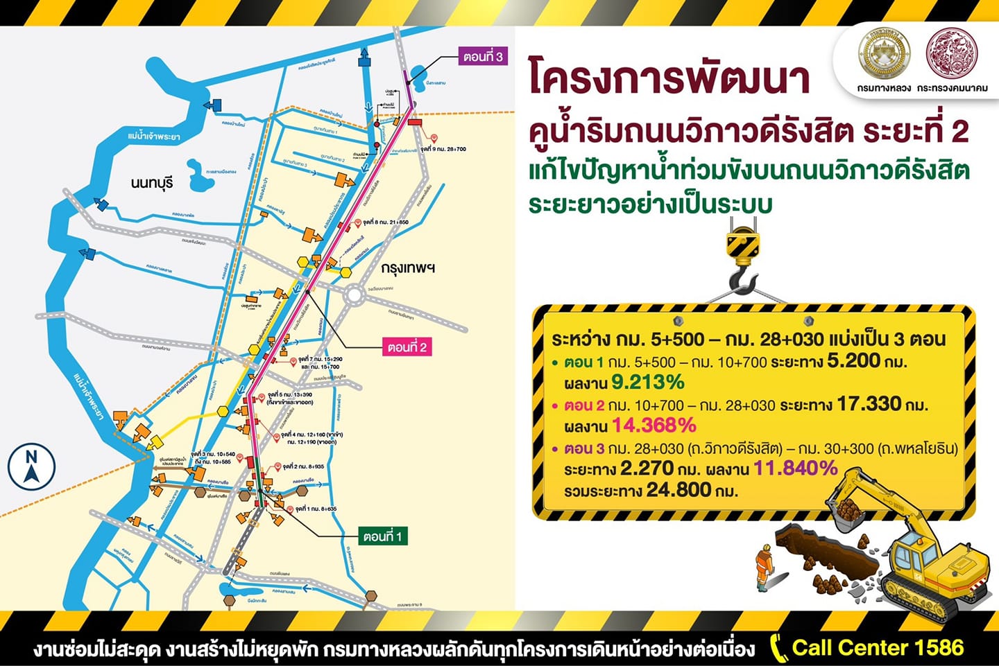 - โครงการพัฒนาคูน้ำริมถนนวิภาวดีรังสิต ระยะที่ 2 แก้ไขปัญหาน้ำท่วมขังบนถนนวิภาวดีรังสิตระยะยาวอย่างเป็นระบบ