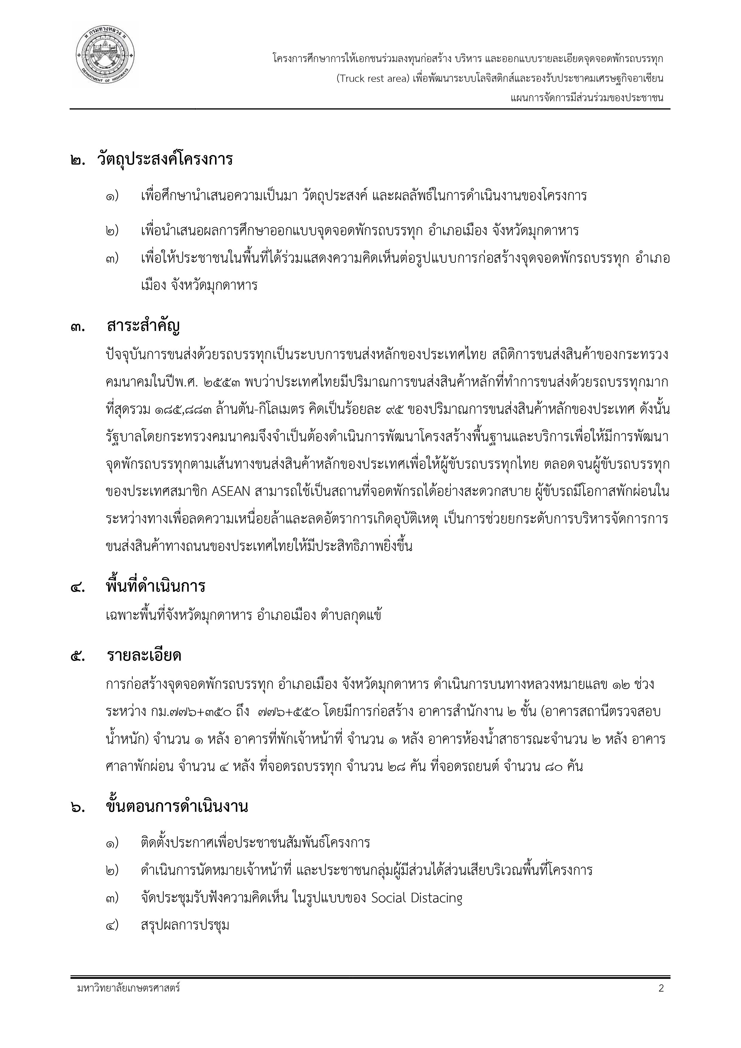 โครงการศึกษาการให้เอกชนร่วมลงทุนก่อสร้าง บริหาร และออกแบบรายละเอียดจุดจอดพักรถบรรทุก (Truck rest area) เพื่อพัฒนาระบบโลจิสติกส์และรองรับประชาคมเศรษฐกิจอาเซียน (จุดจอดพักรถบรรทุก อำเภอเมือง จังหวัดมุกดาหาร)