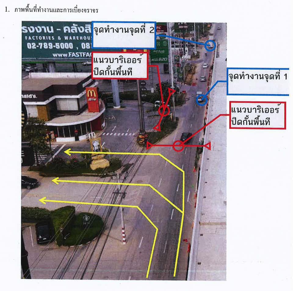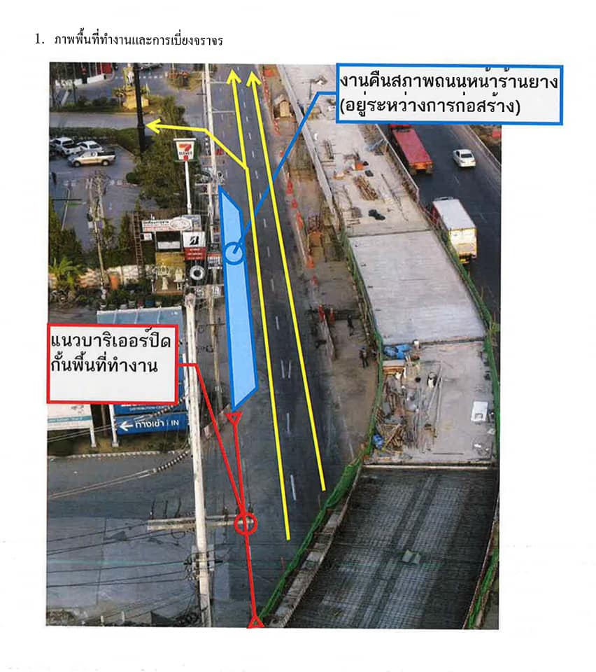 ต้ถนน 2 จุด คือ 1.) จุดก่อนทางเข้าสถานีบริการน้ำมัน PTT 2.) จุดก่อนทางเข้าสถานที่ก่อสร้างโชว์รูม Volvo บริเวณทางคู่ขนานถนนพหลโยธินฝั่งขาออก ตั้งแต่บริเวณหน้าร้านแมคโดนัลด์ เป็นต้นไป และเบี่ยงรถเข้าทางโรงงาน FastFac ในวันที่ 3 เมษายน 2564 วันเดียว