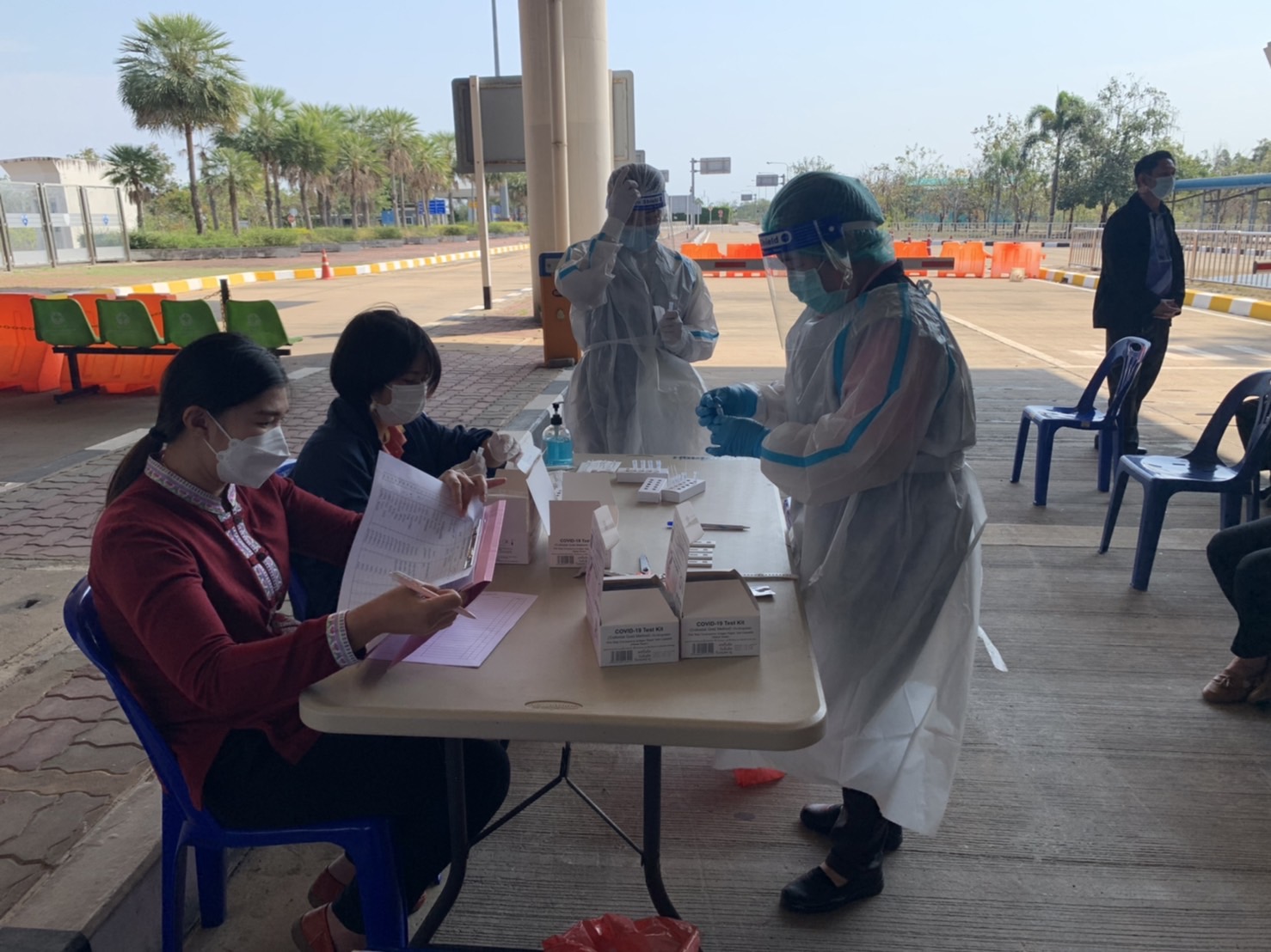 ณ ด่านสะพานมิตรภาพ 2 (มุกดาหาร - สะหวันนะเขต) อย่างเคร่งครัด ป้องกันการแพร่ระบาดของเชื้อไวรัสโควิด–19 กรมทางหลวง ติดตามเฝ้าระวังและป้องกันการแพร่ระบาดของเชื้อไวรัสโควิด–19 อย่างต่อเนื่อง ในเรื่องมาตรการคัดกรอง