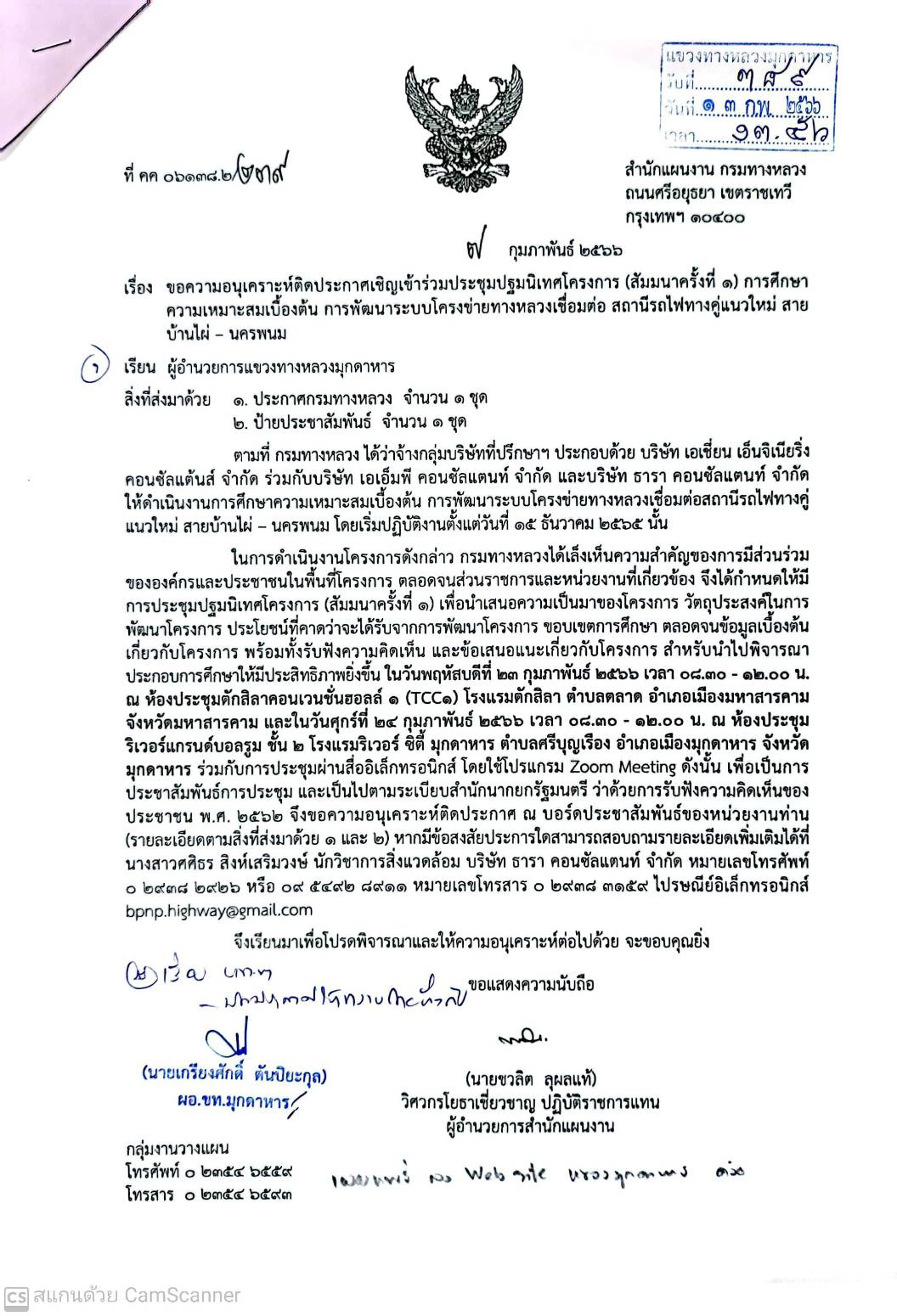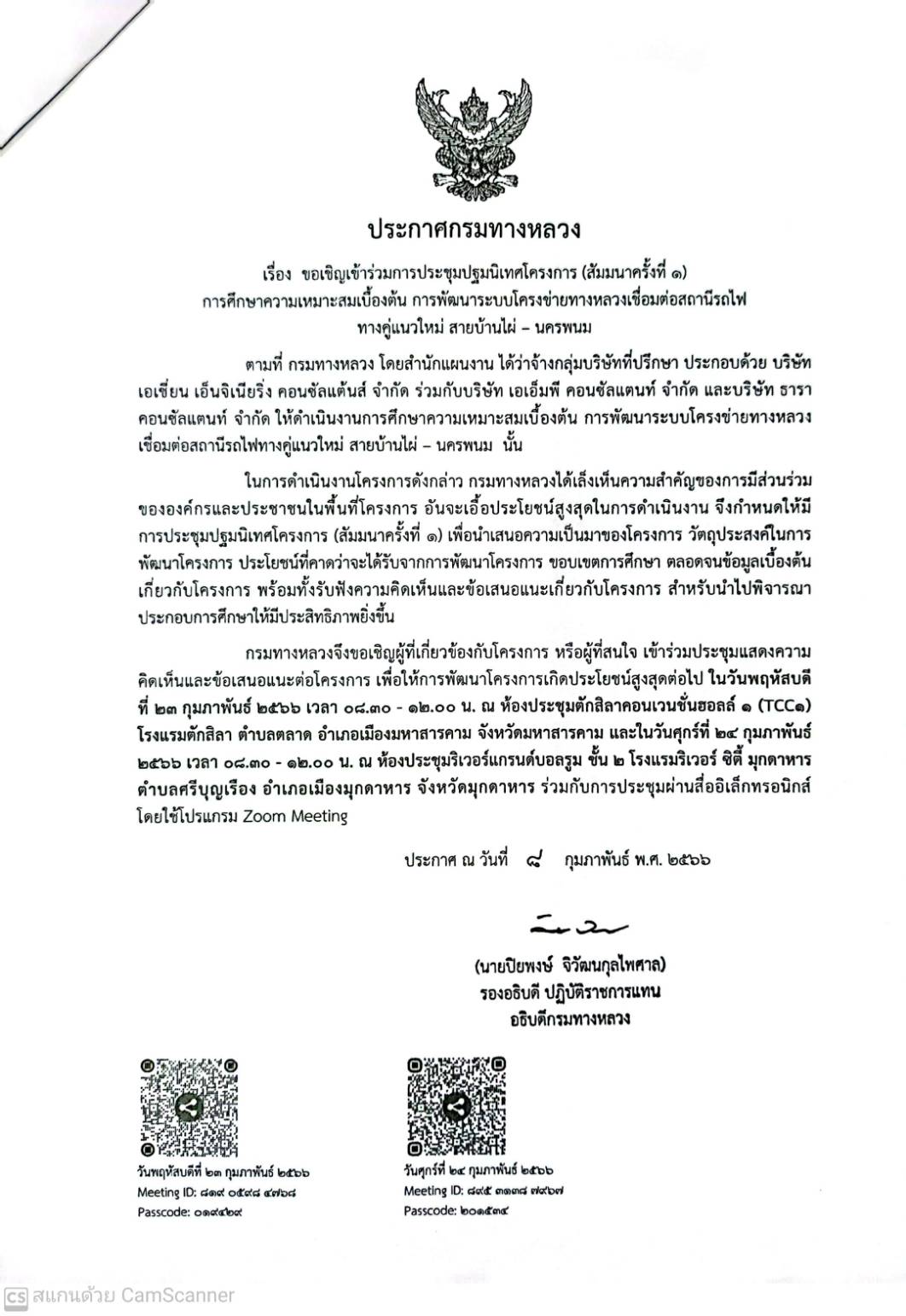 เชิญร่วมประชุมโครงข่ายทางหลวงเชื่อมต่อสถานีรถไฟทางคู่แนวใหม่ สายบ้านไผ่ - นครพนม