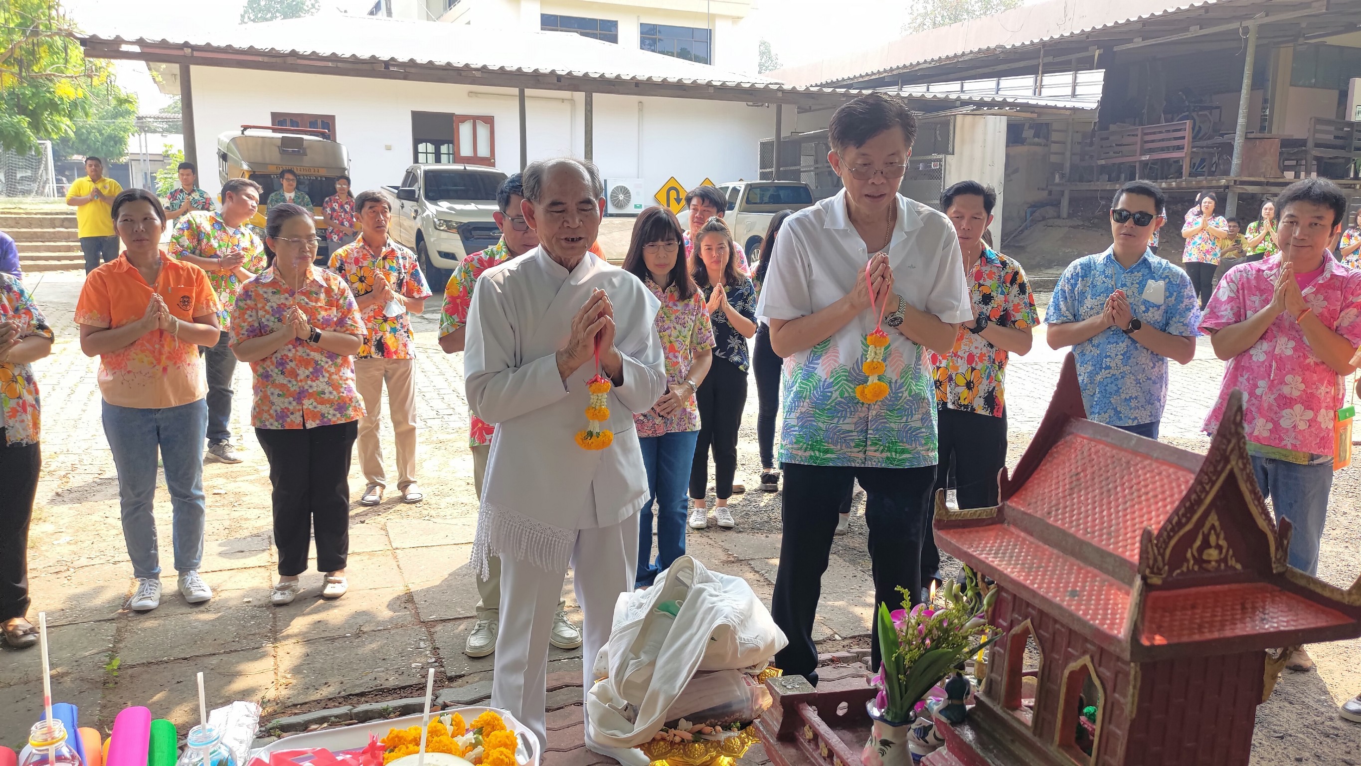 นำคณะผู้บริหาร และบุคลากรในสังกัด ทำบุญเลี้ยงพระ รดน้ำขอพร เทศกาลสงกรานต์ ปี 2566 (วันขึ้นปีใหม่ไทย) เพื่อเสริมความเป็นสิริมงคลในการปฏิบัติราชการ และความเจริญรุ่งเรืองขององค์กร ณ สำนักงานแขวงทางหลงมุกดาหาร