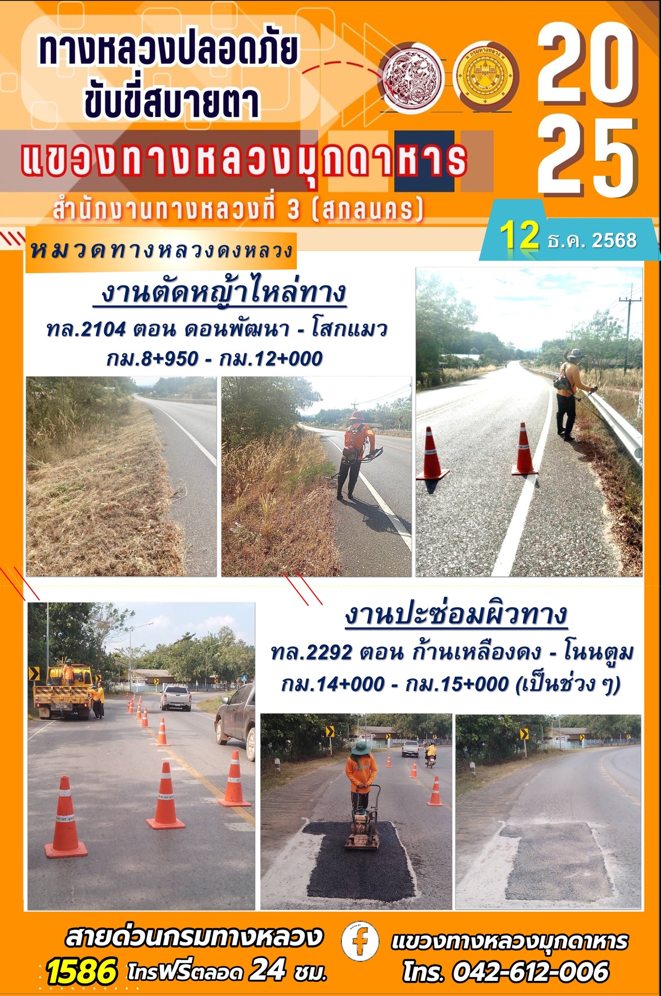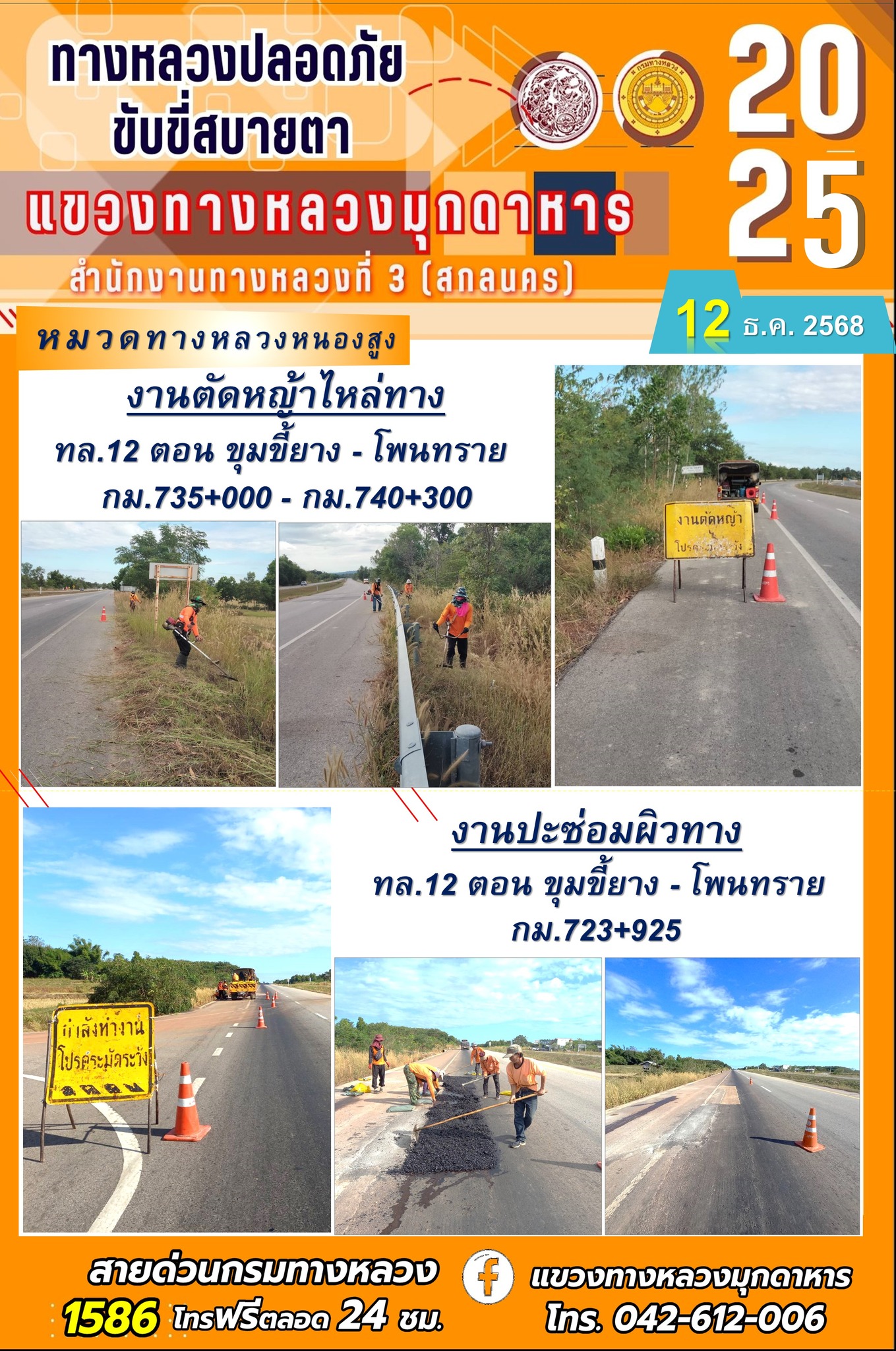 ประจำวันที่ 12 ธันวาคม 2568 2568 โครงการทางหลวงปลอดภัย ขับขี่สบายตา
