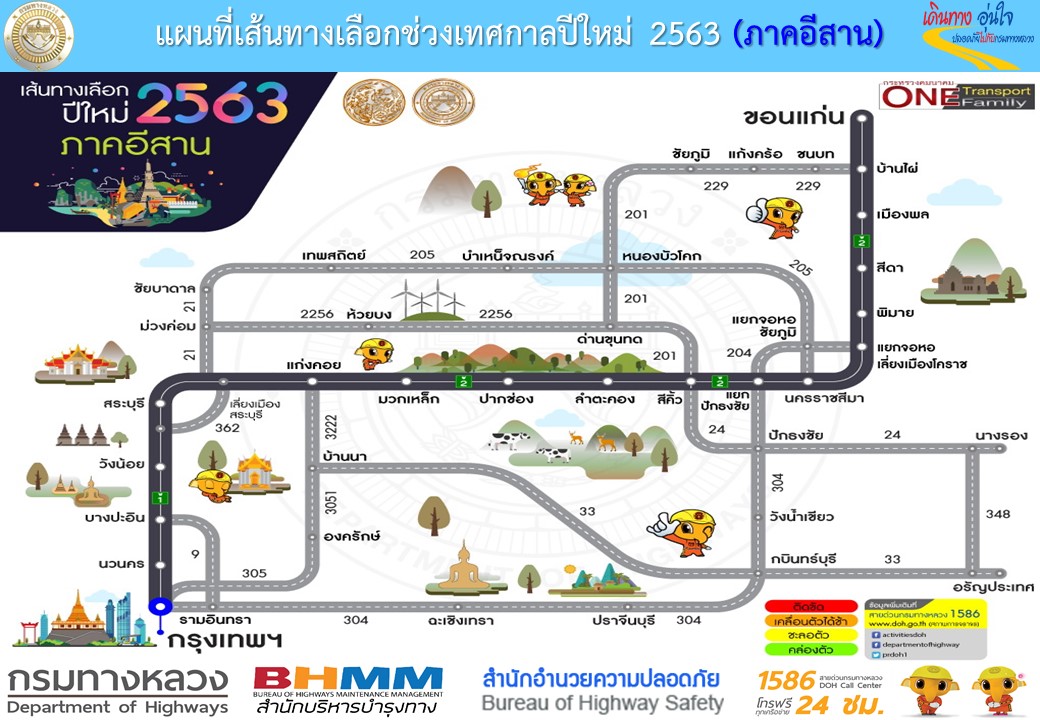 ข้อมูลข่าว : แผนที่เส้นทางรวมทุกภาคช่วงเทศกาลปีใหม่ 2563
