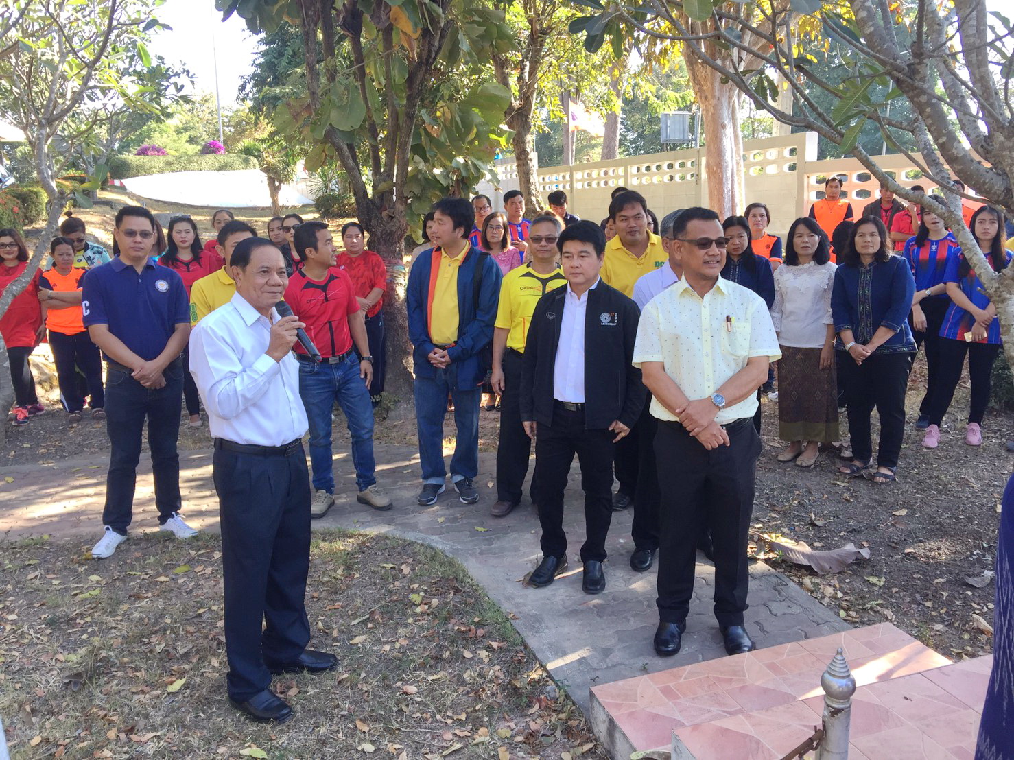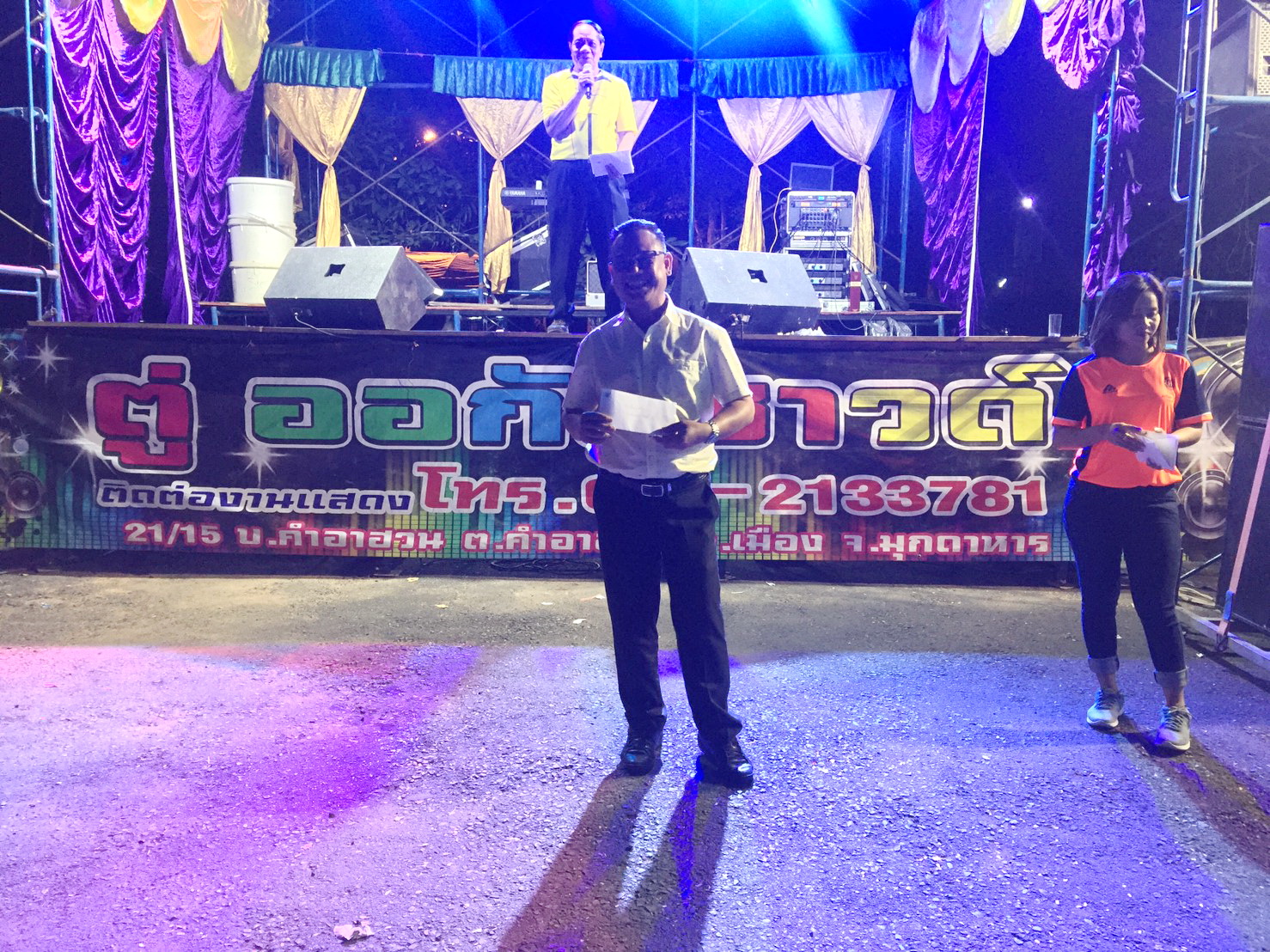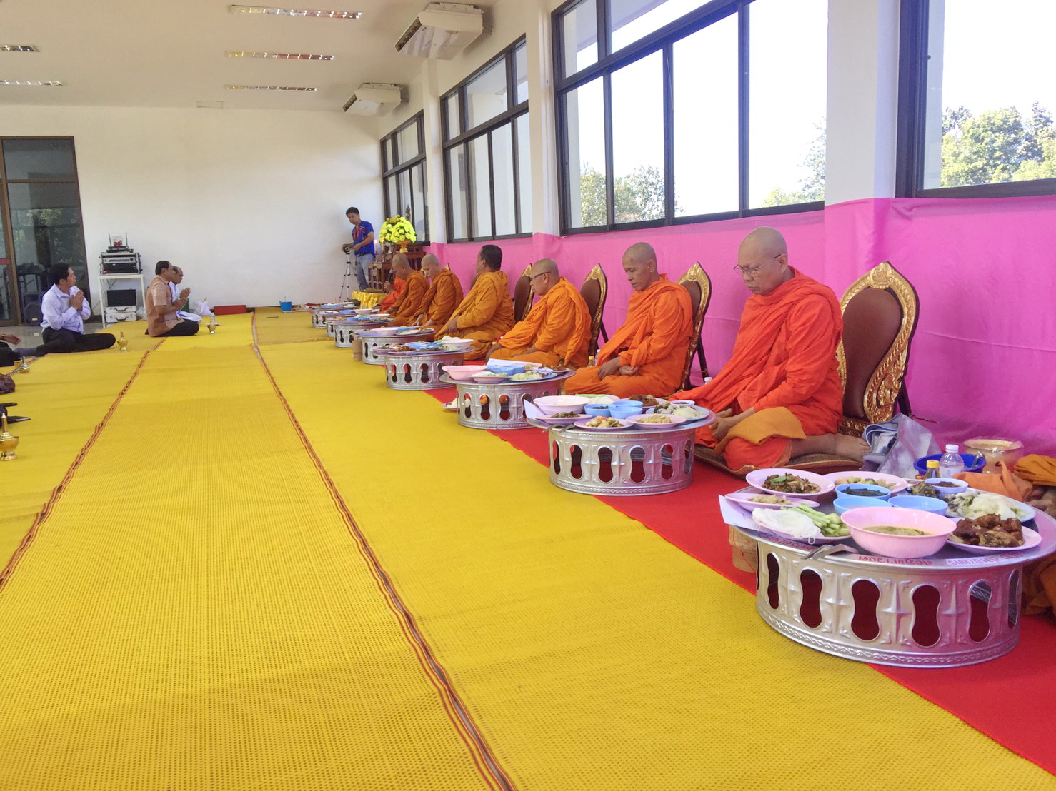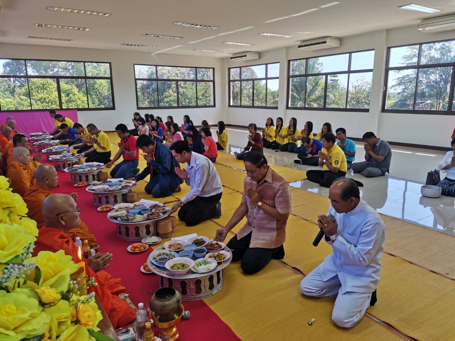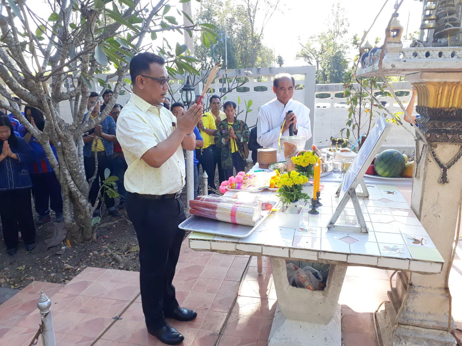 นายอาจหาญ ศิริสำราญ รองผู้อำนวยการแขวงทางหลวงมุกดาหาร (ฝ่ายวิศวกรรม) นายอนน บุญกระสาน รองผู้อำนวยการแขวงทางหลวงมุกดาหาร (ฝ่ายบริหาร) และนายวิโรจน์ ต๊ะต้องใจ หัวหน้าฝ่ายบริหารสะพานมิตรภาพฯ หัวหน้าหมวดทางหลวง พร้อมเจ้าหน้าที่แขวงทางหลวงมุกดาหาร บวงสรวงไหว้ศาลพระภูมิเจ้าที่ พร้อมถวายเพลพระสงฆ์ เนื่องในโอกาสทำบุ