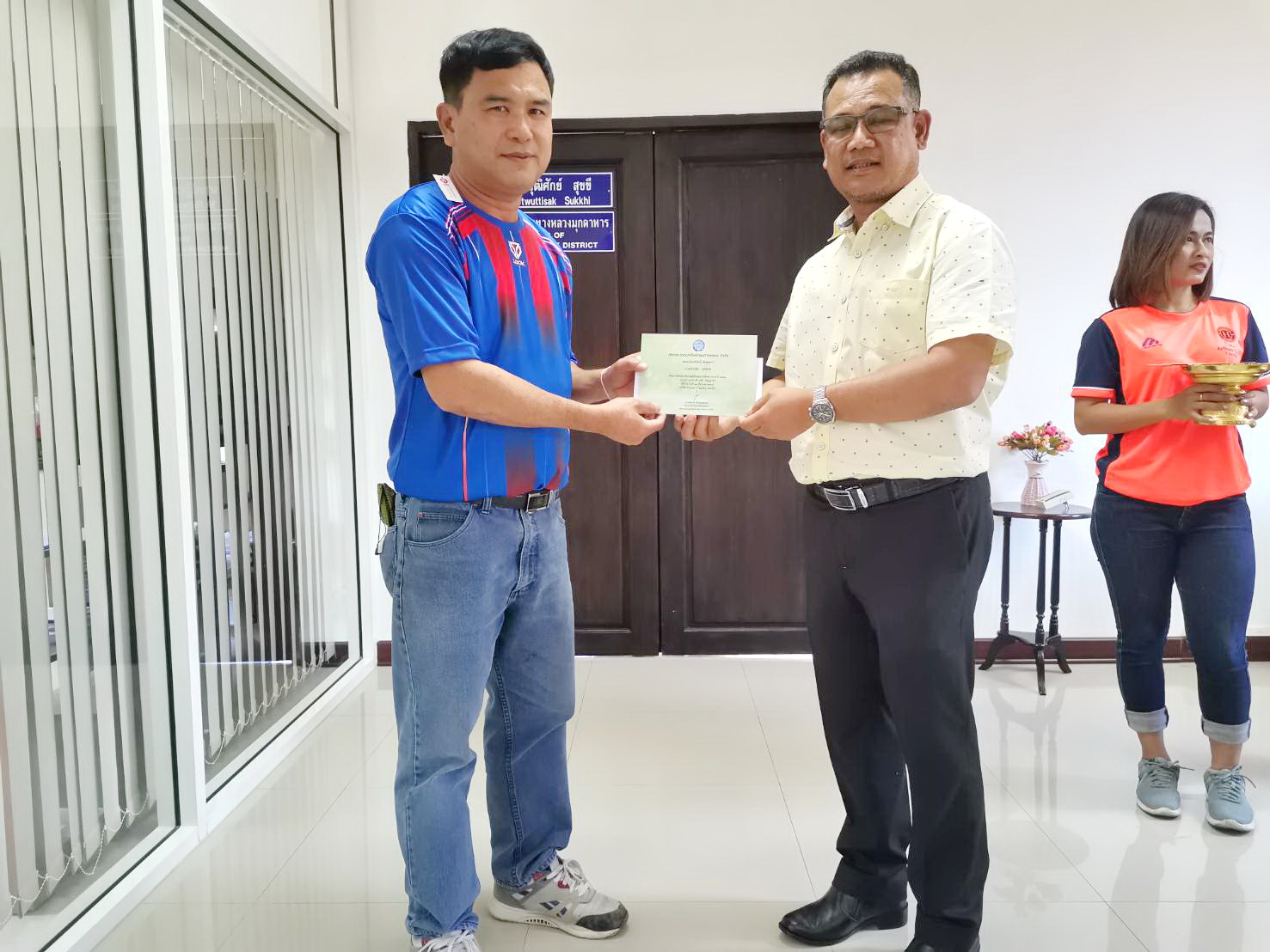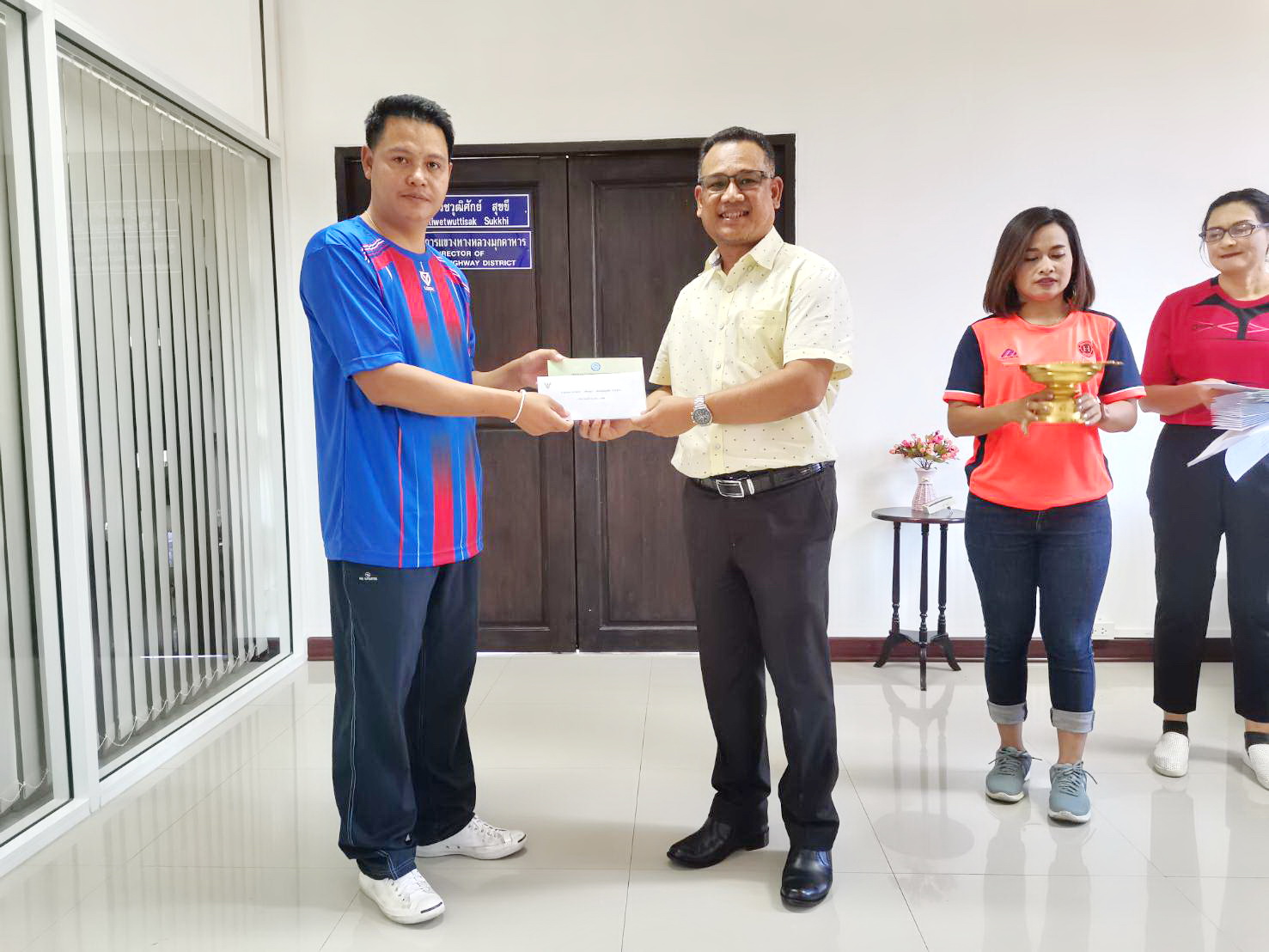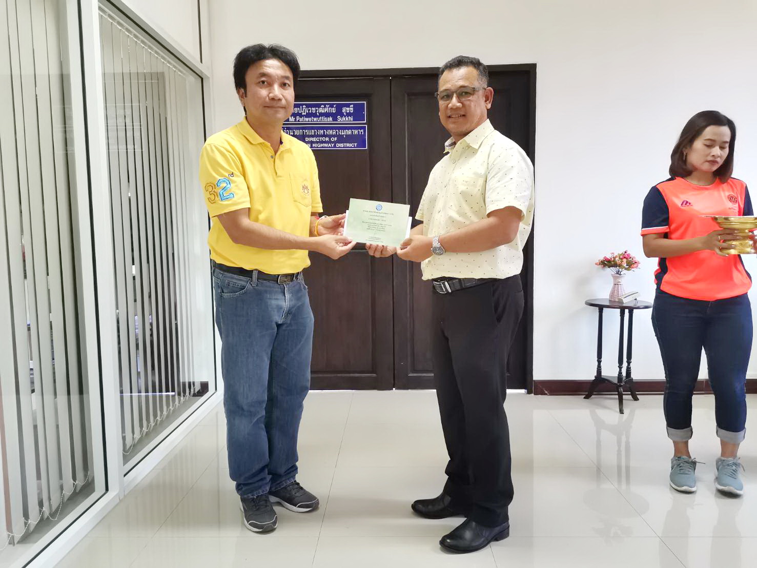 วันพฤหัสบดี ที่ 9 มกราคม 2563 นายปฏิเวชวุฒิศักย์ สุขขี ผู้อำนวยการแขวงทางหลวงมุกดาหาร มอบเงินทุนส่งเสริมการศึกษาบุตรสมาชิกสหกรณ์ออมทรัพย์ กรมทางหลวง ประเภททุนเรียนดี ประจำปี 2562 ณ แขวงทางหลวงมุกดาหาร