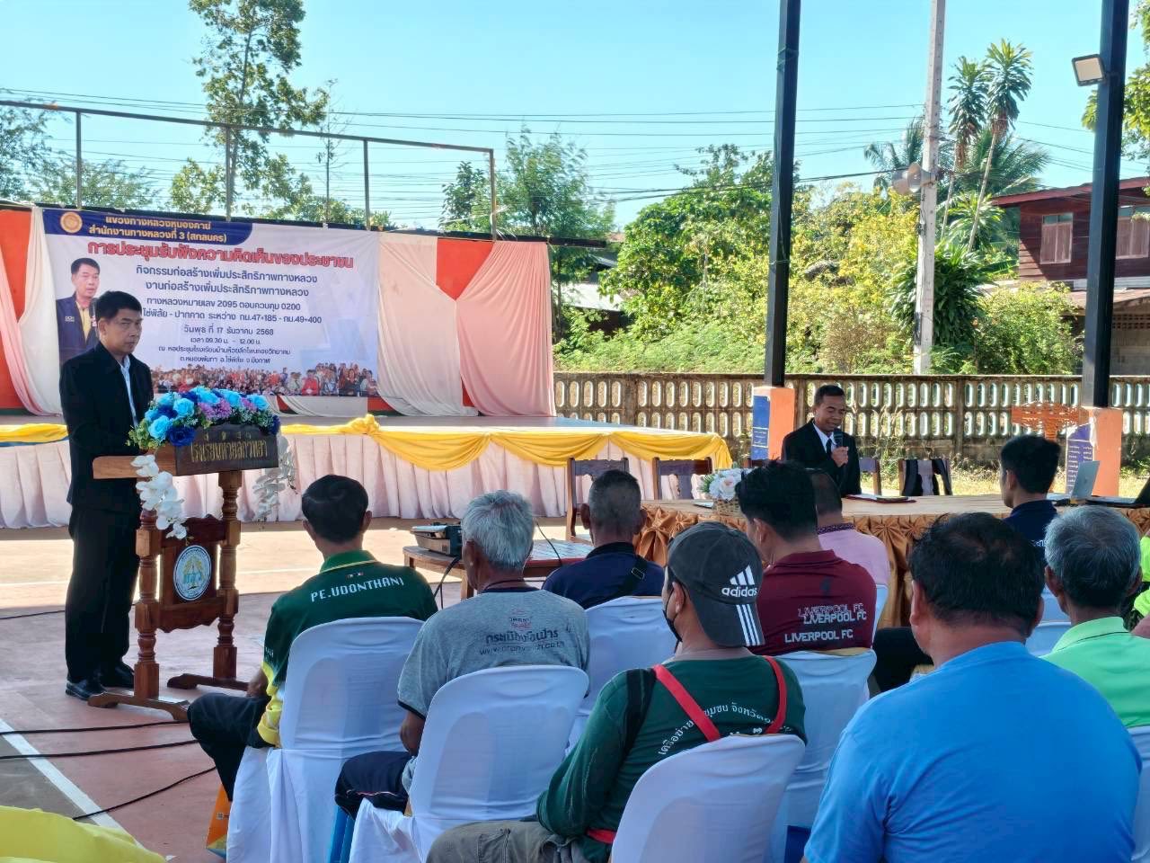 3 09/04/2569 วันที่ 18 ธันวาคม 2568 เวลา 08.30 น. ณ หอประชุมโรงเรียนบ้านนาดีพิทยาคม อำเภอเฝ้าไร่ จังหวัดหนองคาย นายมนูญ ชูตรี ผู้อำนวยการแขวงทางหลวงหนองคาย กำหนดจัดประชุมโครงการการมีส่วนร่วมของประชาชนประจำปีงบประมาณ 2569 โครงการก่อสร้างบริเวณ ทางหลวงหมายเลข 2267ตอน โพนพิสัย - โนนต้อง ระหว่าง กม. 34+ 820 - กม. 36+345 เพื่อให้เป็นไปตามระเบียบสำนักนายกรัฐมนตรี พ.ศ.2548 ว่าด้วยการรับฟังความคิดเห็นของประชาชน