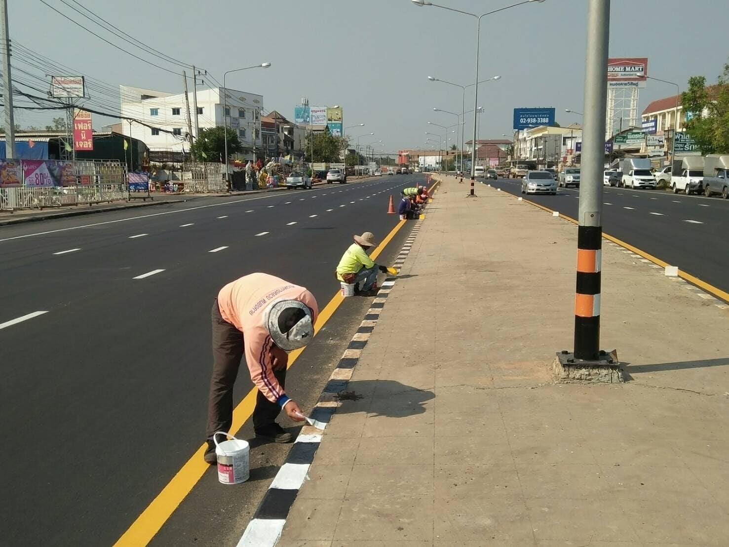 ดำเนินการ ทาสีขาวดำเกาะกลางถนน