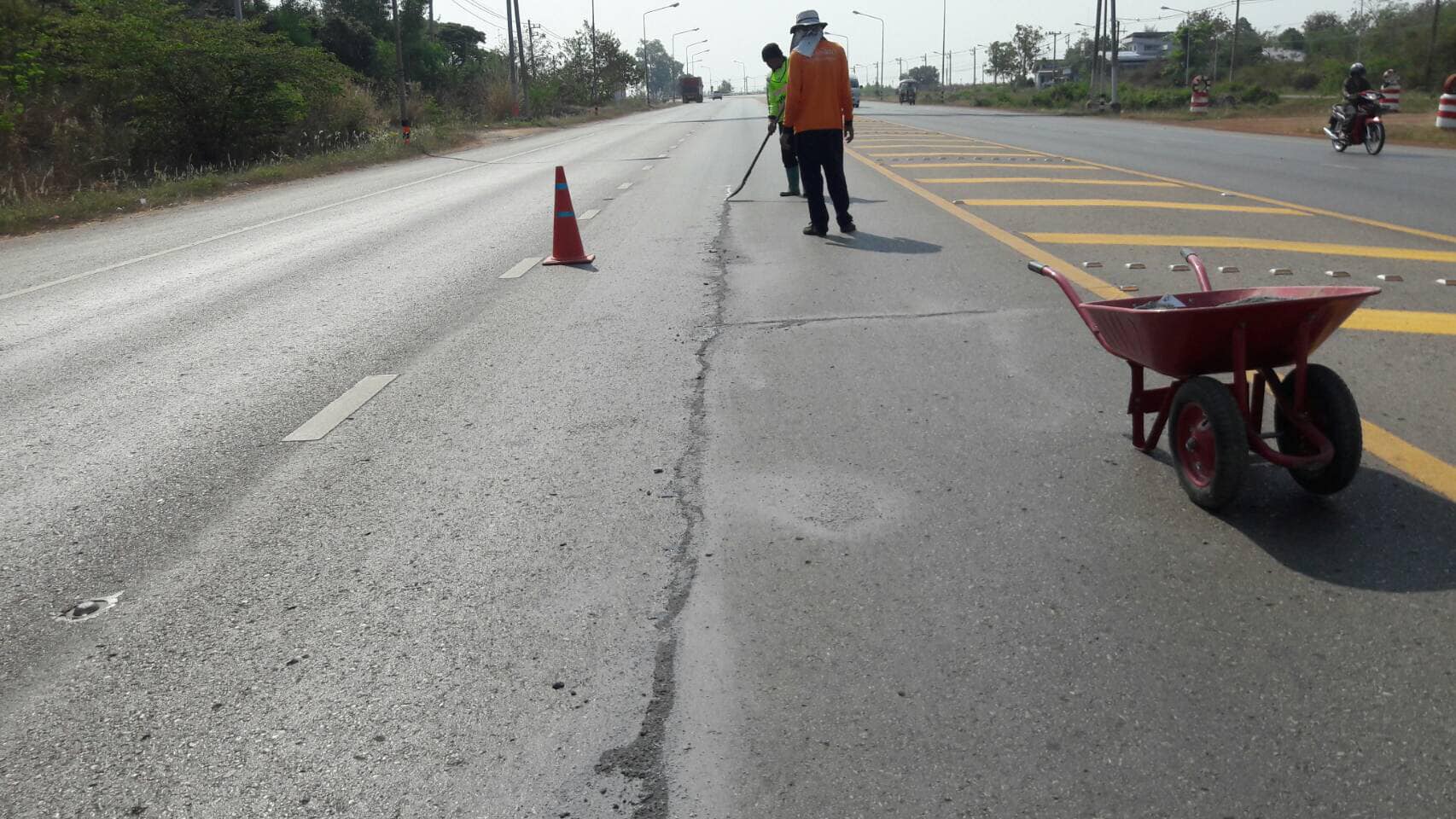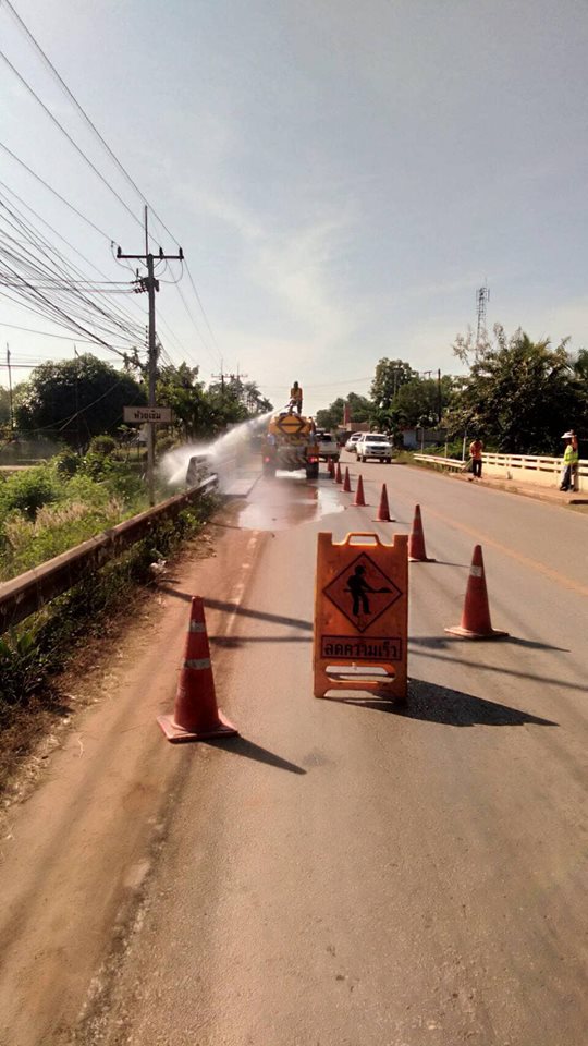 หมวดทางหลวงโพนพิสัย ดำเนินการ ล้างทำความสะอาดผิวทาง ทล.2230