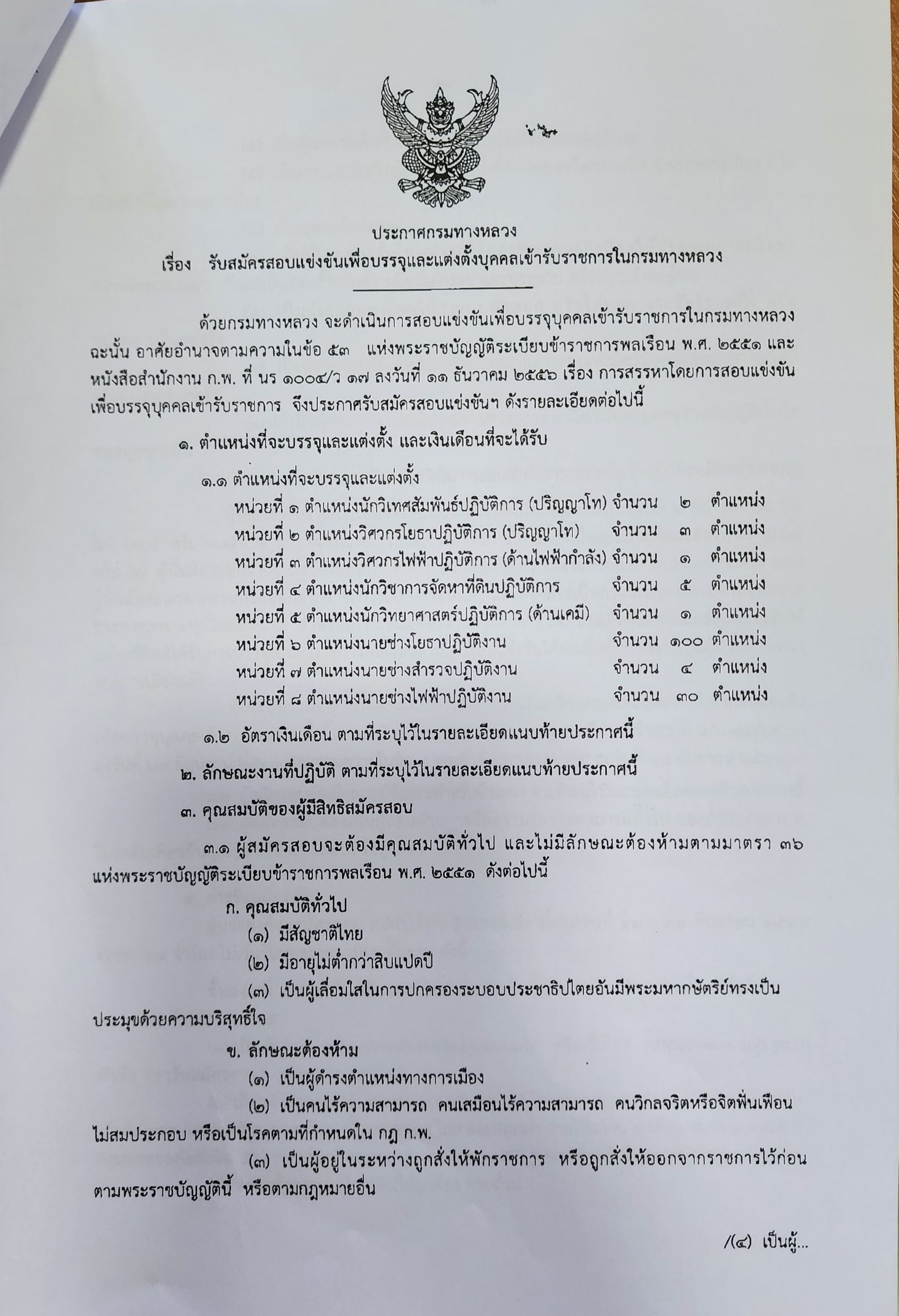 รับสมัครสอบแข่งขันเพื่อบรรจุและแต่งตั้งบุคคลเข้ารับราชการในกรมทางหลวง