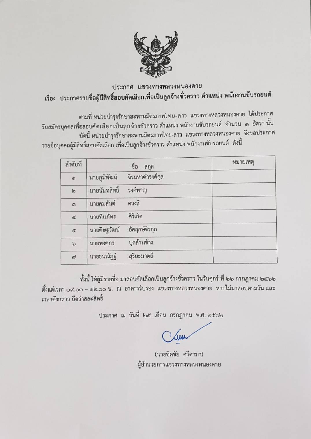 ข้อมูลประกาศรับสมัครพนักงานราชการ : ประกาศรายชื่อผู้มีสิทธิสอบคัดเลือกเพื่อเป็นลูกจ้างชั่วคราว ตำแหน่ง พนักงานขับรถยนต์