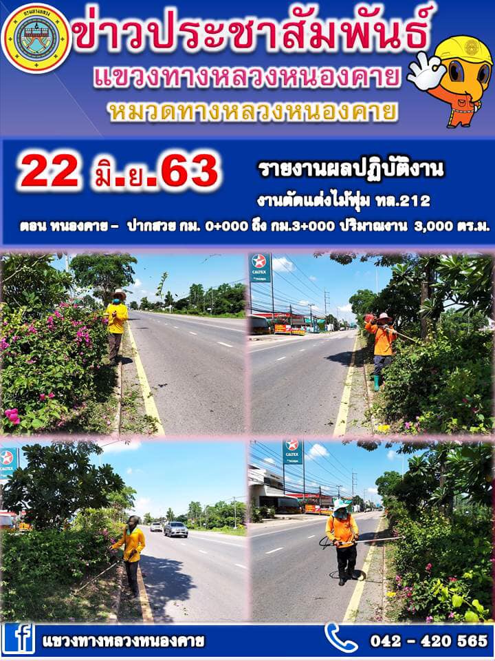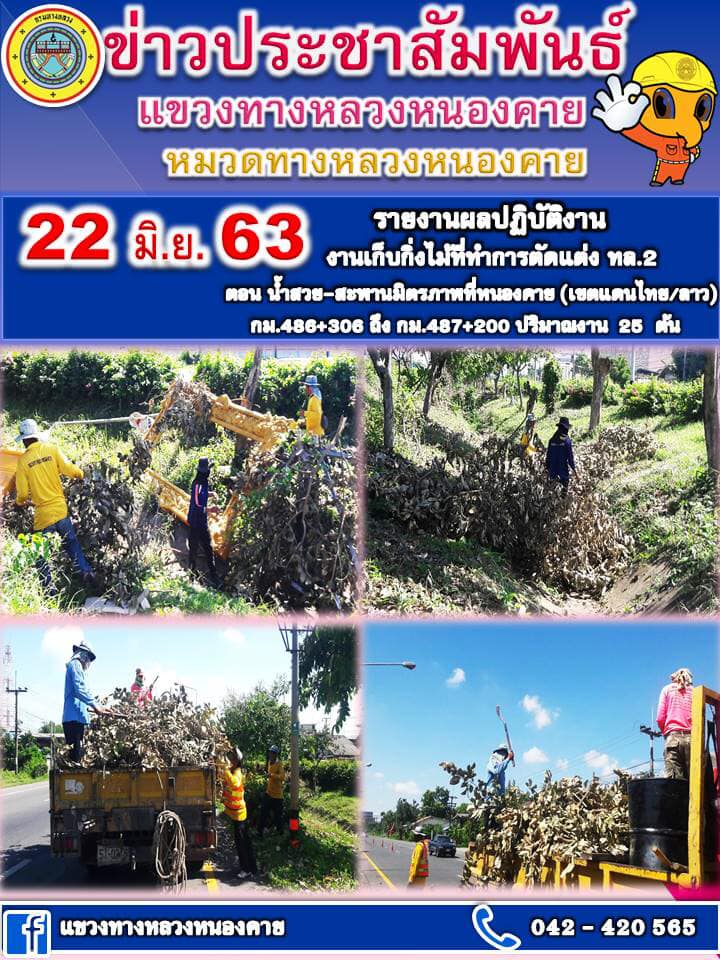 รายงานผลการปฏิบัติงาน แขวงทางหลวงหนองคาย วันที่ 22 มิถุนายน 2563 โดย หมวดทางหลวงหนองคาย งานตัดแต่งไม้พุ่ม, งานเก็บกิ่งไม้ที่ทำการตัดแต่ง , งานตัดหญ้าบริเวณทางจักรยาน ทางหลวงหมายเลข 2 #สำนักงานทางหลวงที่3สกลนคร #กรมทางหลวง #แขวงทางหลวงหนองคาย