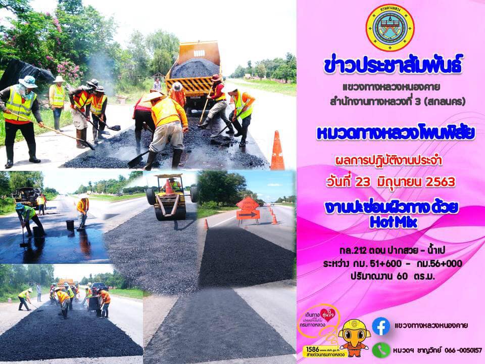 รายงานผลการปฏิบัติงาน แขวงทางหลวงหนองคาย วันที่ 23 มิถุนายน 2563 โดย หมวดทางหลวงโพนพิสัยงานซ่อมศาลาที่พักผู้โดยสาร ,งานปะซ่อมผิวทางด้วย Hot Mix ทางหลวงหมายเลข 212#สำนักงานทางหลวงที่3สกลนคร #กรมทางหลวง #แขวงทางหลวงหนองคาย