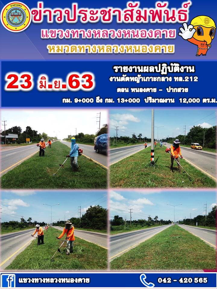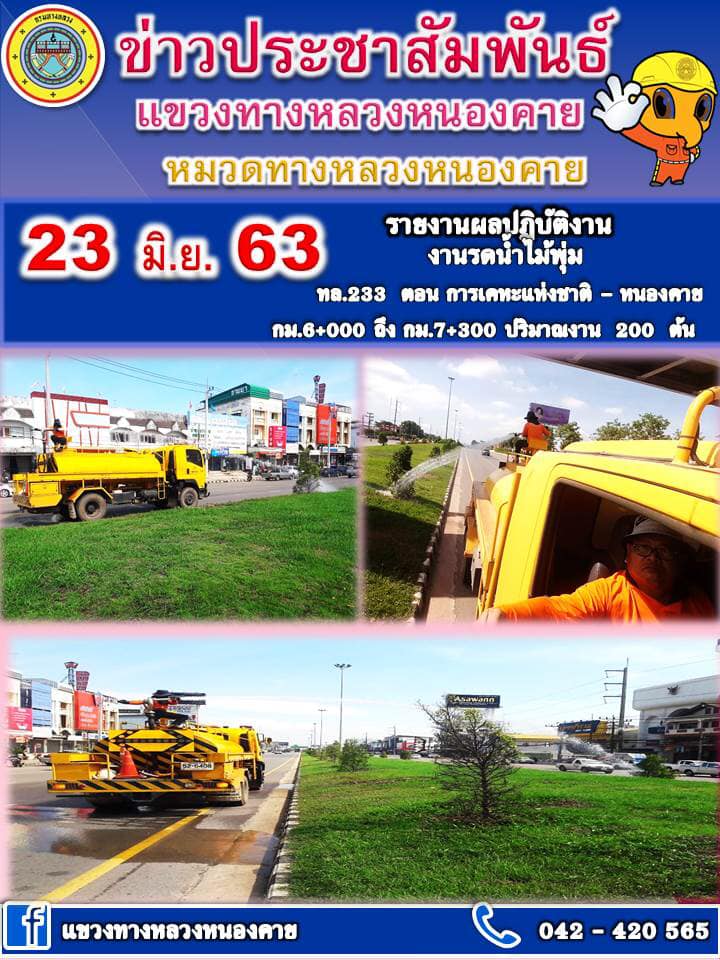 รายงานผลการปฏิบัติงาน แขวงทางหลวงหนองคาย วันที่ 23 มิถุนายน 2563 โดย หมวดทางหลวงหนองคาย งานรดน้ำไม้พุ่ม ทางหลวงหมายเลข 233, งานตัดหญ้าเกาะกลาง ,งานทำความสะอาดเกาะกลาง ทางหลวงหมายเลข 212#สำนักงานทางหลวงที่3สกลนคร #กรมทางหลวง #แขวงทางหลวงหนองคาย