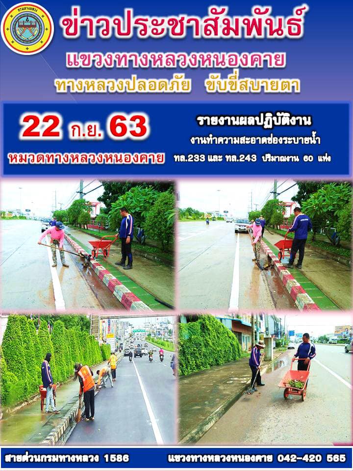 รายงานผลการปฏิบัติงาน แขวงทางหลวงหนองคายวันที่ 22 กันยายน 2563โดย หมวดทางหลวงหนองคายงานตัดหญ้าไหล่ทาง ทางหลวงหมายเลข 2งานทำความสะอาดช่องระบายน้ำ ทางหลวงหมายเลข 233,243#สำนักงานทางหลวงที่3สกลนคร #กรมทางหลวง #แขวงทางหลวงหนองคาย