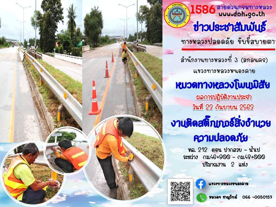 รายงานผลการปฏิบัติงาน แขวงทางหลวงหนองคายวันที่ 23 กันยายน 2563โดย หมวดทางหลวงโพนพิสัยงานตัดหญ้าไหล่ทาง ทางหลวงหมายเลข 212งานติดสติกเกอร์ราวกันอันตราย ทางหลวงหมายเลข 212#สำนักงานทางหลวงที่3สกลนคร #กรมทางหลวง #แขวงทางหลวงหนองคาย