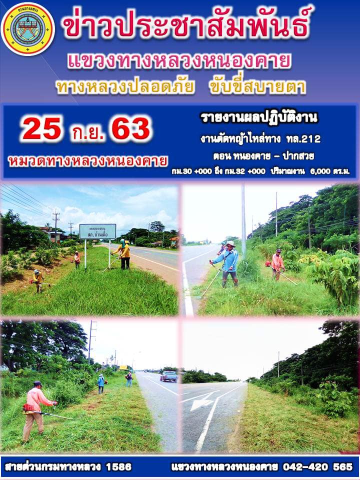 รายงานผลการปฏิบัติงาน แขวงทางหลวงหนองคายวันที่ 25 กันยายน 2563โดย หมวดทางหลวงหนองคายงานตัดหญ้าไหล่ทาง ทางหลวงหมายเลข 212 , 242 , 243งานปรับระดับผิวทาง ทางหลวงหมายเลข 212#สำนักงานทางหลวงที่3สกลนคร #กรมทางหลวง #แขวงทางหลวงหนองคาย