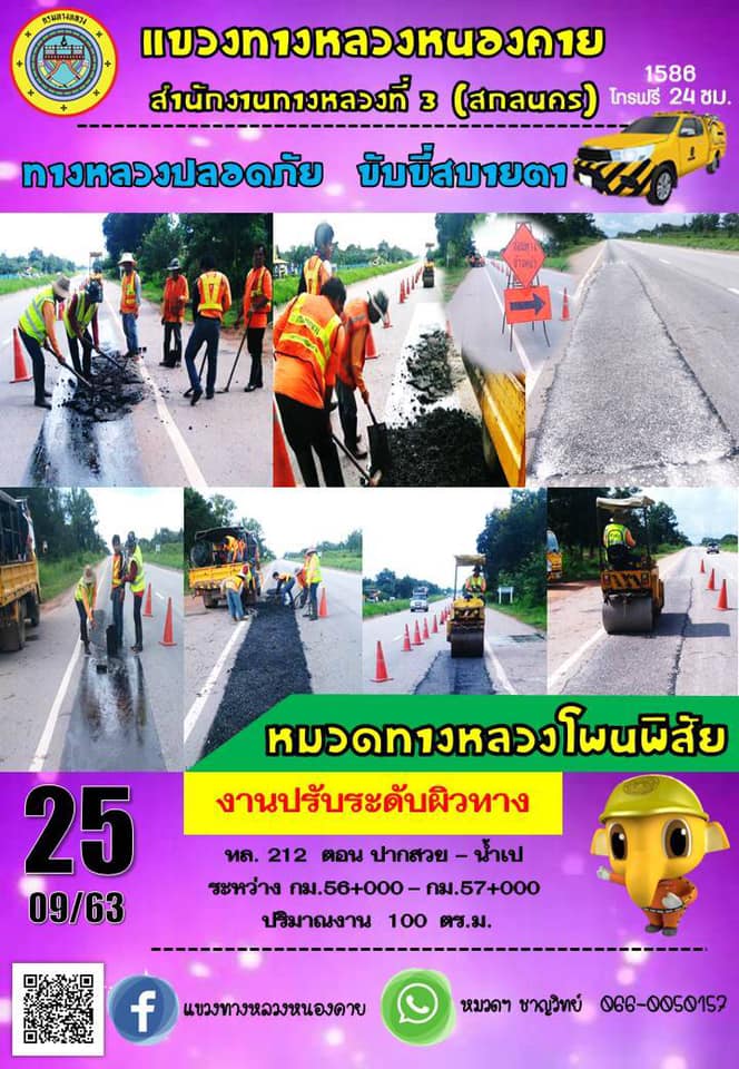 รายงานผลการปฏิบัติงาน แขวงทางหลวงหนองคายวันที่ 25 กันยายน 2563โดย หมวดทางหลวงโพนพิสัยงานปรับระดับผิวทาง ทางหลวงหมายเลข 212งานแจกแบบสอบถามประชาชนผู้ใช้เส้นทาง#สำนักงานทางหลวงที่3สกลนคร #กรมทางหลวง #แขวงทางหลวงหนองคาย