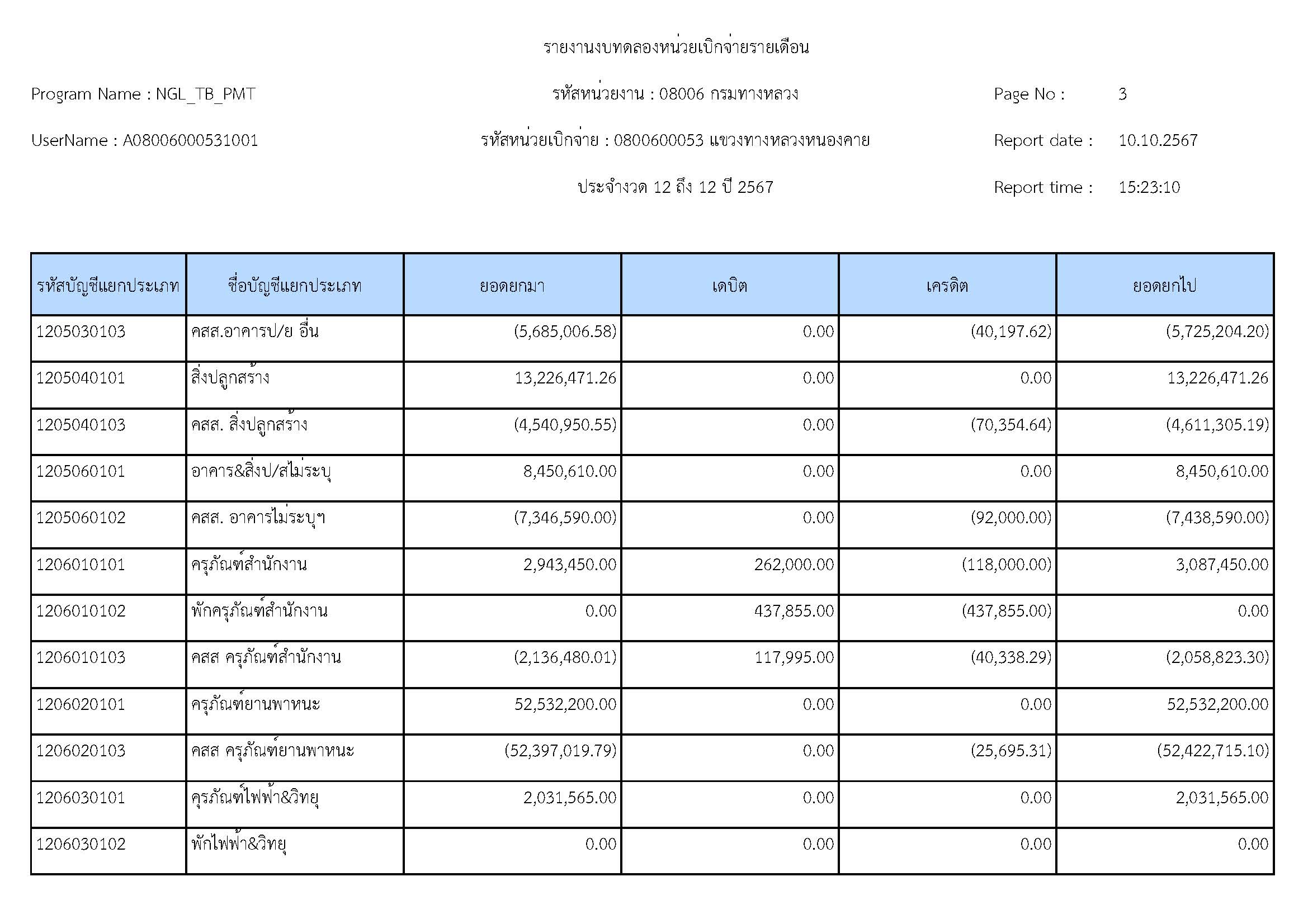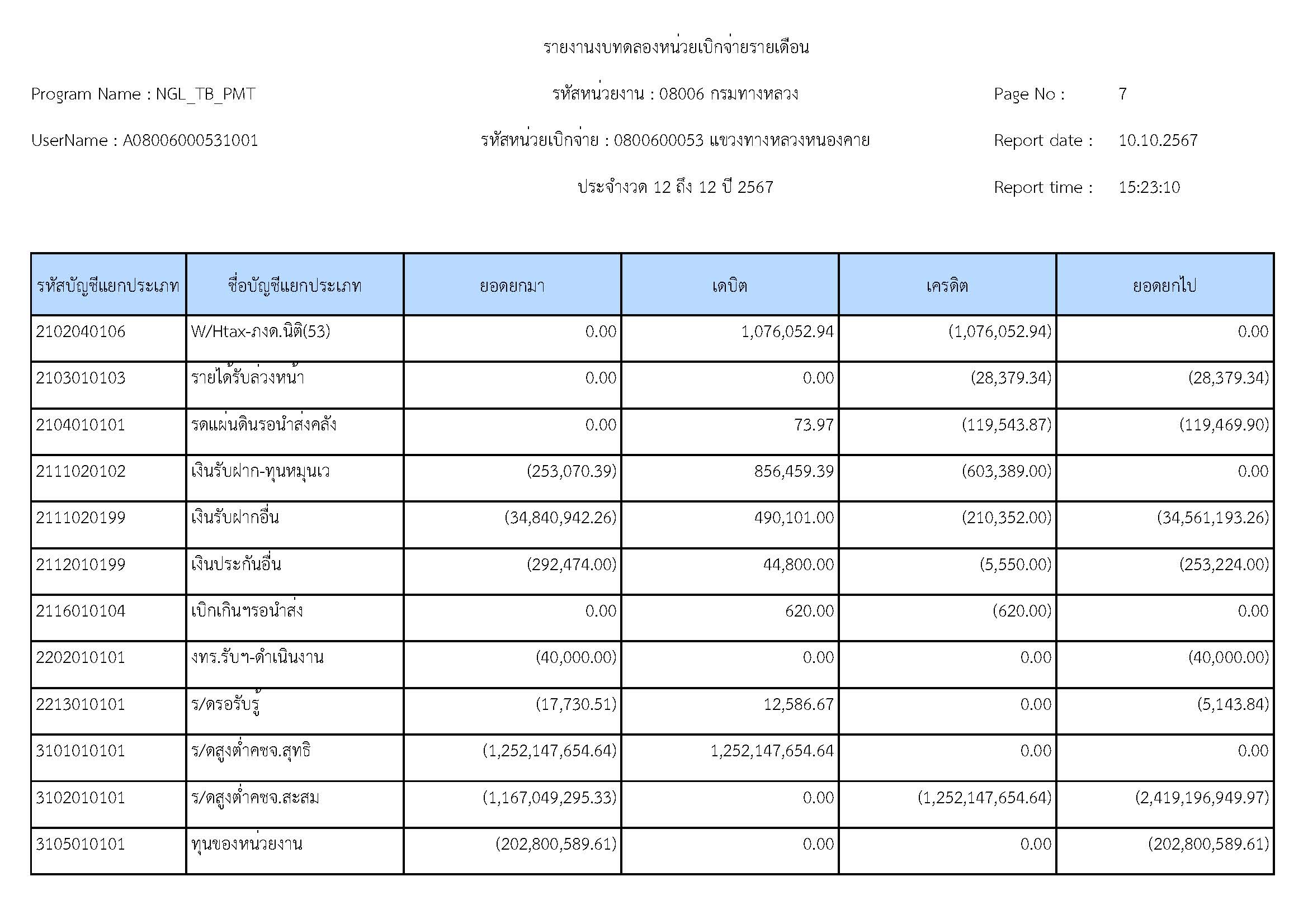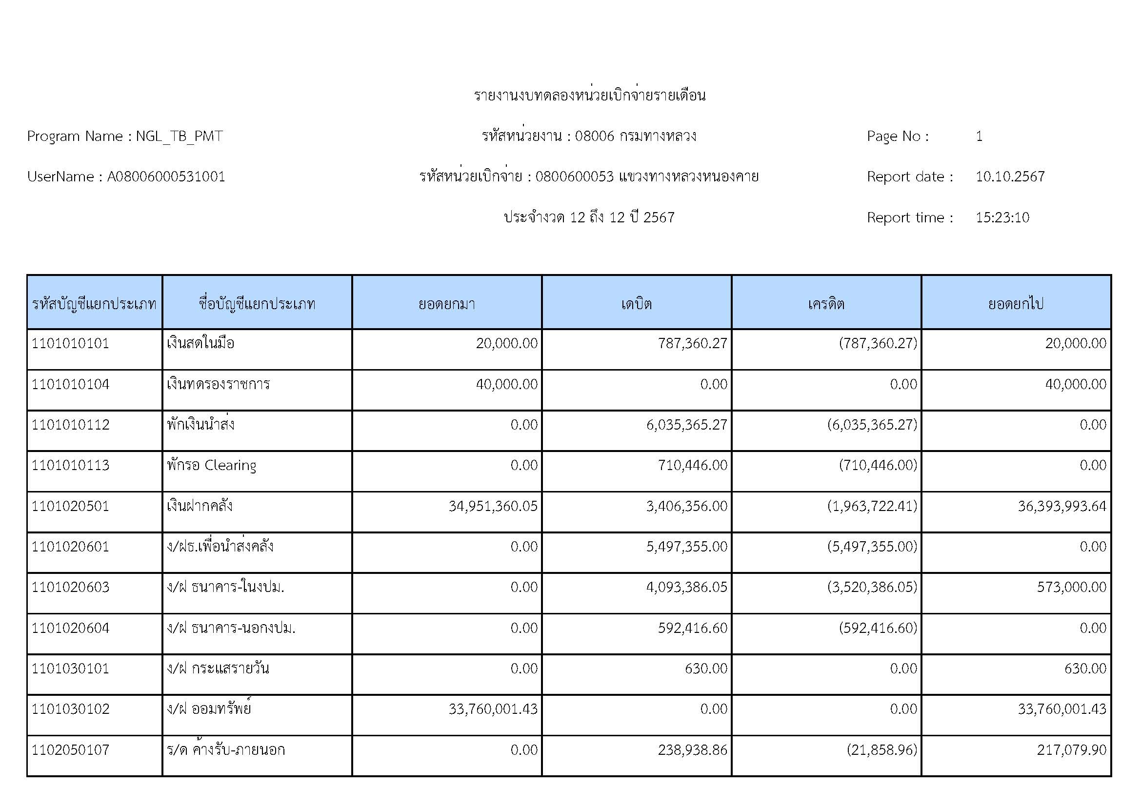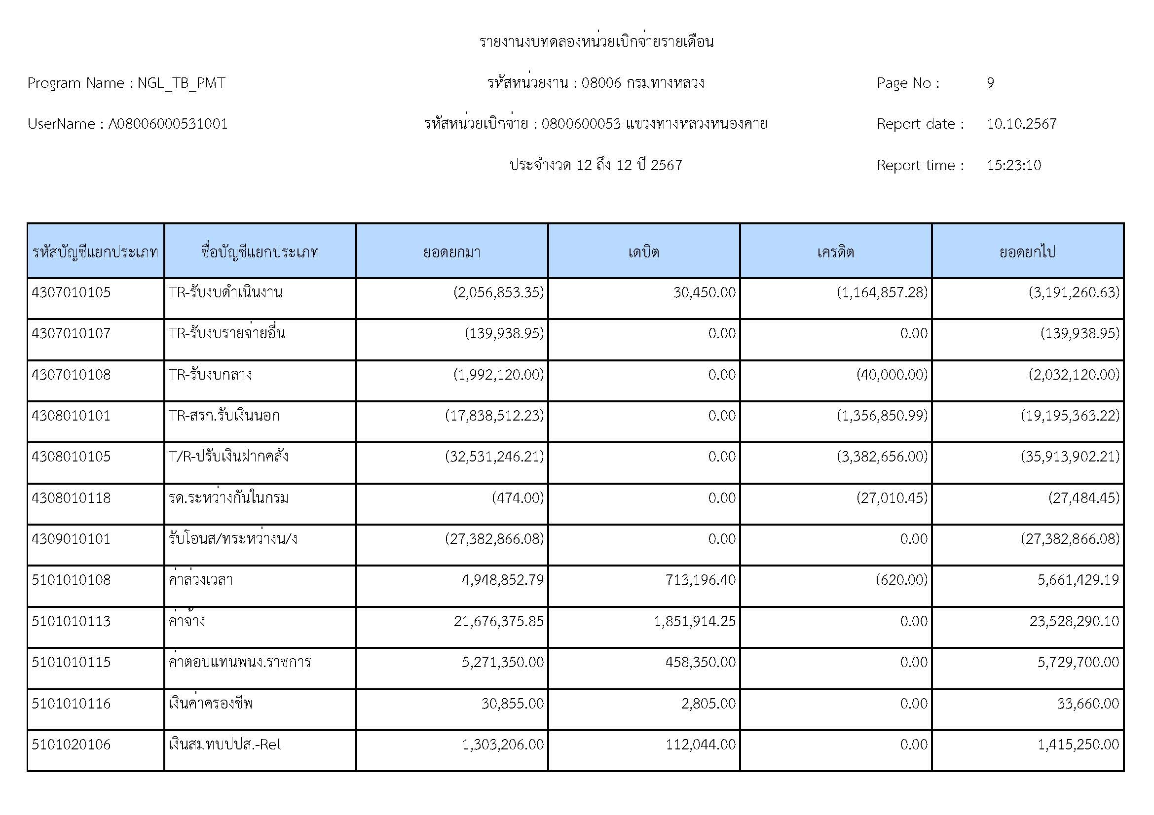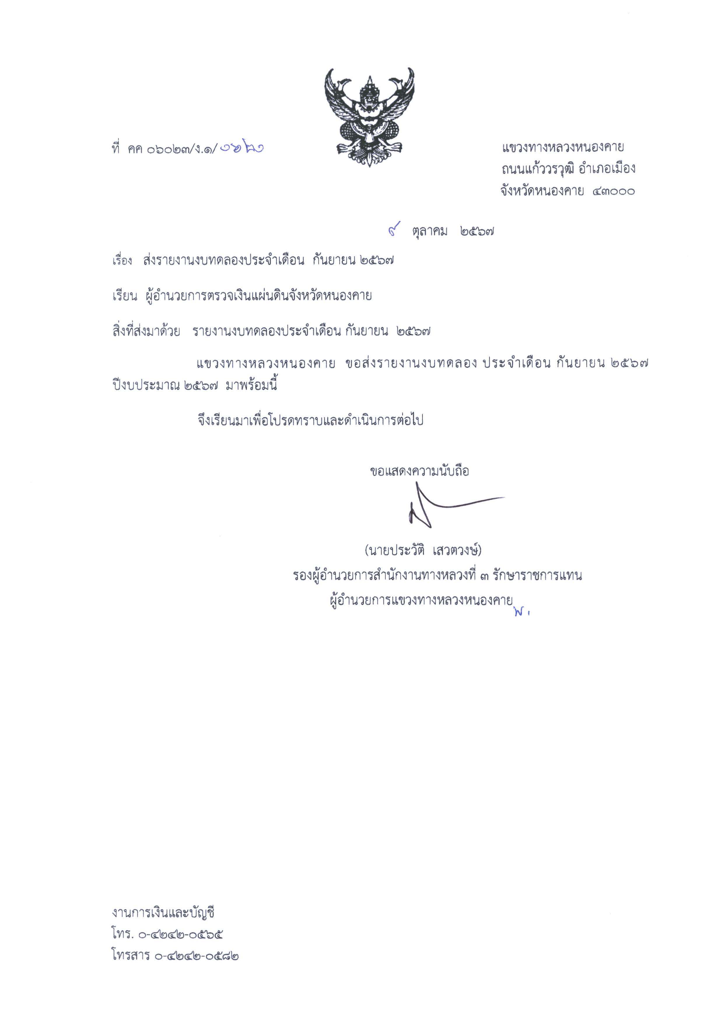 ส่งรายงานงบทดลองประจำเดือน กันยายน 2567