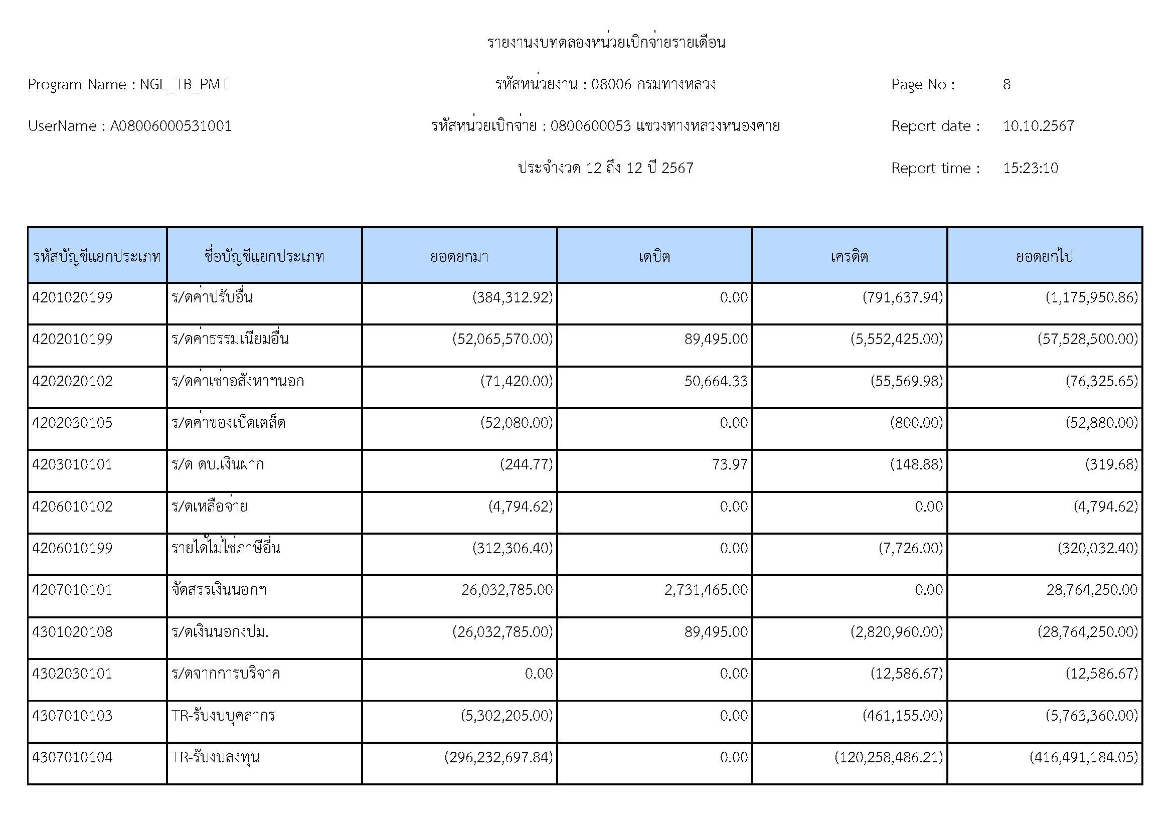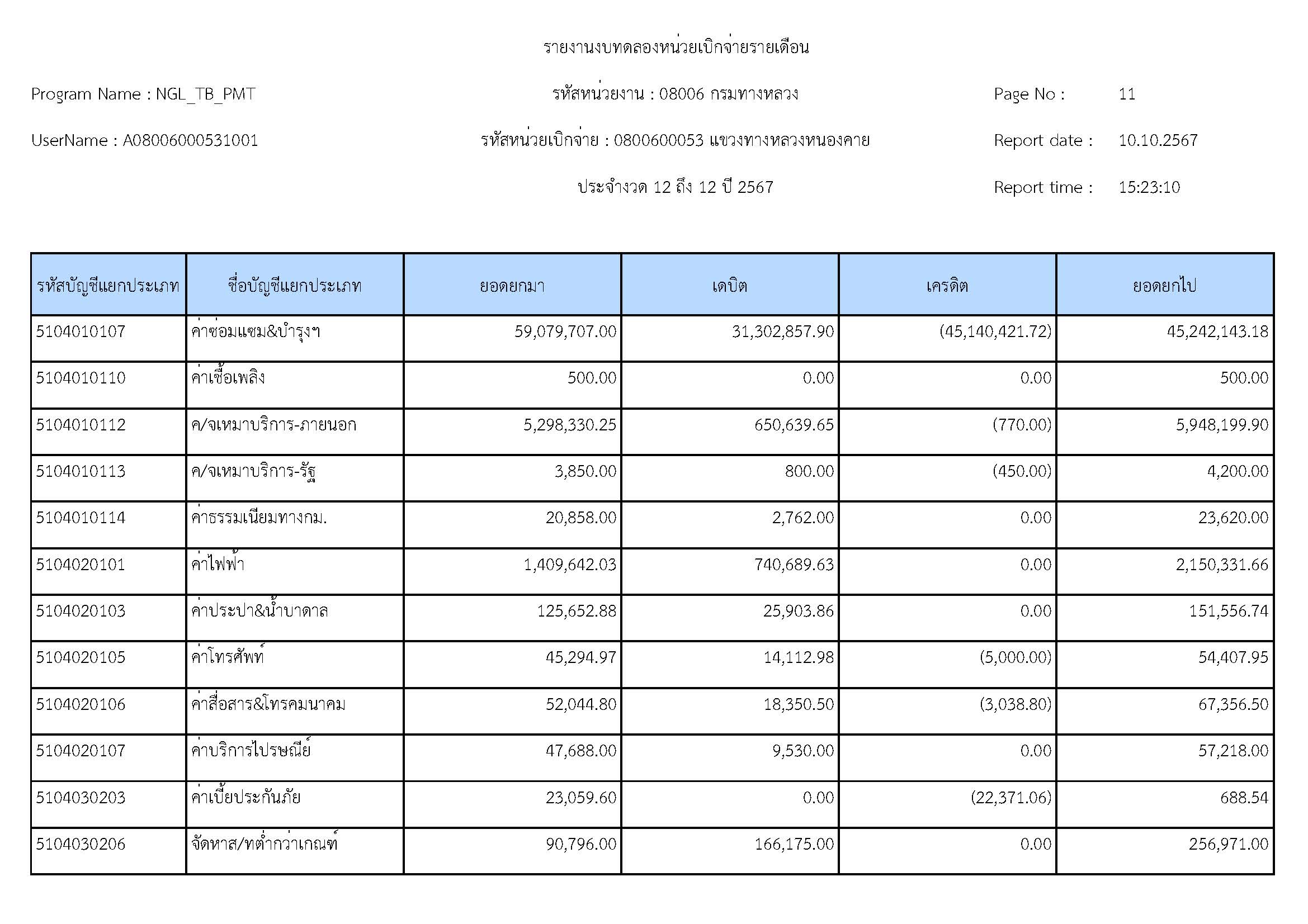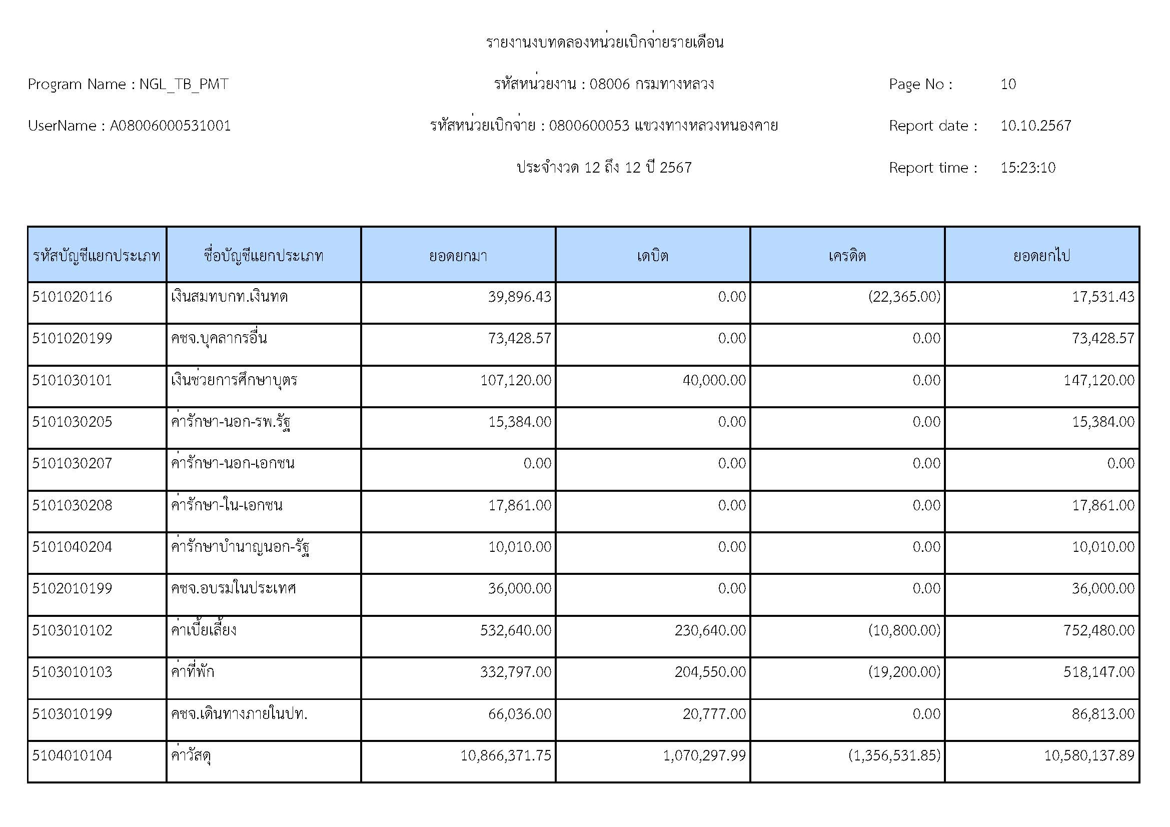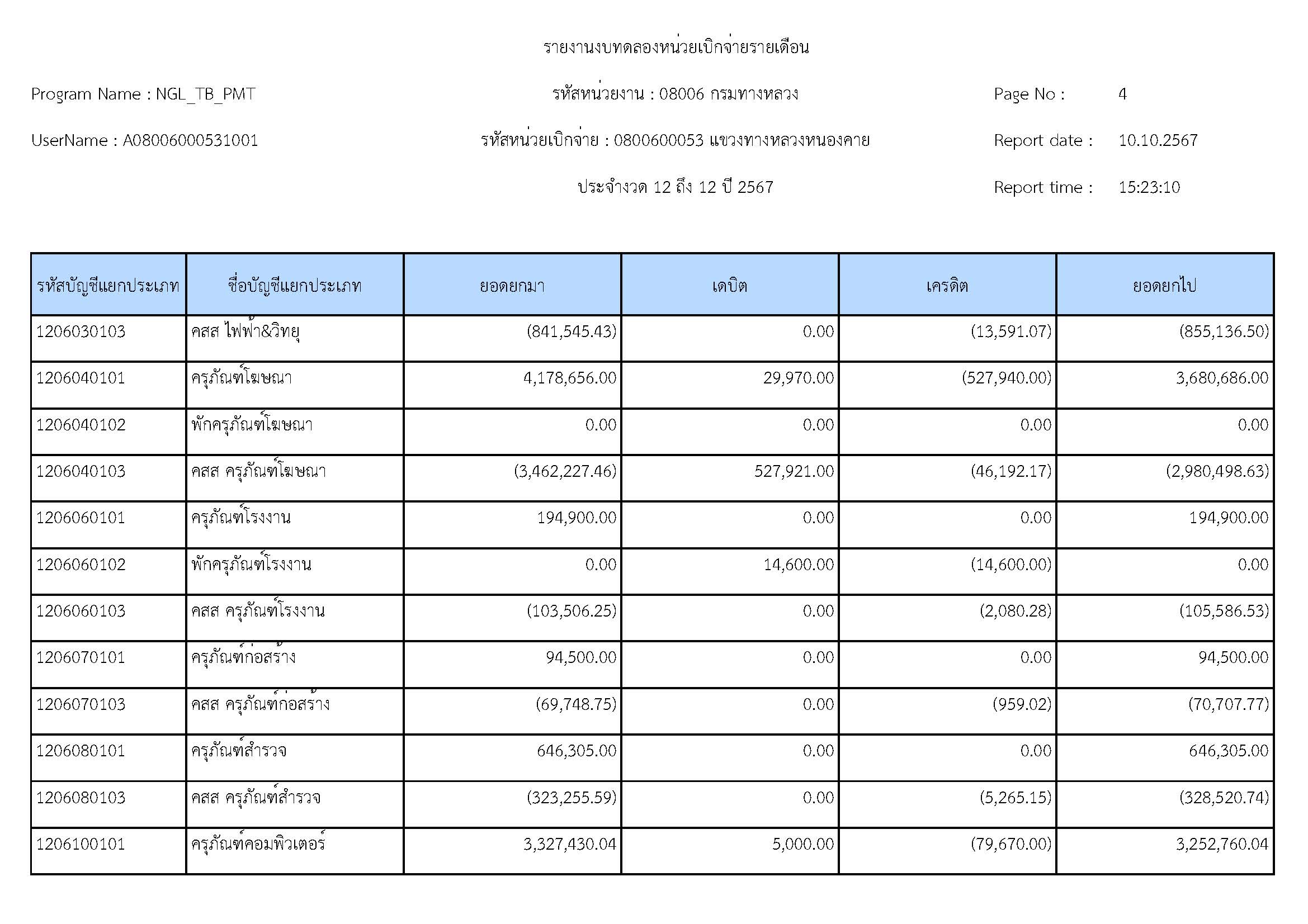 ส่งรายงานงบทดลองประจำเดือน กันยายน 2567