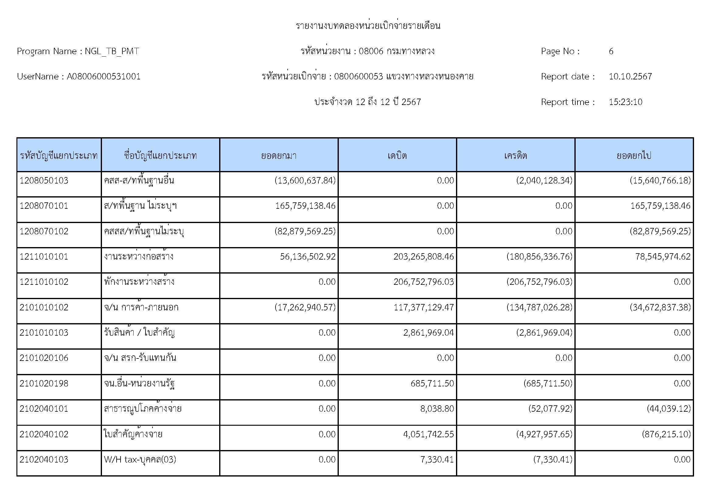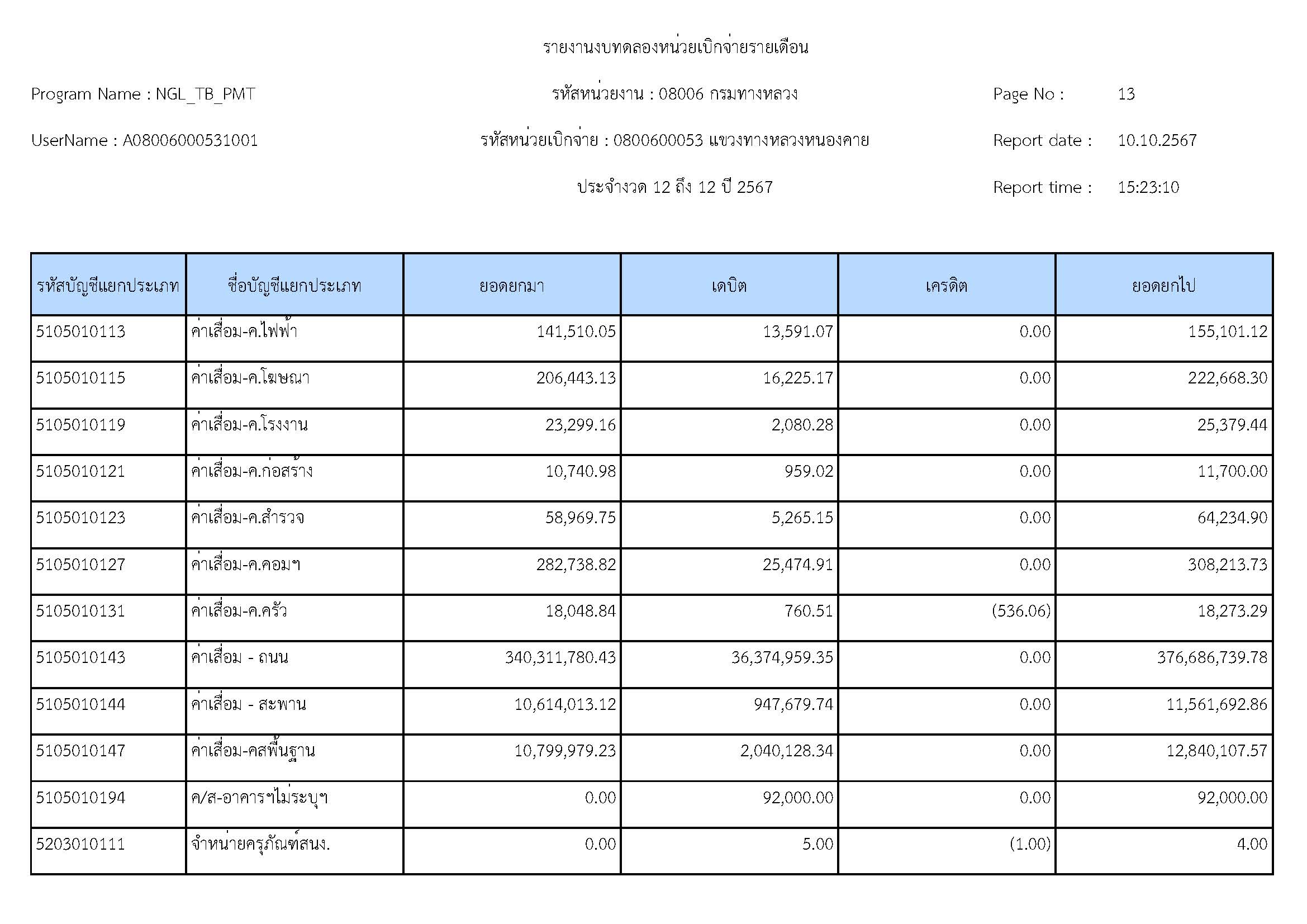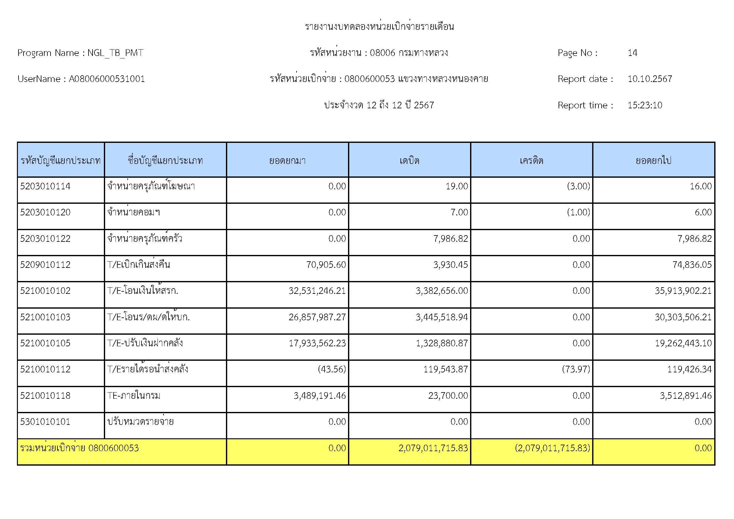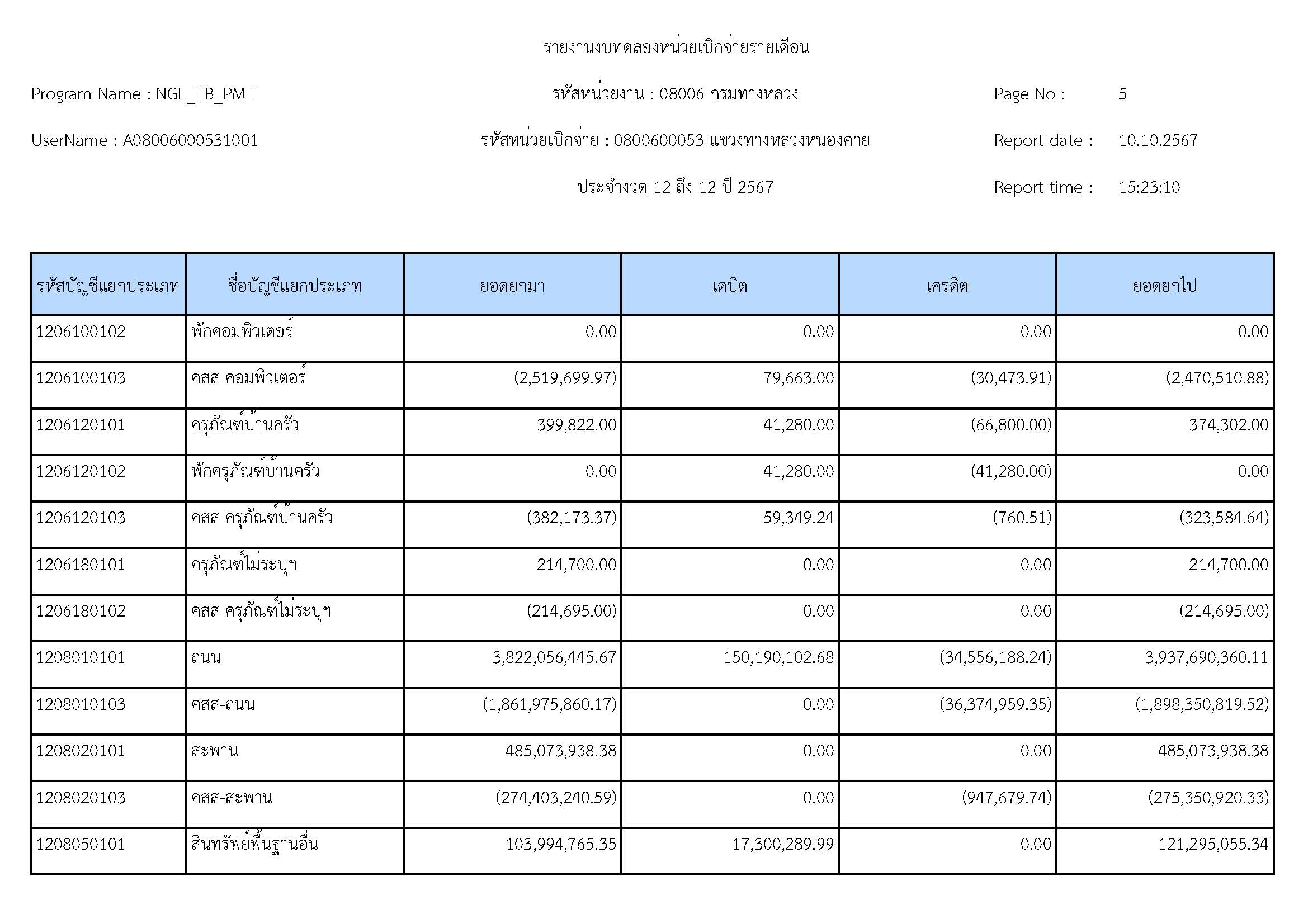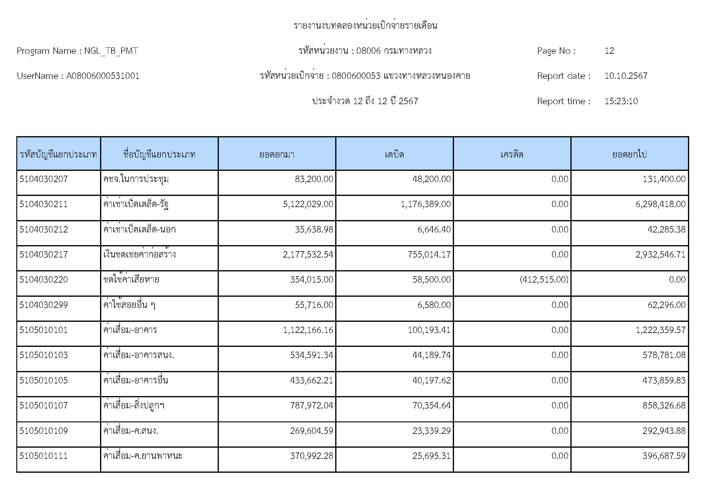 ส่งรายงานงบทดลองประจำเดือน กันยายน 2567