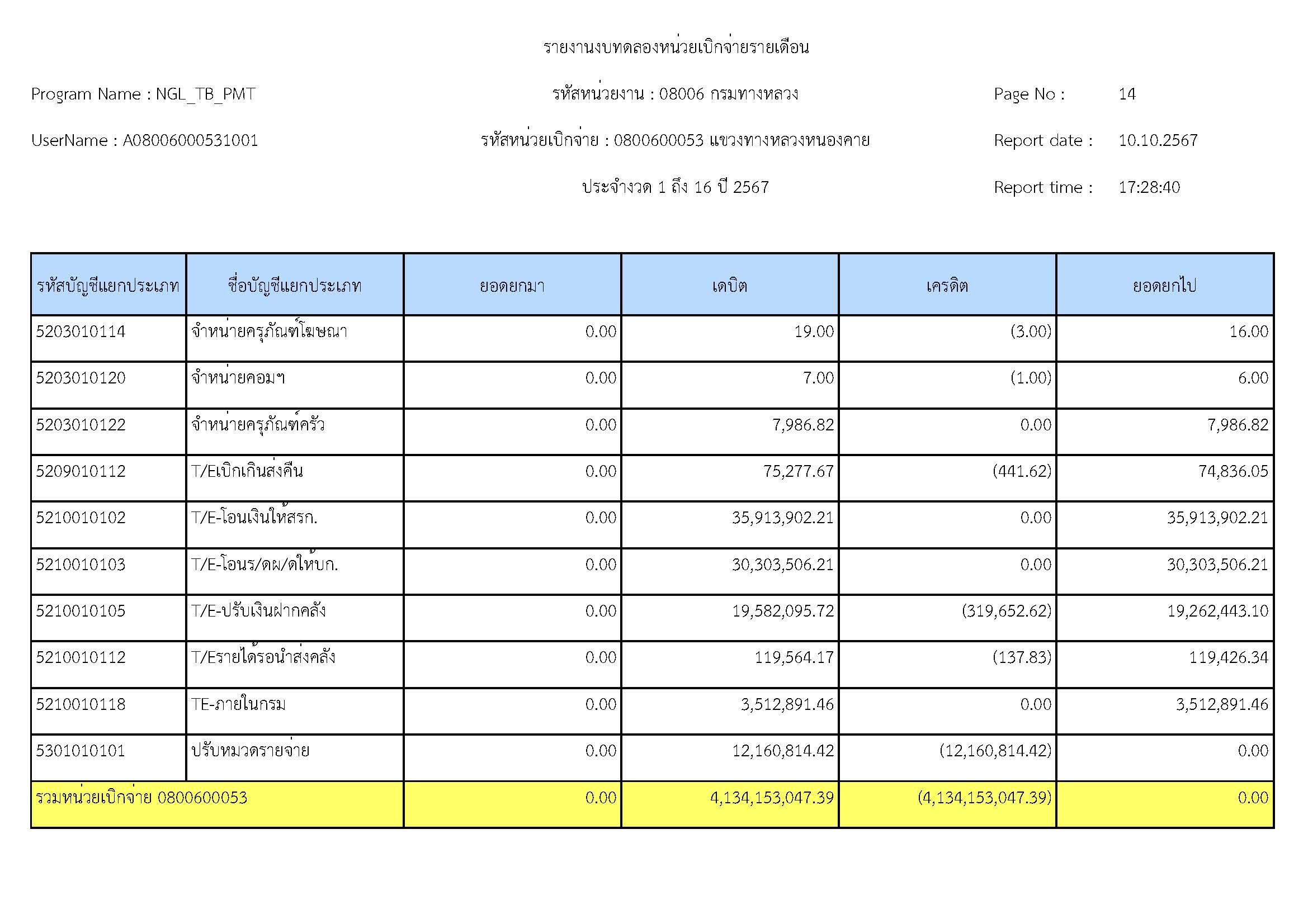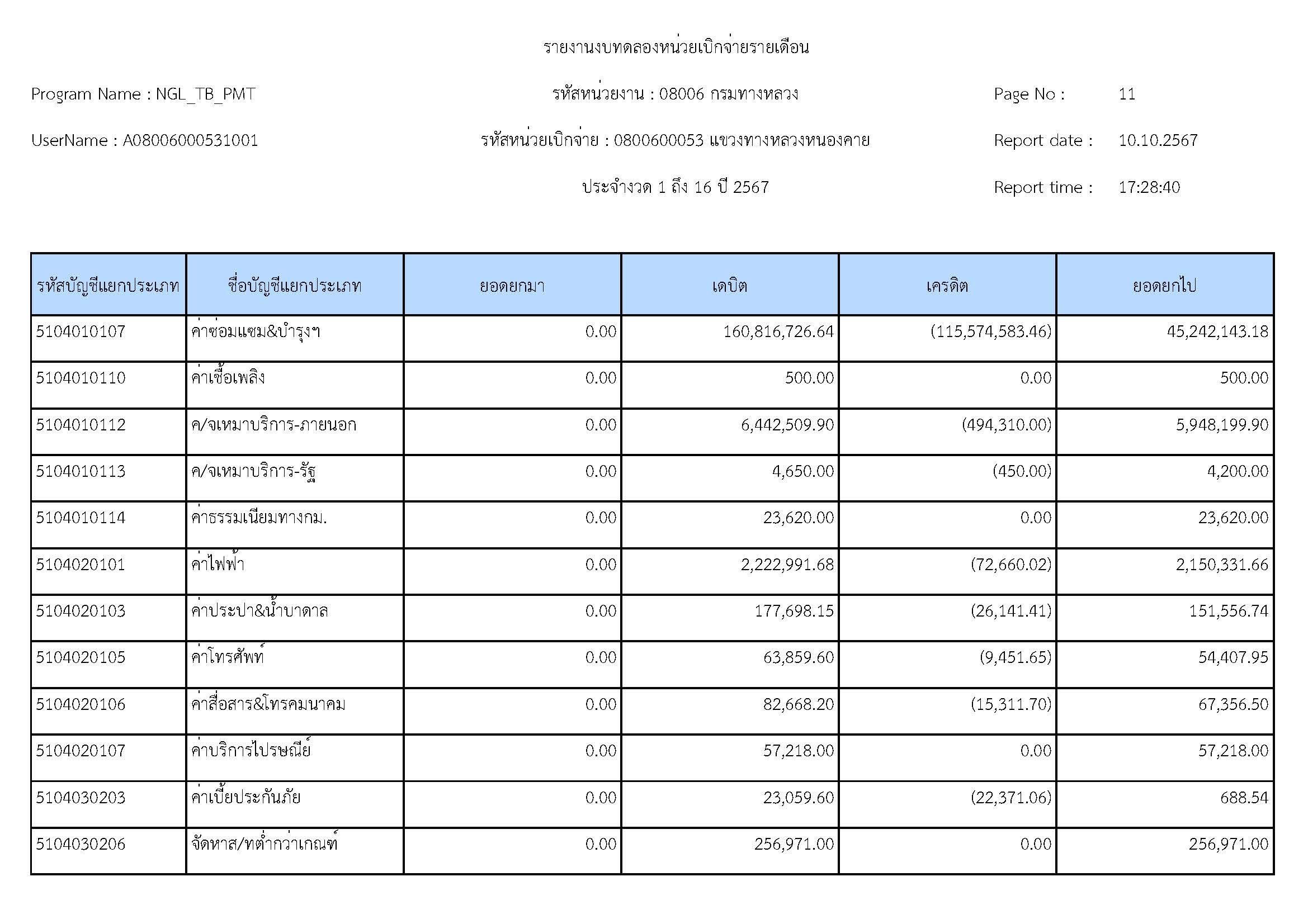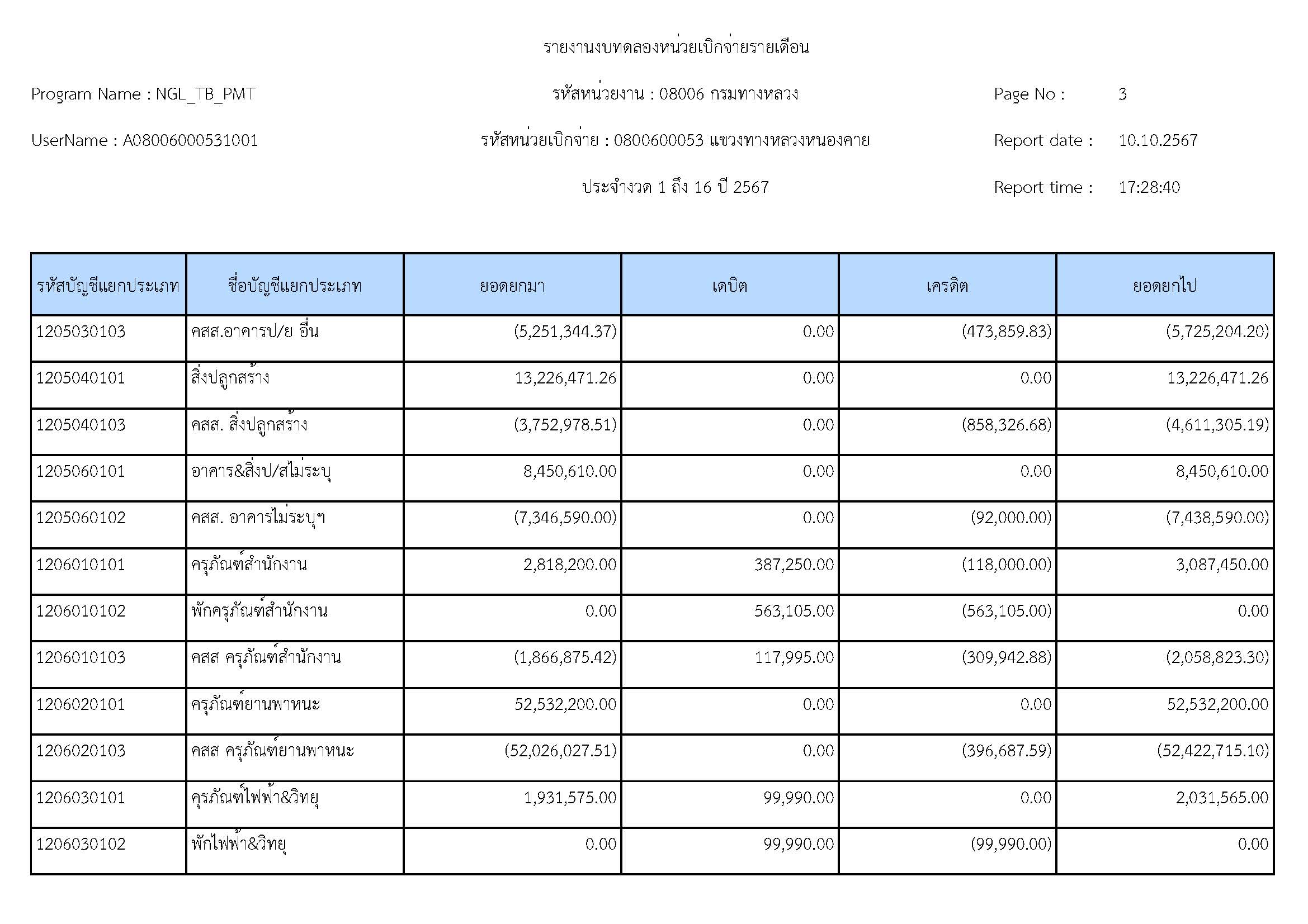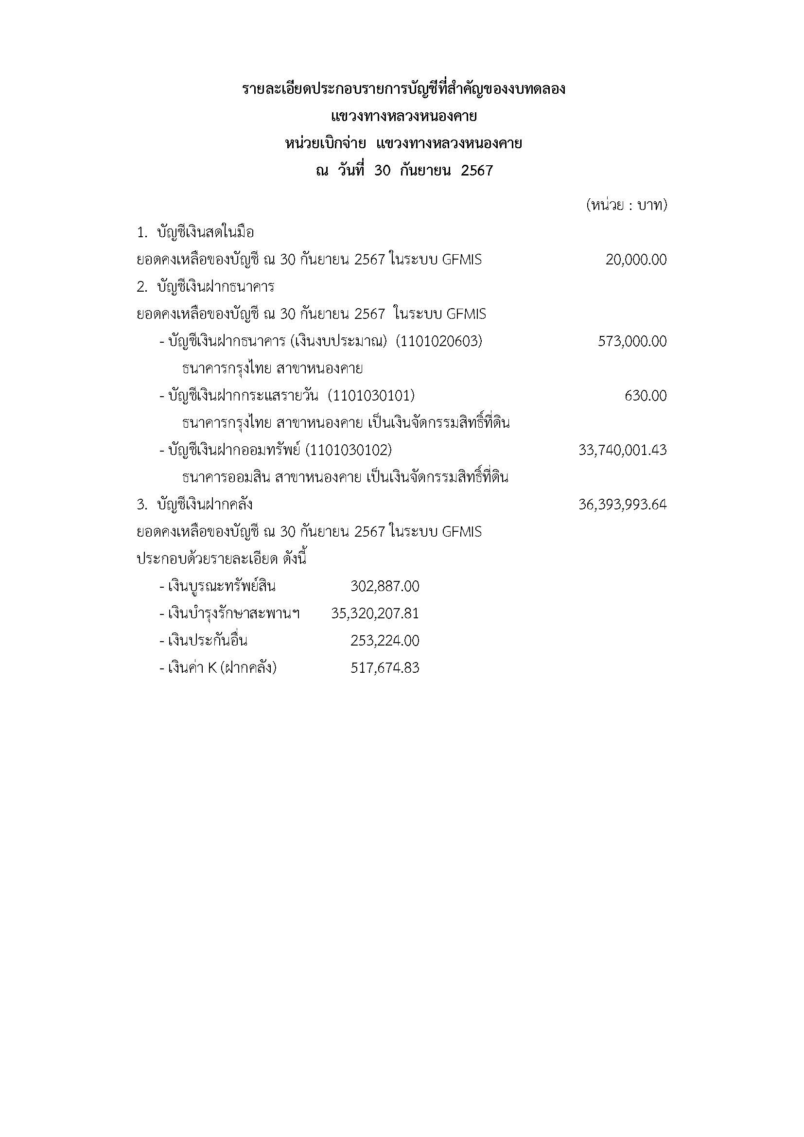 รายละเอียดประกอบงบทดลอง ประจำปีงบประมาณ 2567