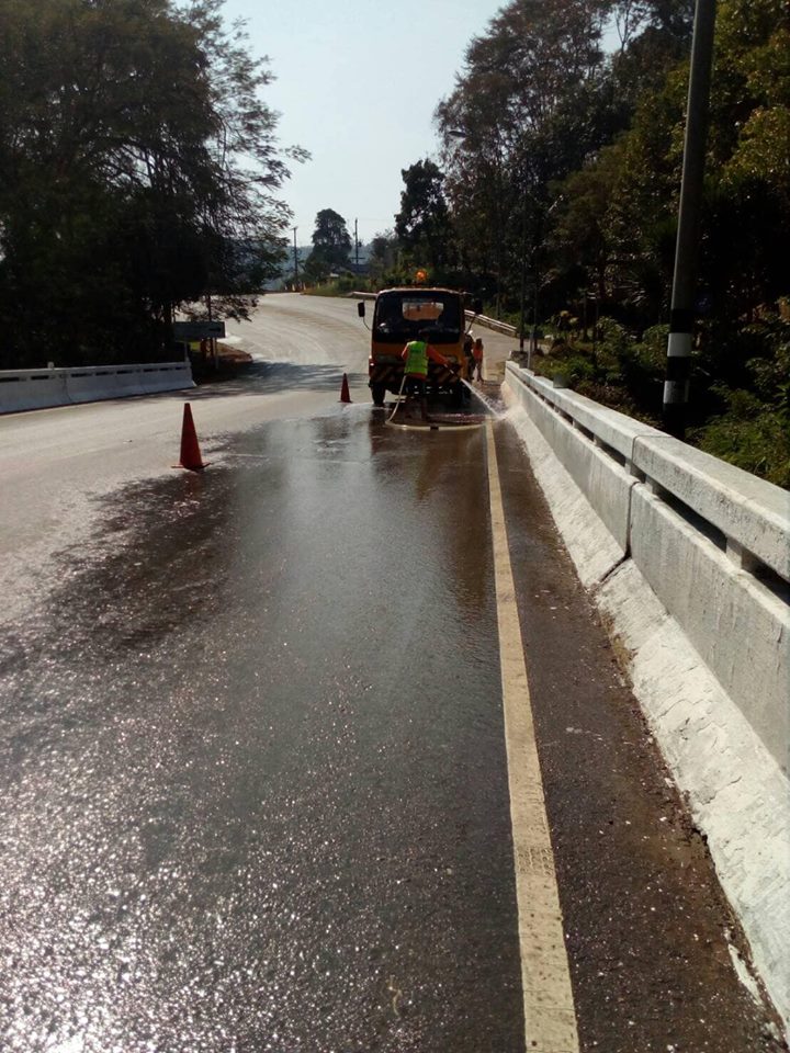 วันที่ 14 กุมภาพันธ์ 2562 หมวดทางหลวงสังคม ดำเนินการ ล้างทำความสะอาดผิวทาง ทล.211 กม.72+000 - กม.73+000 ปริมาณงาน 6,000 ตร.ม.