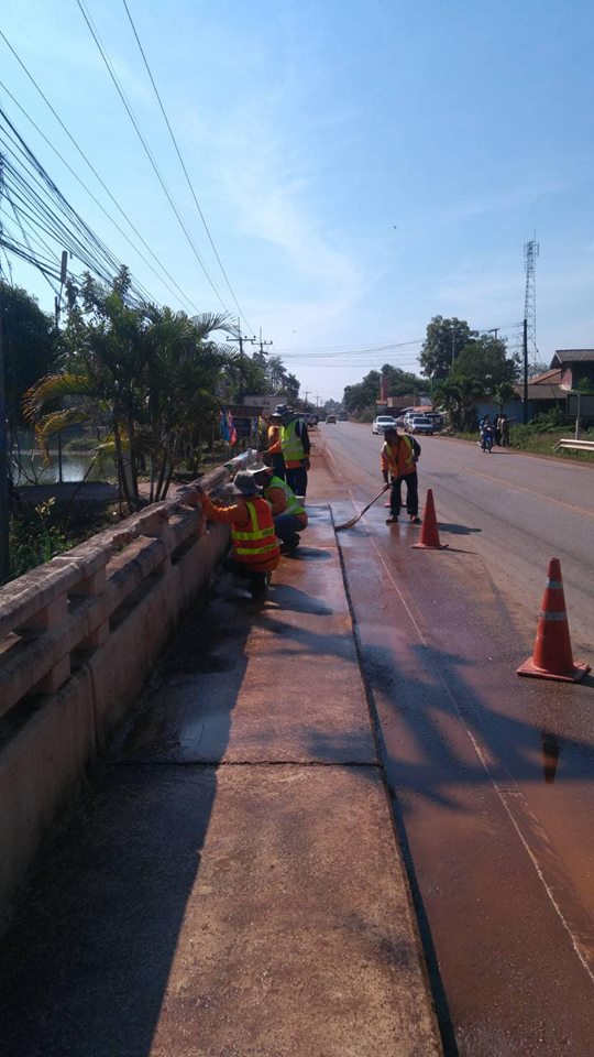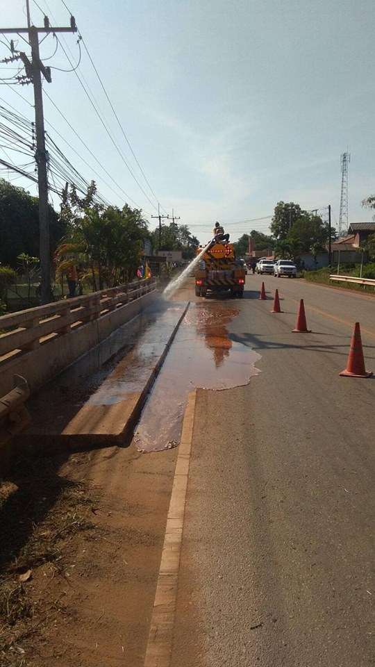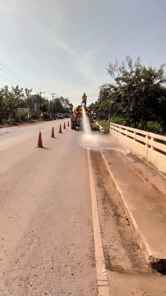 วันที่ 14 กุมภาพันธ์ 2562 หมวดทางหลวงโพนพิสัย ดำเนินการ ล้างทำความสะอาดผิวทาง ทล.2230 กม.3+144-16+000 ปริมาณงาน 5,000 ตร.ม.