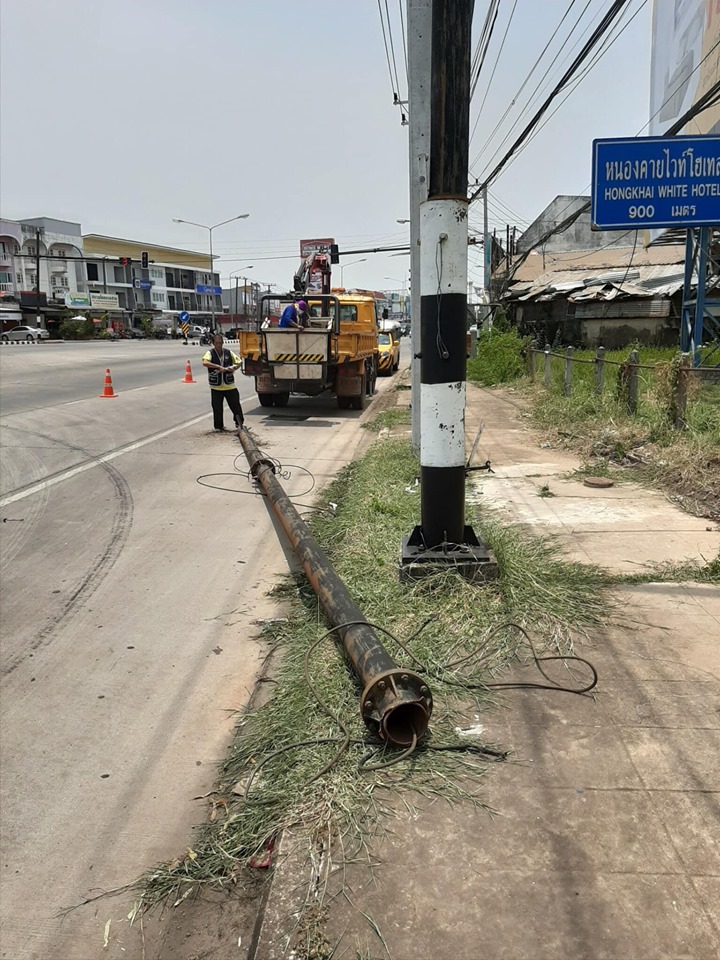 3.งานซ่อมและรื้อเสาไฟสัญญาณจราจรที่ชำรุดจากลมพายุพัด ทล.243 กม.0+906