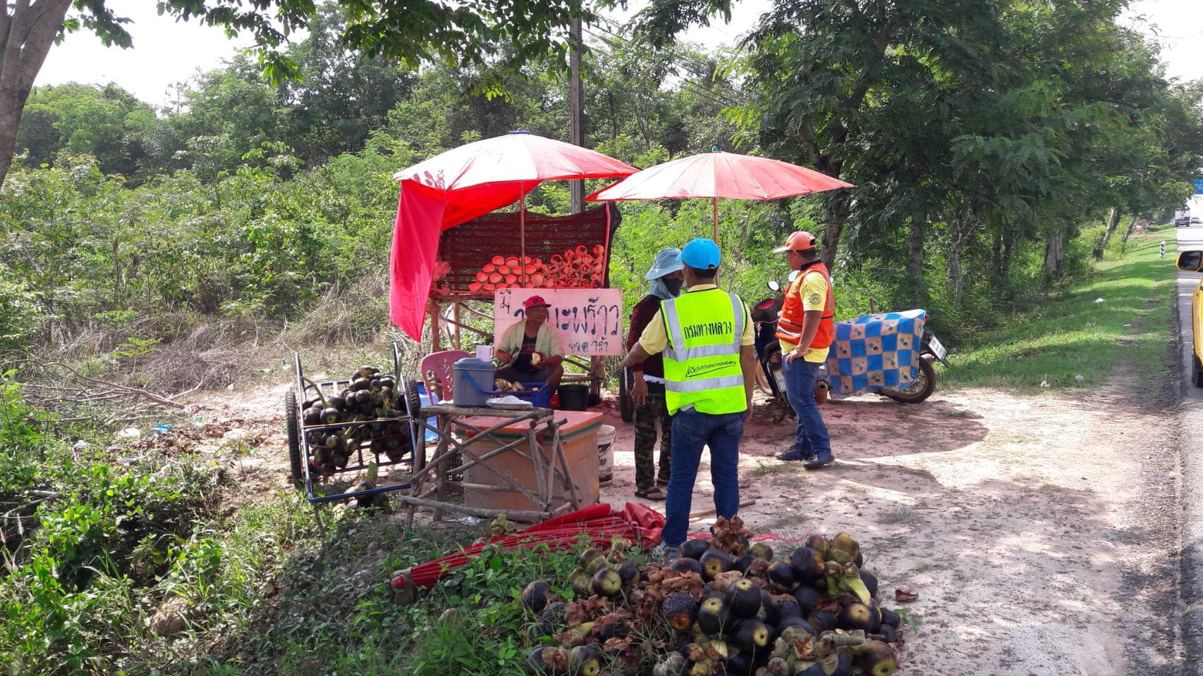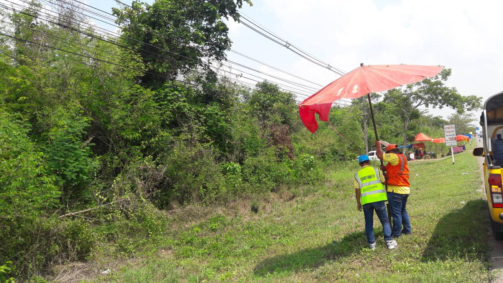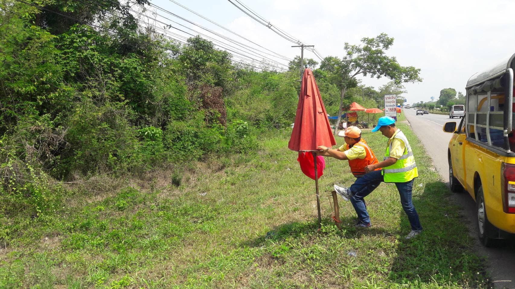 วันที่ 17 พฤษภาคม 2562 หมวดทางหลวงหนองคาย ดำเนินการแจ้งเตือนร้านค้าตั้งเพิงในเขตทางหลวงผิดกฎหมาย ในทล.2 กม.492+000 - กม.495+000 ปริมาณงาน 12 แห่ง